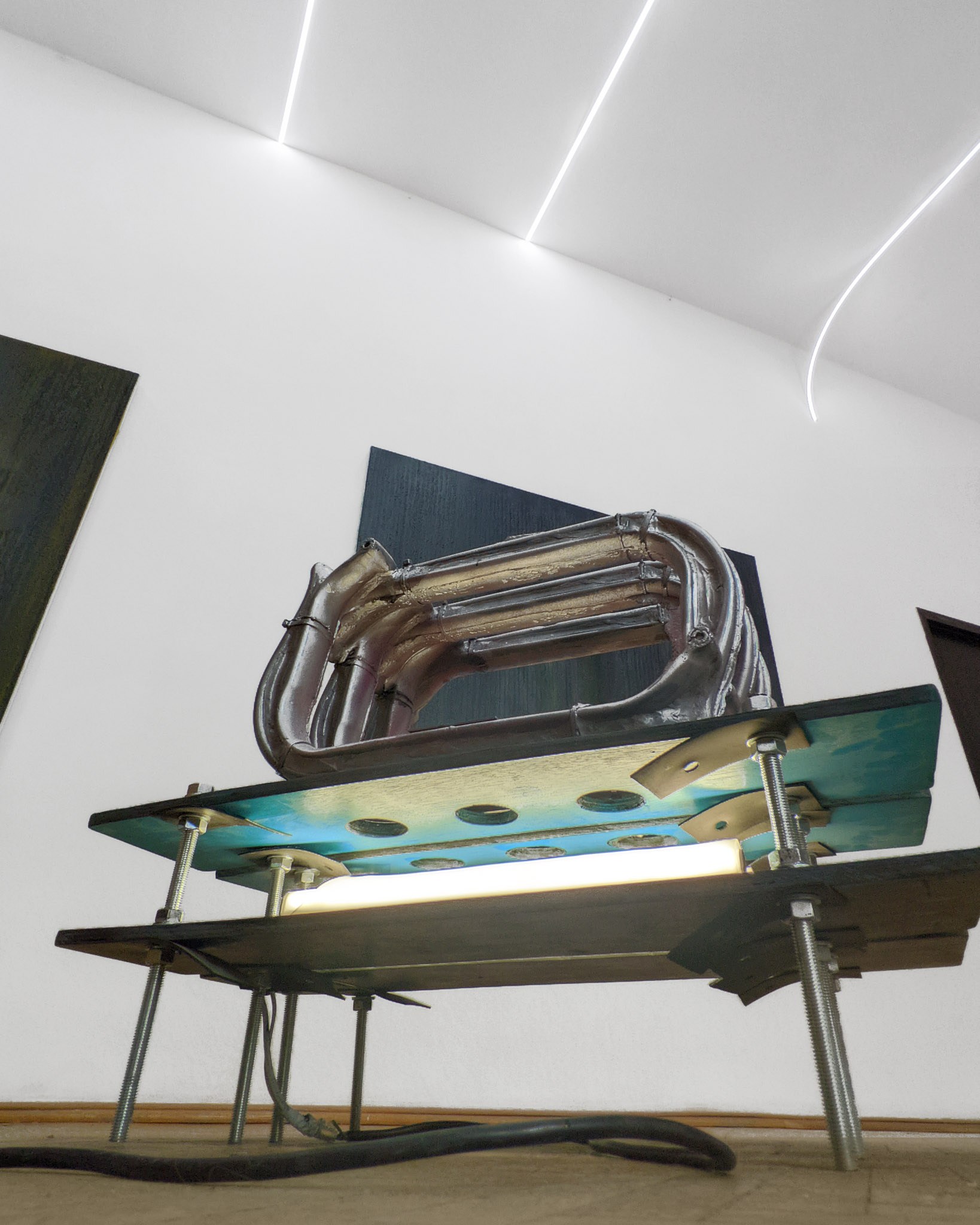 Buglass shows us weathered man-made forms as remnants of the recent past, yet they appear to be objects of the future.