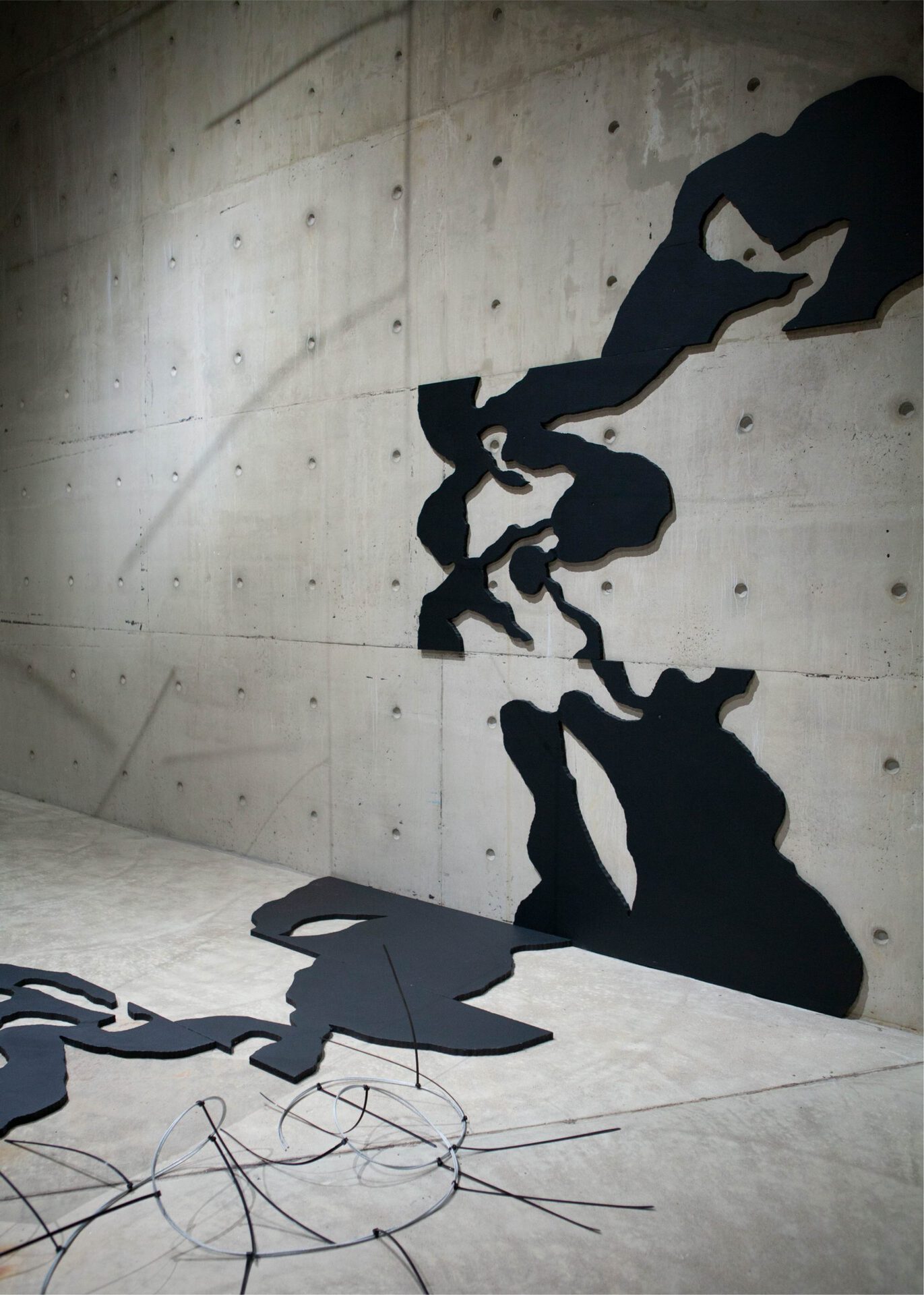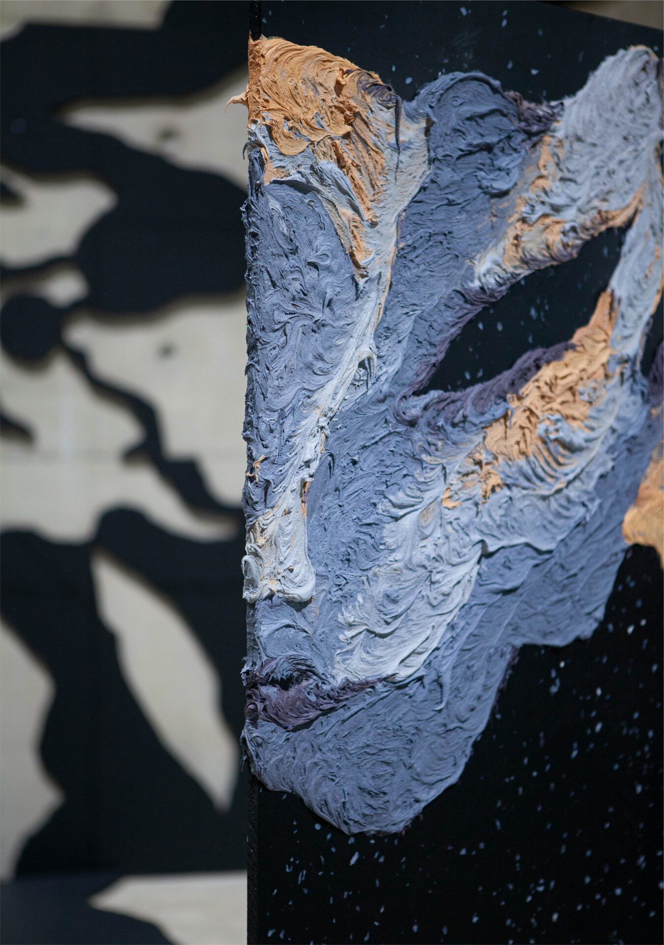 An invasive species is a three-dimensional work, which obscures the boundaries between a painting, a sculpture, and an installation. The work examines the environment where undisturbed nature has become irrevocably intertwined with non-native species and inorganic materials.