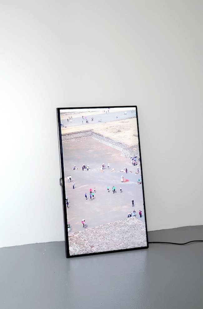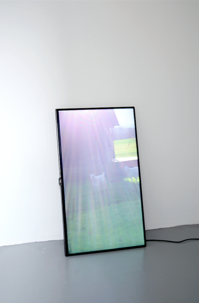 Anna-Sophie Berger bespielt in ihrer Ausstellung „The Eternal Optimist“ die beiden Stockwerke des kleinen Ausstellungshauses Prince of Wales mit einer fokussierten und kondensierten Ausstellung, in der sie klug und ambivalent die individuelle Gleichzeitigkeit von Gegensätzen verhandelt. Was zunächst wie der beliebige Strom einer alltäglichen Video-Diary, wie man sie aus den Social-Media-Feeds kennt, anmuten mag, eröffnet bei näherer Betrachtung eine ganz eigene Ästhetik und Feinfühligkeit. Im ersten Stock des Prince of Wales präsentiert Anna-Sophie Berger mit „innocent bodies (edit 1)“ eine filmische Arbeit, die aus einer Ansammlung kurzer Clips besteht, die sie über eine Zeitspanne von mehr als zwei Jahren mit ihrer Smartphone-Kamera aufgenommen hat. Die einzelnen Fragmente, scheinbar nebenbei und im Hochformat aufgenommen, sind dabei lediglich chronologisch montiert, wie in einem Dateiordner nach Datum sortiert. Mit dem Blick eines wohlwollenden Betrachters collagiert Anna-Sophie Berger kleine Beobachtungen, visuelle Reize und assoziative Erzählungen. Städte, Bahnfahrten, Ziegen, Arbeiter – Aufnahmen aus dem Alltag einer Reisenden. Trotz, oder gerade wegen seiner rohen Montage entwickelt das Video eine eigene Dynamik. Sie selbst als Körper kommt im Video nicht vor, auch intimes oder persönliches bleibt außerhalb des Fokus. Durch den Screen des Smartphones von der Welt getrennt, nimmt Anna-Sophie Berger die Position eines analytischen Betrachters ein, der die Welt mit einem interessierten und neugierigen Blick einzufangen versucht, jedoch immer nur teilnehmender Betrachter bleiben kann. „innocent bodies (edit 1)“, der Titel deutet den offenen Charakter der Arbeit bereits an, ist der Versuch einer Subjektiven Ordnung, mittels einer persönlichen Perspektive Strukturen zu erkennen, Verbindungen zu erstellen und zu verstehen.