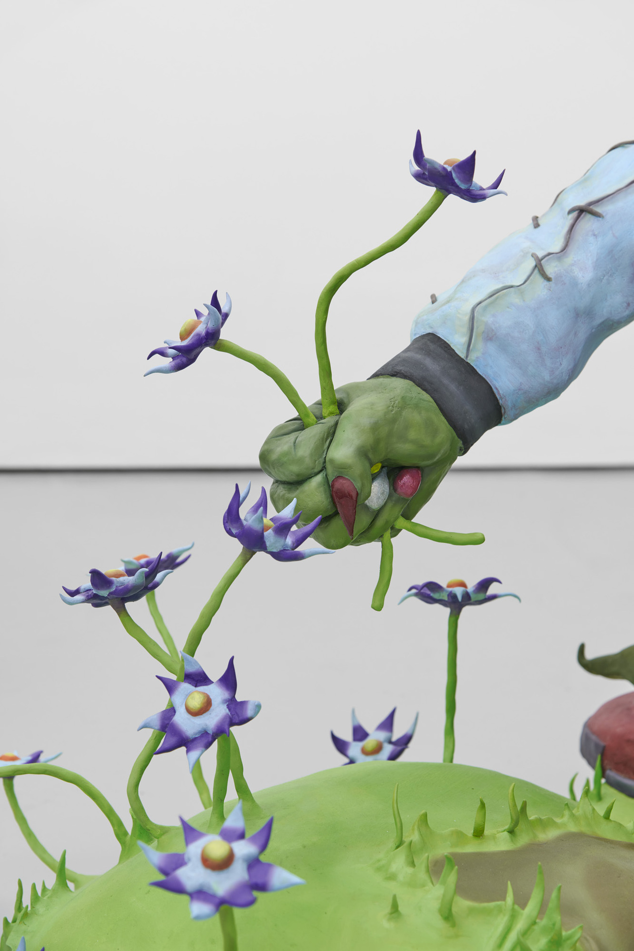 2 Picking Night Flowers, 2020. Steel armature, polystyrene, jesmonite, epoxy modeling clay, oil paint, nail polish