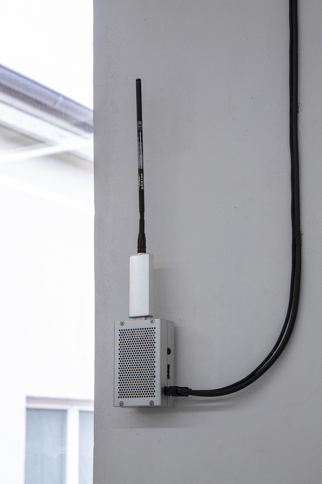 und die vermeintlich natürliche Logik des Ausstellungsraums (hell ausgeleuchtet und fokussiert) in eine heterotopische Ortlosigkeit. In sie dringen Zeichen und Signale ein.