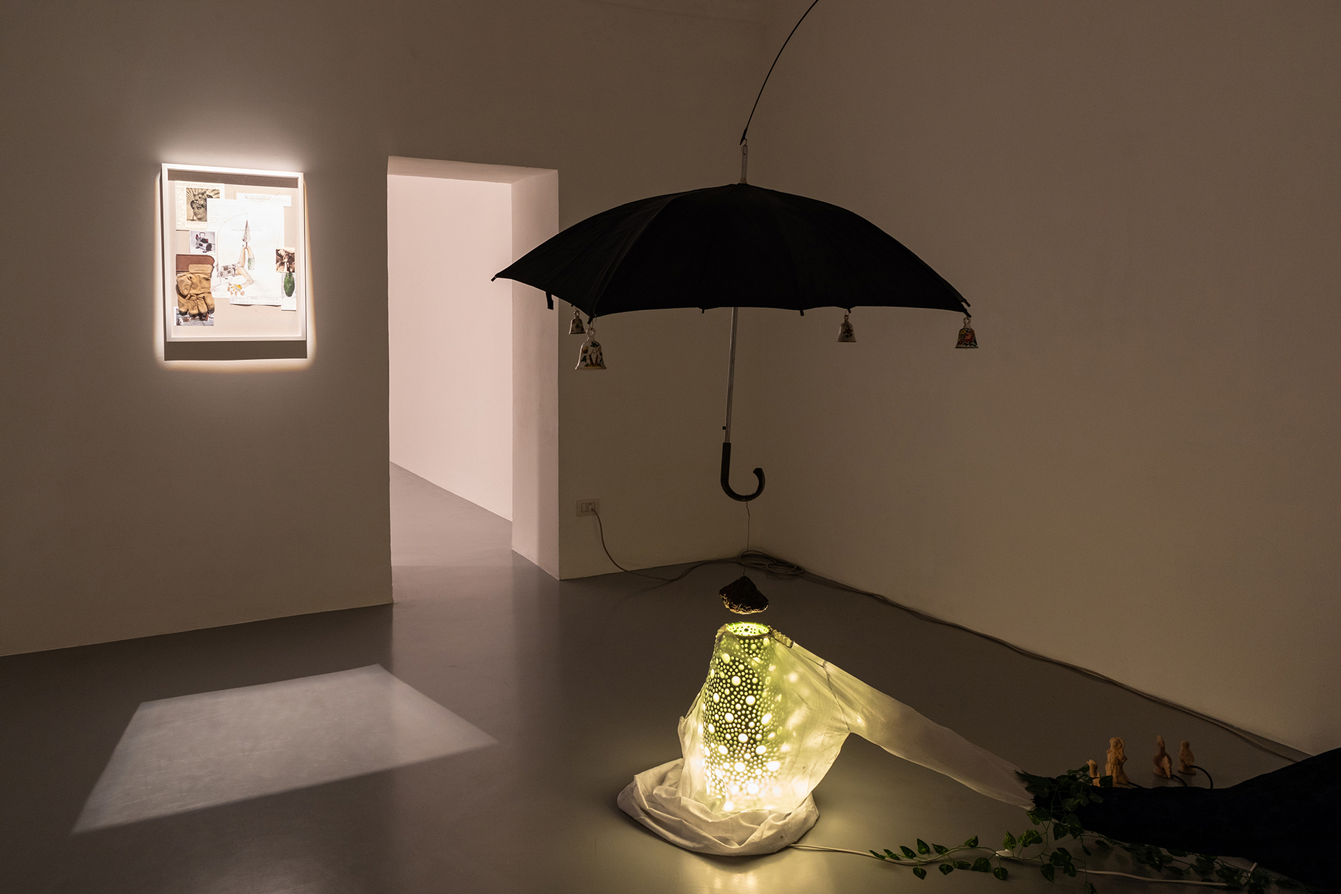 Abandoning any presumption of representation of reality, and of a faith in an unmistakable reality, Balera entrusts all its dynamic creativity to the public’s perception, into a body of singular and non-functional sensations. The three installations and their respective preparatory drawings are placed as the reading material for the different visions some inhabitants of Abruzzo region had on their own self-prescribed marginalization. The group that the artist interviewed through a questionnaire was selected by the contest Abruzzo Include, in which people applied by marking themselves as a marginalized person. If a personal feeling of social, political, economical, and cultural exclusion can be a fundamental parameter judged by public institutions, Tibaldi’s research seems to affirm that truth and reality as concepts/fetishes are simply each person’s perception transforming itself into its most credible version.