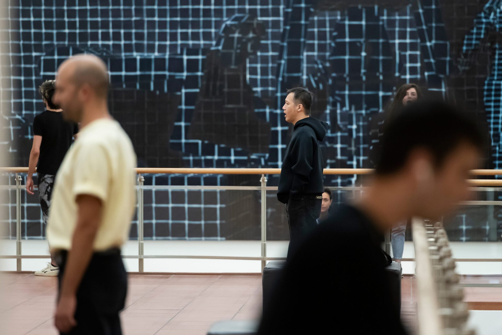 As part of Museum Ludwig's acoustic spectrum, Kindermann's performance Choir Piece (2019-) is exhibited at Museum Ludwig on July 29, which will therefore be also digitally transmitted as acoustic live stream into the Simultanhalle, thus pointedly activating the installation Gleichzeitigkeiten. Felix Kindermann understands Choir Piece as a living sculpture, which consists of a 16-voice choir modeling itself endlessly in space and time. Therefore Kindermann commissioned New York composer Natalie Dietterich to write the Composition for Separated Musicians in 2018. Departing from Kindermann's concept of modularity, Dietterich's composition allows the 16 singers to move independently through the exhibition space, perceiving, reflecting, and endlessly reforming themselves as a shared body. In Choir Piece all singers have the same modular compositional material at their disposal. They are autonomous in their movement and in the temporal arrangement of the composition. Thus the composition is based on an aleatoric simultaneity of its components. The result is an acoustic structure in the field of tension between cohesion, individuality and distance, dependence and independence, which, based on the concept of sculpture, poses questions about belonging and identity in a currently increasingly fragmented society.
