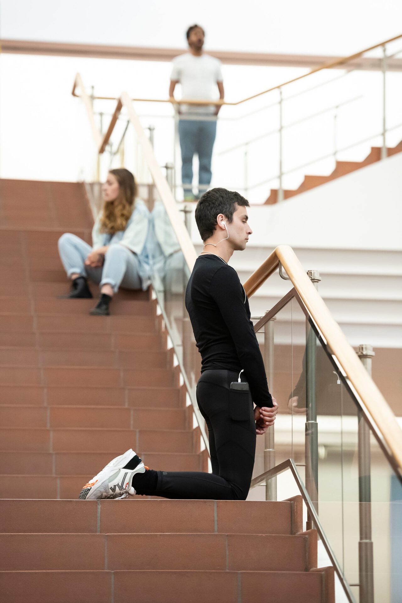 For his unique installation Felix Kindermann installs microphones in the iconic central stair- well of the Museum Ludwig transmitting the sounds of the room and the people in the mu- seum, live into the Simultanhalle for three month during the entire duration of the Simultan- Projekte 2021 of which the work is part of. In this way, the people in the museum as well as the architecture of the Museum Ludwig and the Simultanhalle become the material and medium of the artistic work. The microphones and the reproduction of the transmitted si- gnal ensure that the transmitted sounds distort the sonic reality and merge into a texture that remains indeterminate in its origin.