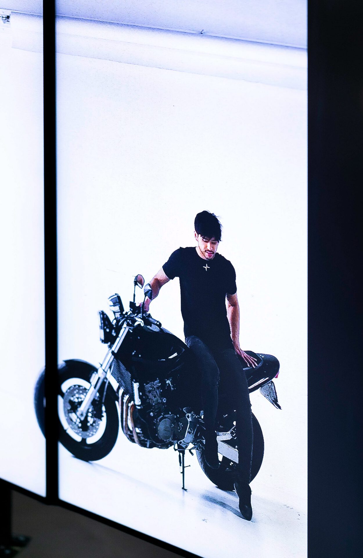In the soloshow GONZO by korean- austrian artist Kaja Clara Joo (*1991) we follow the ficitional character Gonzo who has developed an intense fear of vertical lines and dedicated his life his motorcycle. His world view begins to crumble down as he gets involved into a tragic bike accident.Text