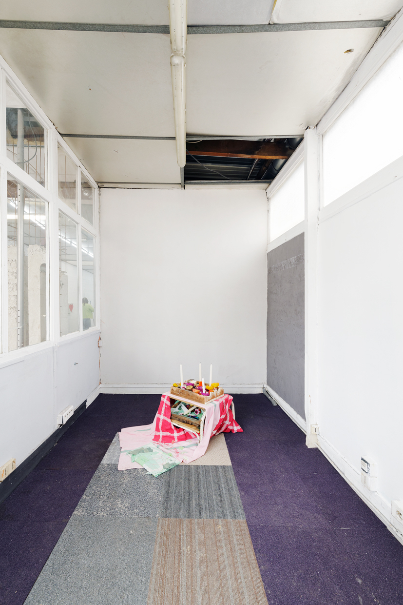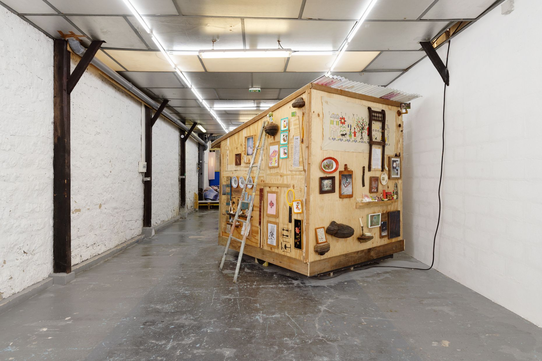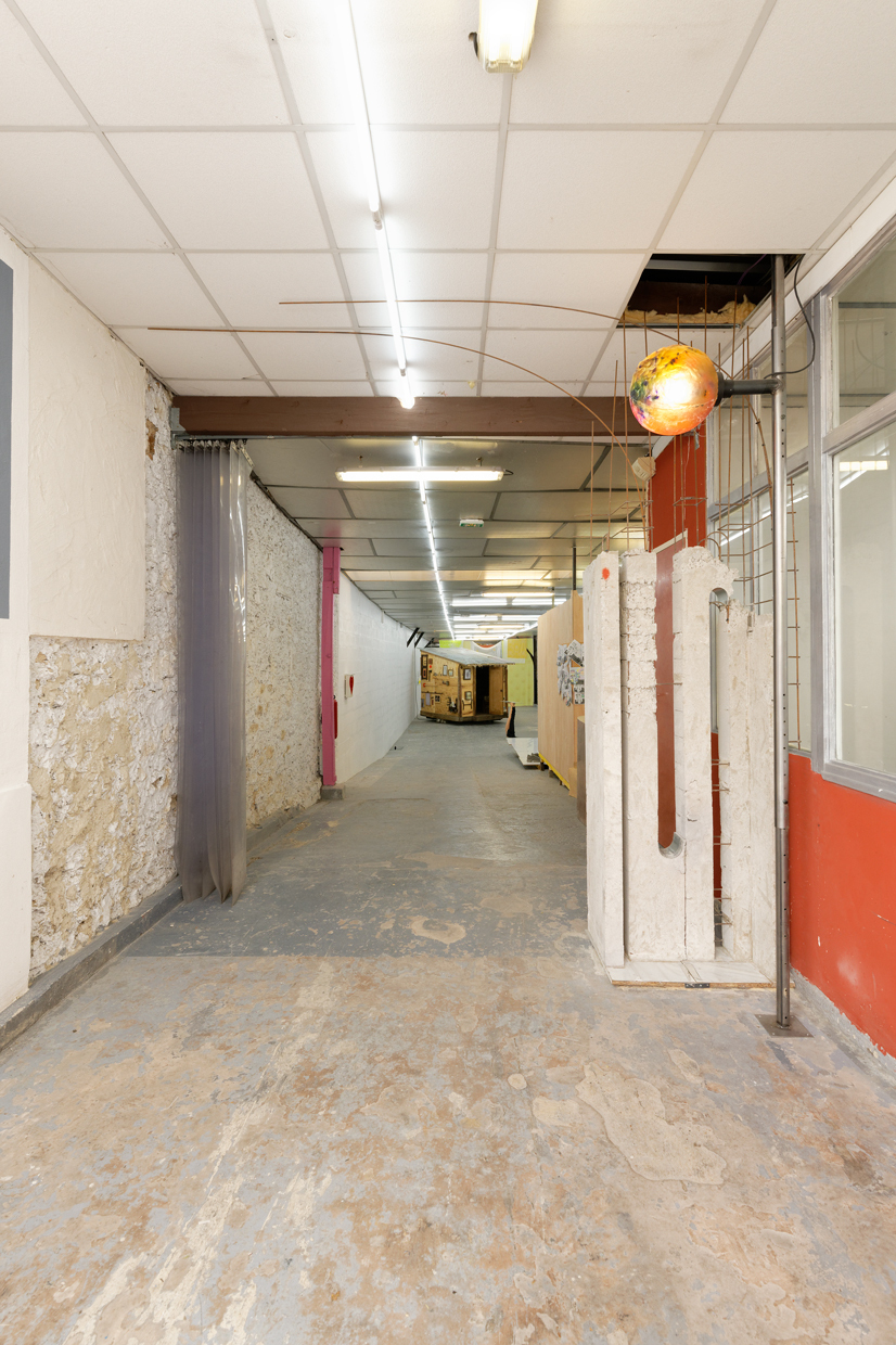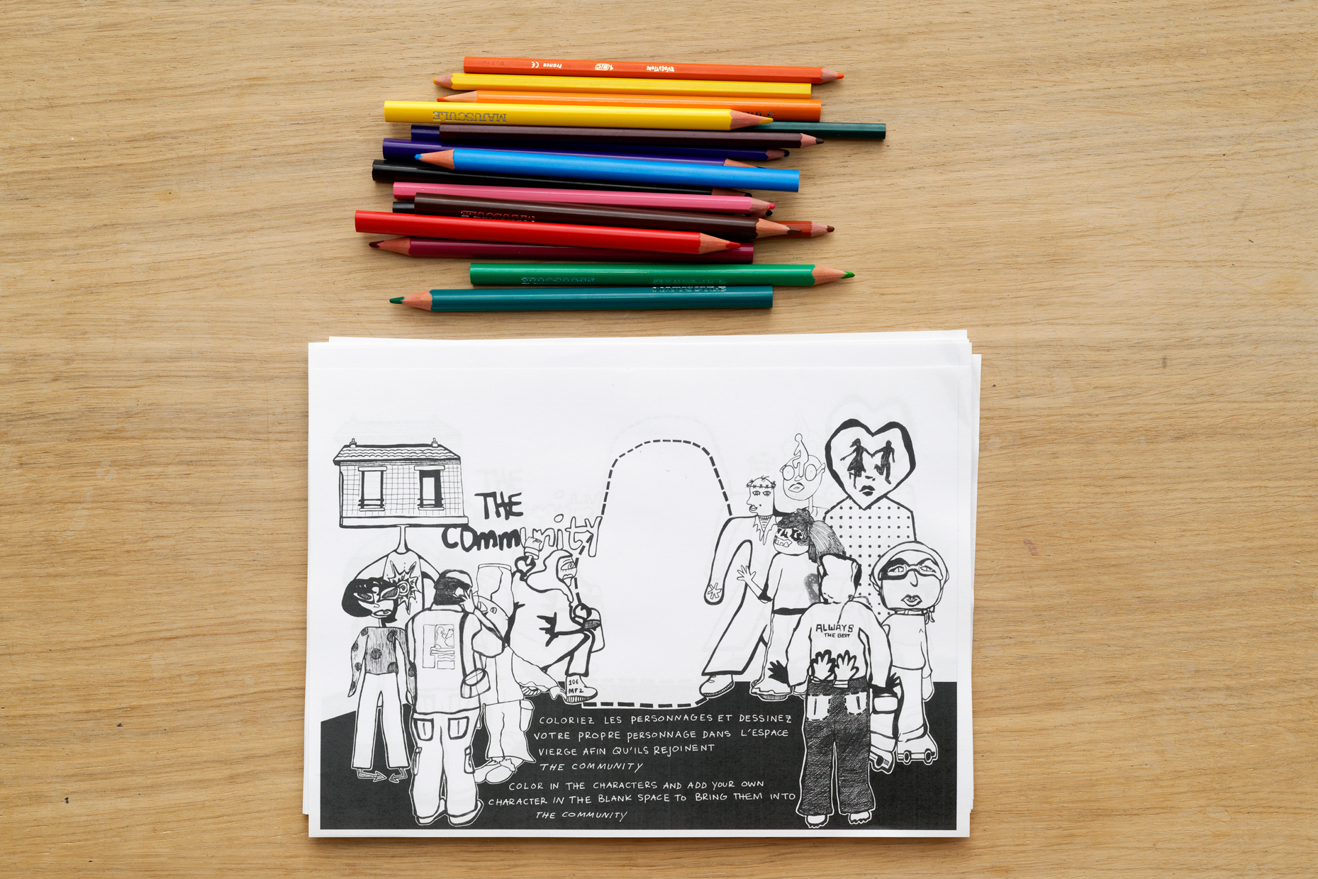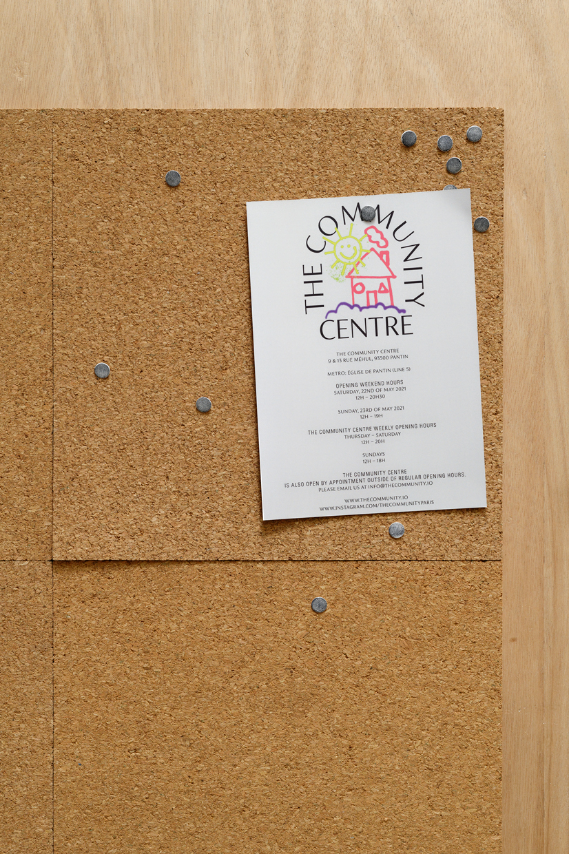 Many of the works have been built on-site in The Community Centre and the garden two doors away: a collaborative body at work, slowly moving from individual practices to a collective effort. Experimentation, in its loose and associative forms, and questioning the notion of ownership and authorship have been on the minds of many participants. Some artists have been lingering on the architectural shapes, forging new structures, creating new soundscapes and offerings that resonate. Some have approached the collaboration via graphic sensibilities and printed ephemera, while others have considered the new home with performative rituals. Several artists of the show focused on the recycling and repurposing of materials, sometimes sourced from the streets of Pantin or neighbouring associations that specialise in the reuse of materials. Sometimes the chosen material bears memories from The Community’s previous location via specific colours and tactile elements. Some reference our past exhibitions, reapproaching ideas and creating new contexts and narratives around them. Together they form an organic, transdisciplinary collection of works.