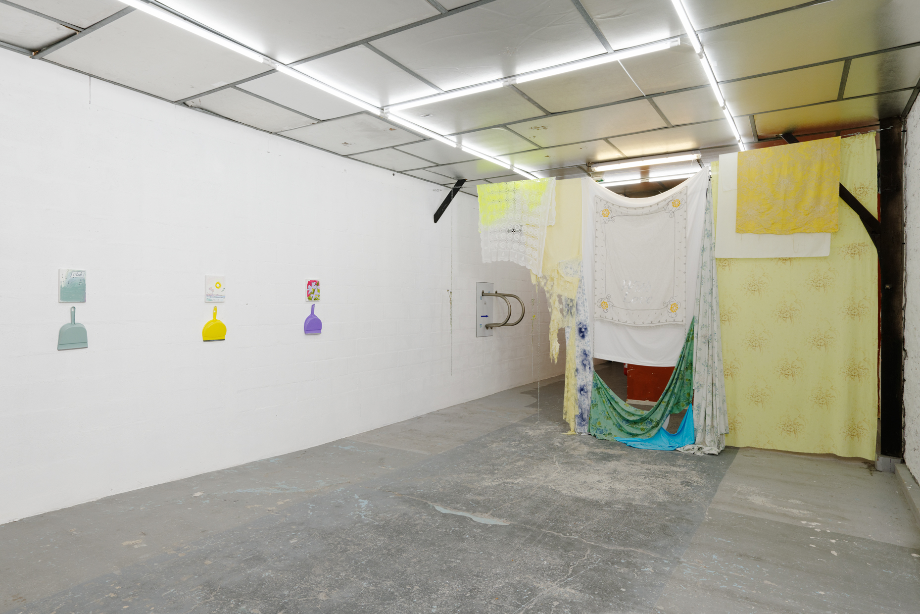 The exhibition takes as its starting point the social dynamics of creating a shared space and showing hospitality. Traditionally bread and salt were welcome greetings in various cultures. Bread would have usually been associated with hospitality, whereas salt symbolised a long-lasting friendship. Our wish is to share the space with everyone and invite them to enjoy it as a home for experimentation. During the spring and lockdown months, we worked together to renovate the space and remembered its past as a mineral paint shop by keeping remnants of it alive and visible. Artists, friends, and neighbours worked alongside each other, feeling the space, making it a home, and simultaneously reflecting on how it can evolve.