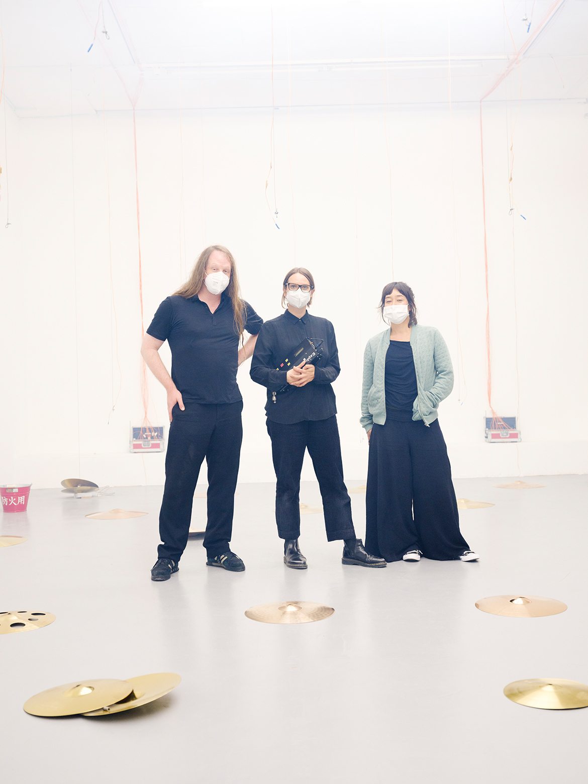 LL: Akiko und Florian mussten erstmal neu lesen lernen. Teilweise arbeitet Takeo Shimizu auch mit den Notensymbolen in Tabellensystemen, um Farbwechsel zu erklären und durch zu deklinieren. Obwohl die Feuerwerksnotation Komponenten wie Zeitparameter und Tonhöhen hat und Takeo Shimizu sogar eine Sequenz nach den reinen Klängen, die ein Feuerwerk macht, aufschrieb, muss man dennoch viele musikalische Parameter hinzufügen und bestimmen, um es spielbar zu machen. Mir ist wichtig, dass die Notation ernst genommen wird, aber bei der Stelle mit den Tabellen zum Beispiel kann man schon etwas freier in der Interpretation werden. Akiko und Florian haben daraus etwas gebaut, das aus starken Wiederholungssequenzen besteht und den loop-artigen Charakter der Notation unterstreicht. Die Frage nach Autor*innenschaft berührt das natürlich auch. Wer ist Autor*in der Musik? Takeo Shimizu, der die Noten aufgeschrieben hat? Oder Akiko und Florian, die sie arrangiert haben und interpretieren? Oder ich, die sie in einen neuen Kontext überführt hat und den beiden Musiker*innen vorsetzte? Ich finde das so wichtig, weil es letztendlich zeigt, dass das Projekt und die Performance ohne einen kollaborativen Zugriff nicht möglich gewesen wäre.
