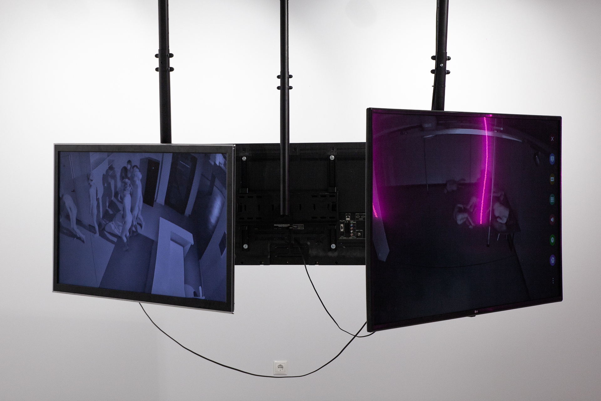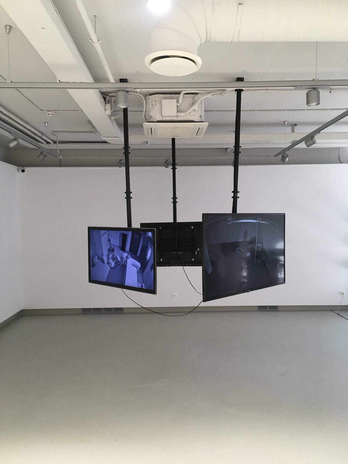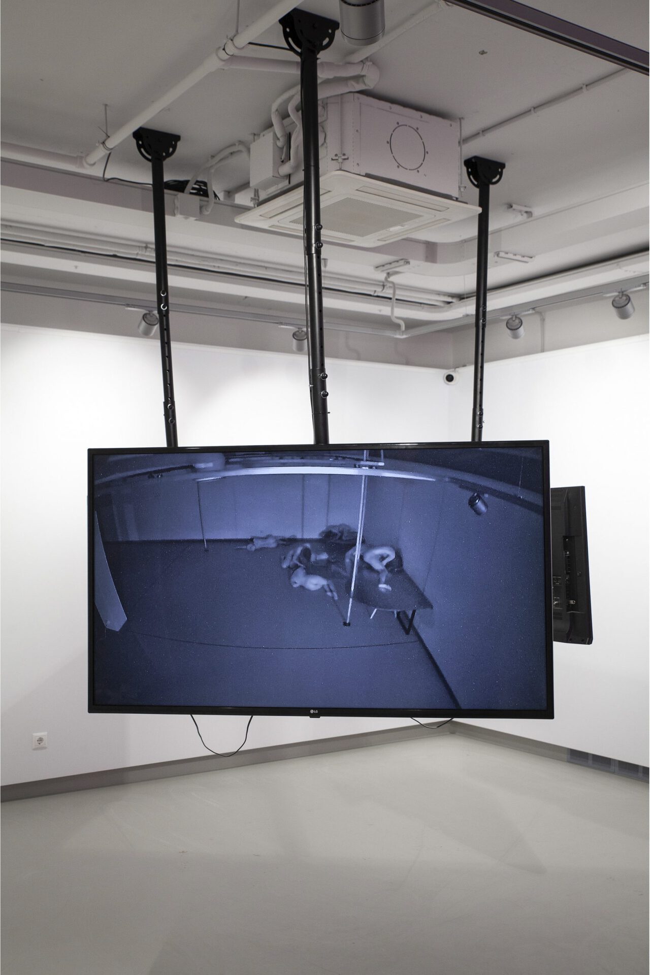 At the same time we hear sounds (coming from some other space) with which the documented bodies make contact.