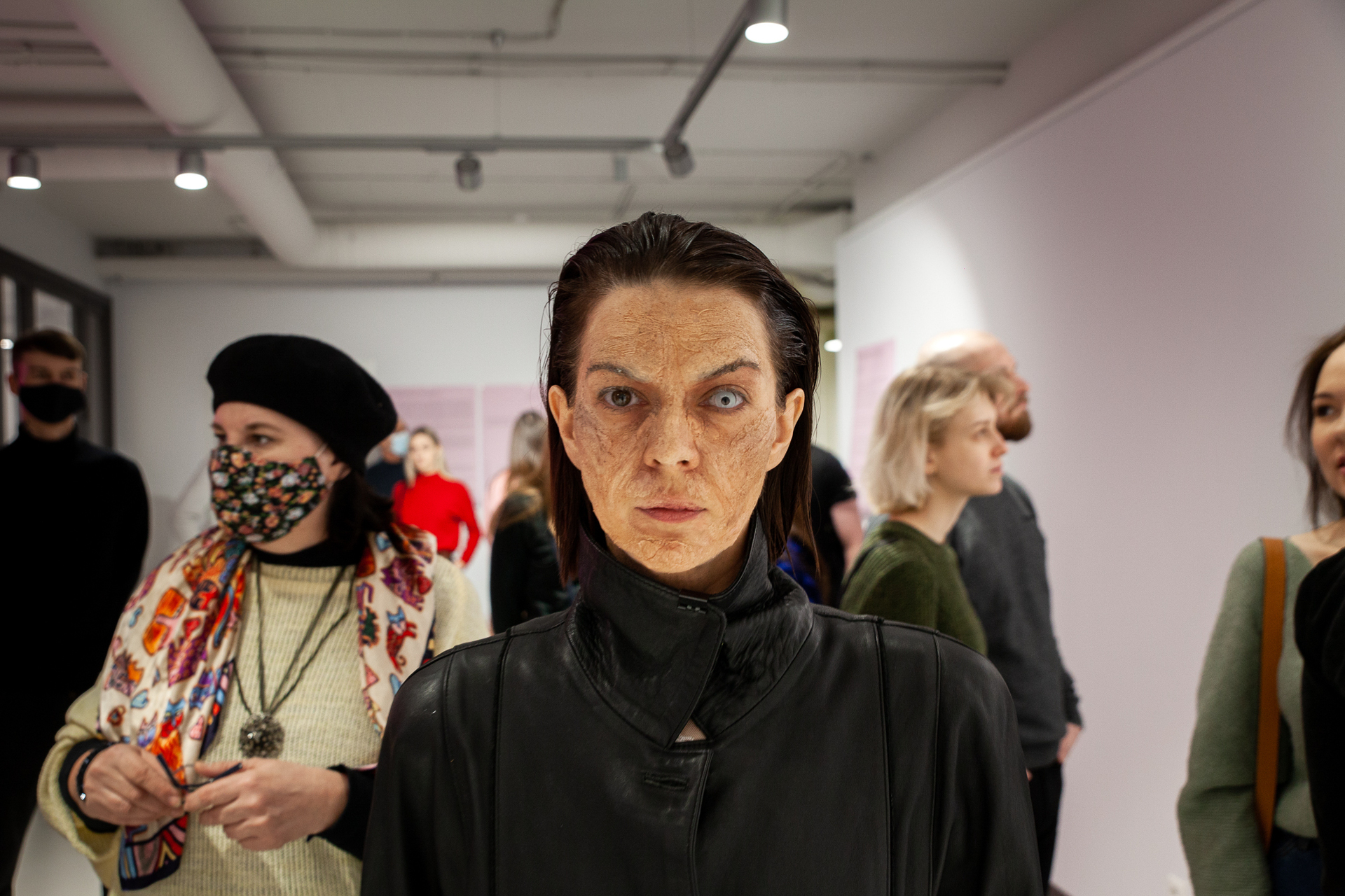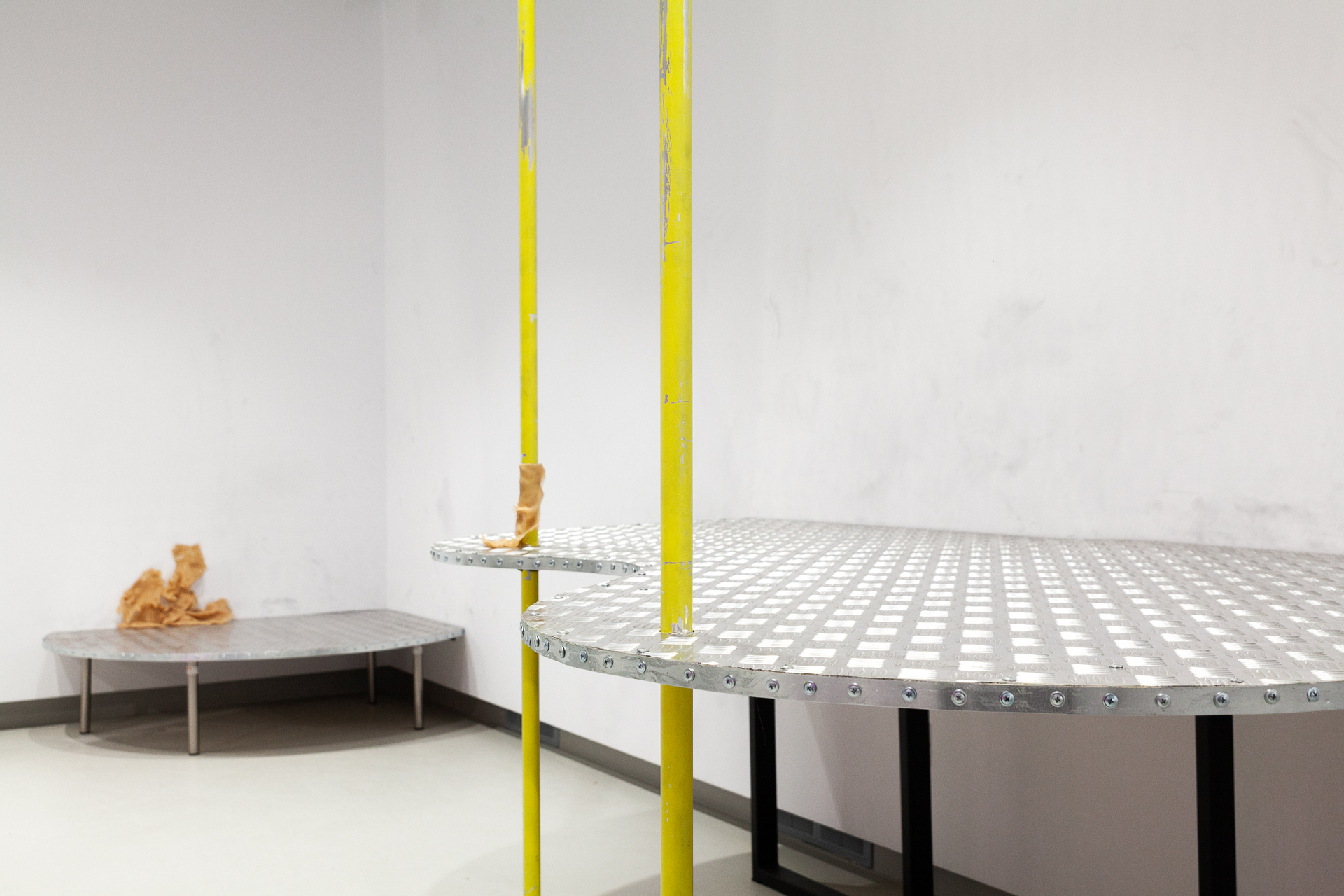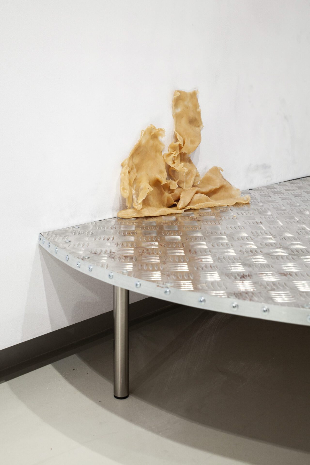 In the first stage, human bodies cover the gallery space in a single network, just as moss or mold cover the surfaces around them. At this point, participants abandon their individual bodies in favor of a single sprawling organism.