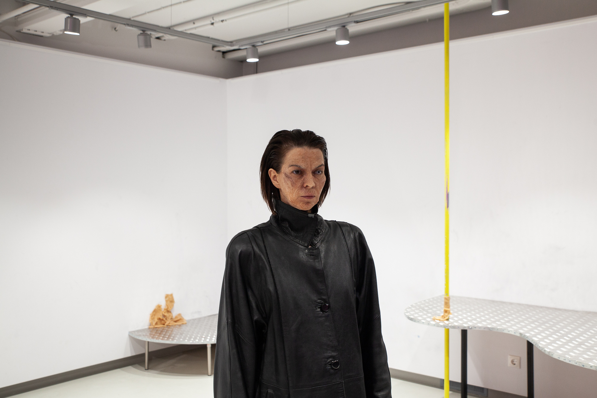 In the second stage, which takes place on the opening day, we see documentation of this process, as well as a "character" who walks around the places where the bodies were previously and still tries to drive them away, reciting a Greek incantation dating from the 6th century AD and used to drive the devil out of the house: