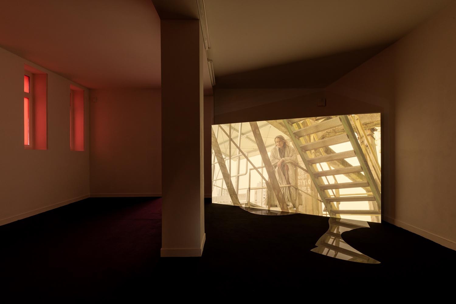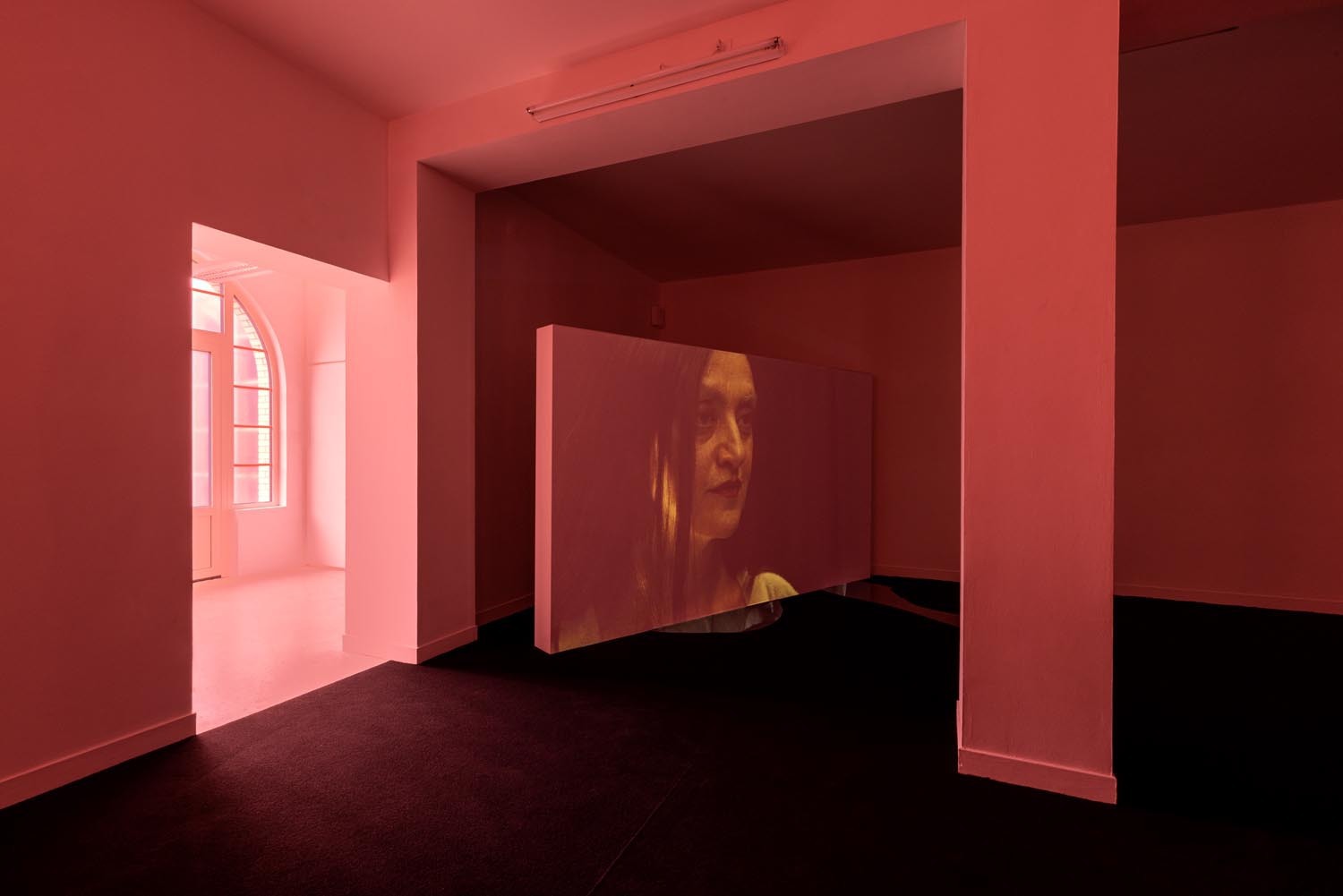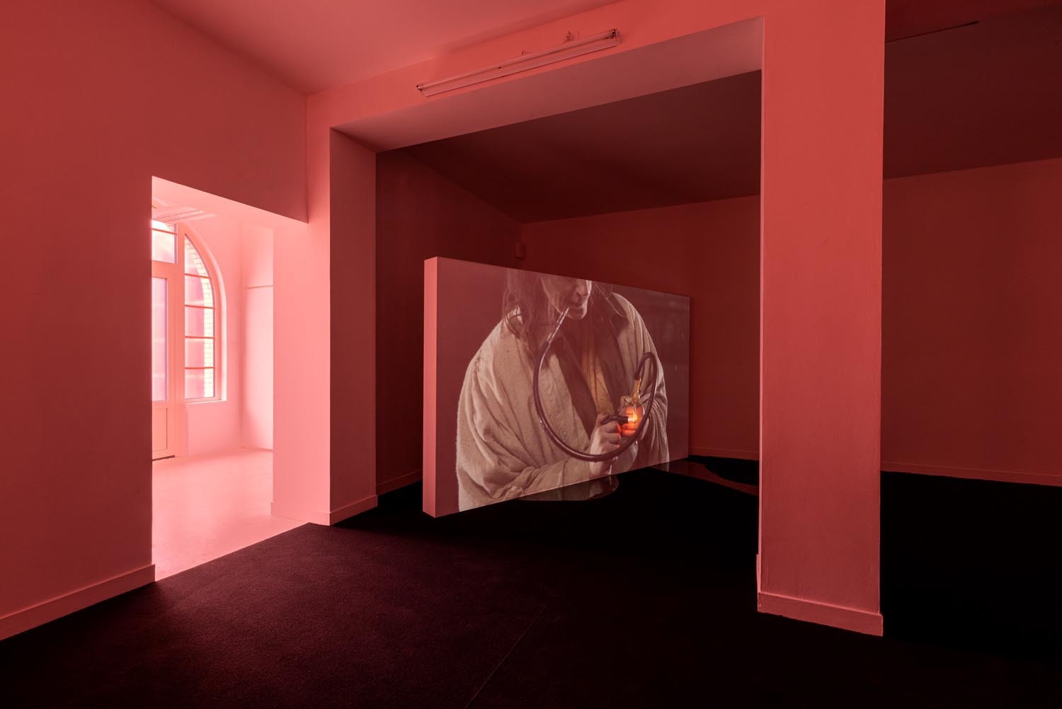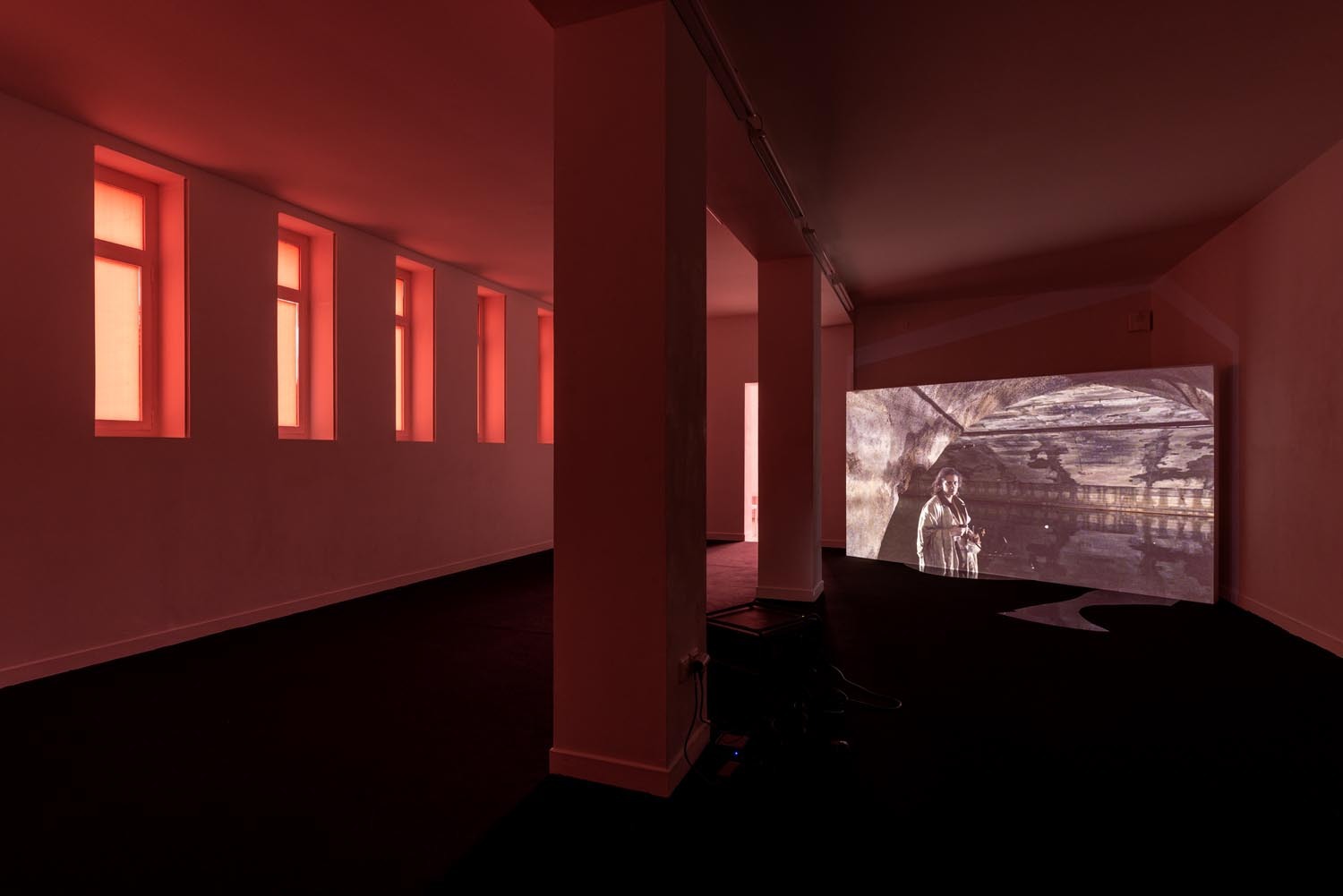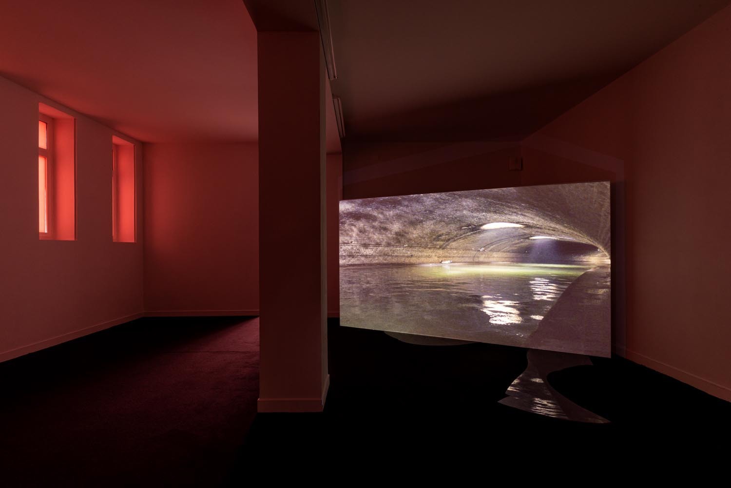 A vaulted underground (Cloaca Maxima) full with greyish water, shadows dancing on its murky walls, acts as a symbolic stage for Mum’s desires, and who inhales some kind of substance and regularly masturbates. Sometimes we hear ringing of an intrusive smartphone. Mum picks up and speaks to Byron (who is unknown to the viewer), in a whispering, seductive voice, at times demanding. She wears a peachy blouse, with well made long nails in smokey green colour. Her hair is greasy, messy. She might be middle aged. Her face looks old, tired, grim and greasy. Who is she? Perhaps Gozlan’s Mum is a mythological or archetypal character, living through a post-apocalyptic world – an imagery borrowed from the horror genre and sci-fi aesthetics that Gozlan likes to deploy. Mum might seem kind, speaking in an alluring, friendly voice, yet there’s something dubious and demanding in her at the same time.