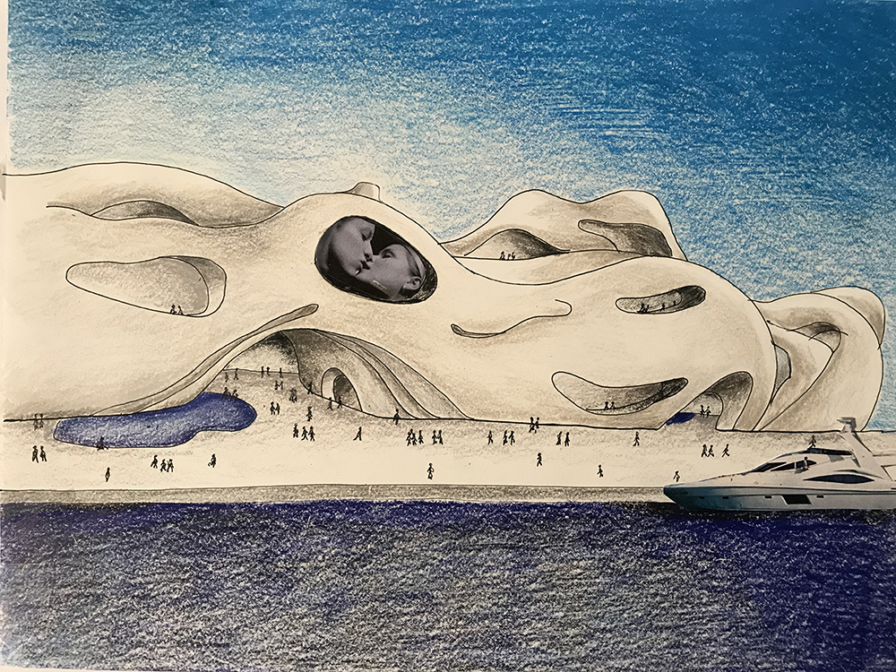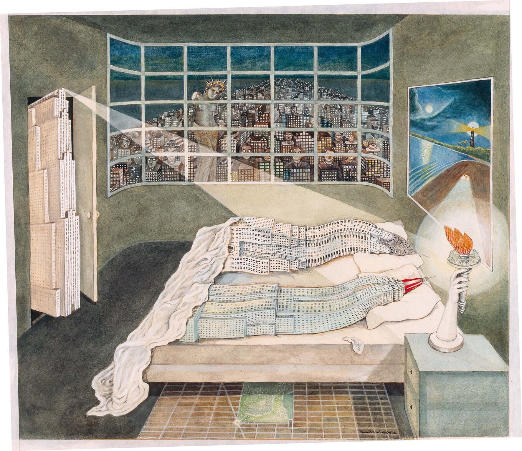 In Baren / The Bar we find formulations of queer institutional critique, such as Monica Bonvicini's "Warning! Failure Is to Follow" (2015). With her operating instructions printed on a poster series Bonvicini reveals the power play that is at work in sexual situations, but also in work situations and institutions. Madelon Vriesendorp's illustration "Reproduction of Flagrant Délit" (1975) for the cover of Rem Koolhaas' "Delirious New York: A Retroactive Manifesto for Manhattan" receives, alongside Robert Getso's "NYC Go Go (Postcard from the Edge)" (2014), a sexualized rereading of the architecture of the modern city. His photo collages transform hetero-patriarchal buildings such as the Empire State and the Chrysler Building into totems of gay sexual desire.