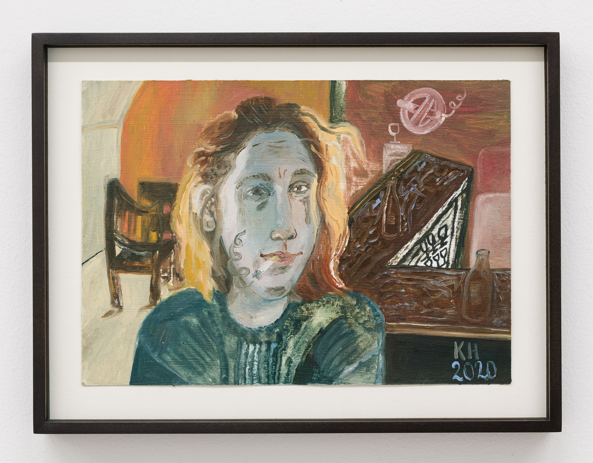 VP: We talked once about painting problems, and there was your painting '(vanitas)', which you painted over several times, adding more elements, merging faces. And we were like: 'Where is the problem?' It was clear that you, exactly you, would mix a lot of things, creating a strange dreamy mass of all possible techniques and materials (options again!). But you were more concerned about the opposite ones ('Bad Flower' and 'Hello Darling'), so light and so easy like you didn't expect it from yourself. Usually, one would be afraid to stop too late, but in this case, it was another way around: 'why would we want to do the least'. Does it make sense? [caption id="attachment_72265" align="alignnone" width="660"] Katharina Höglinger, (vanitas), 2020, oil on canvas, 85 × 70 cm, © WONNERTH DEJACO and the artist 2020, photo: Peter Mochi[/caption]