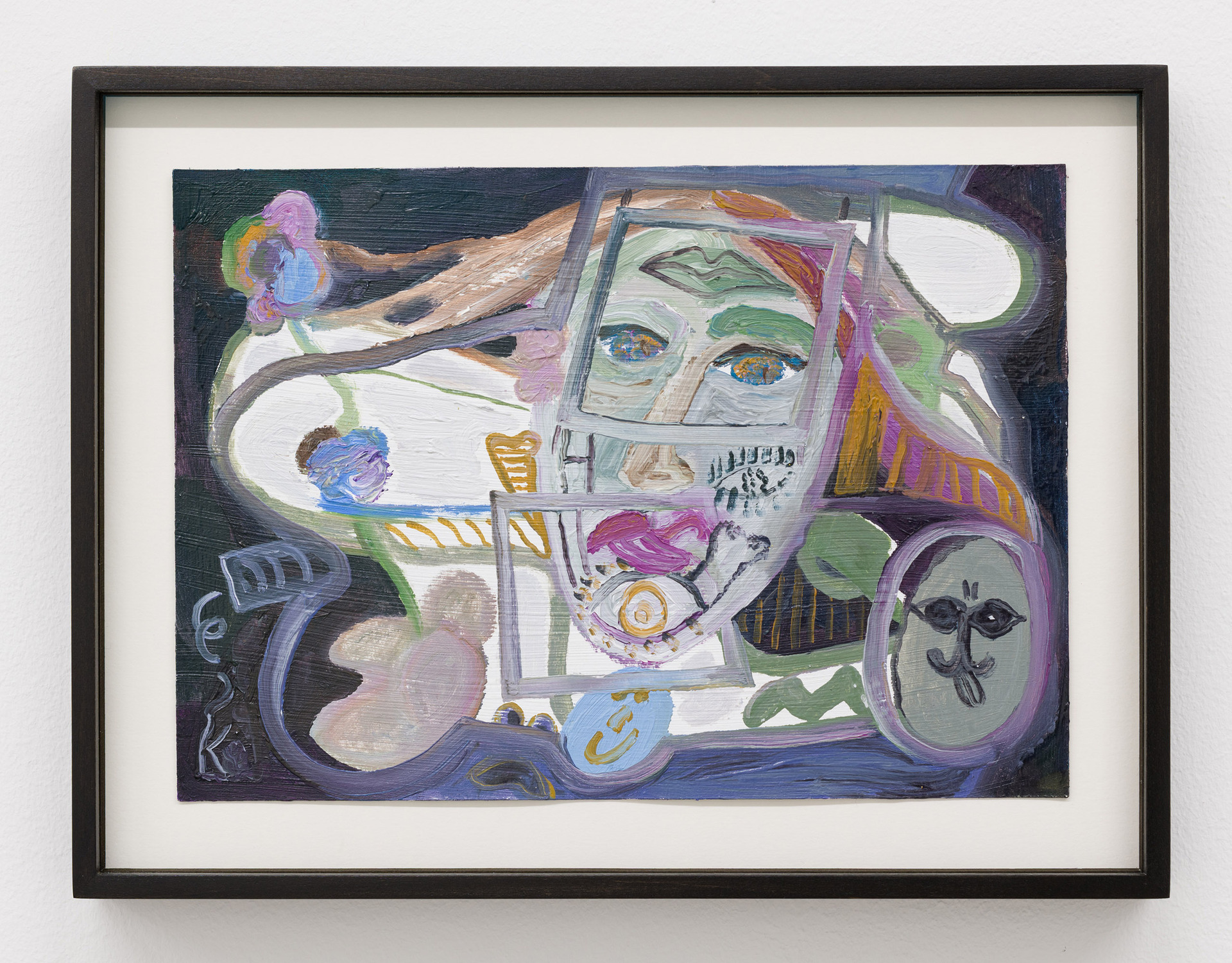 KH: At this point, a super big thanks to Lena Sieder-Semlitsch. She built the display, table and transport solution for my hand-painted artist book 'The Secret Life of KH'. Lena is working a lot at the interface between transportable kiosk and sculpture. When I asked her to build a box for the book, we came up with the idea of the box that was a table and also a suitcase. She used Molino for the padding, making the whole thing referential on so many layers. As you said, it reminds of a pochade box, and people keep adding pasting table. You know that Seinfeld episode, where Kramer made this coffee table book: 'If you don't have a coffee table, it turns into a coffee table.' VP: Maybe all these endless options free you from tags, claims, expectations. Inventing, sometimes reinventing, 'producing like a maniac', being too much, surprising yourself and the audience equals explaining yourself (to yourself?), being insecure in front of others, being vulnerable. And by not keeping it safe you find comfort in it. You mentioned in the beginning 'salvaging' the work. Rescuing it from the void by producing it and then letting it go, offering its vulnerability to others? To me this is a very pronounced characteristic of your works: they are inclusive and inviting. All these faces, vases, flowers, dogs, windows, lips, hands and feet, surfaces and textures are openly speaking to the one who is looking at them. KH: Also in a very literal way, salvaging the object from collecting dust in storage. I don't have this kind of relationship with my paintings which would not allow me to separate from them. But at the same time, it also feels like I have a responsibility. VP: Grown-up paintings, finally leaving the studio. I feel frustration sometimes to see paintings performing strangely in the exhibition. As if they are at a formal dinner where they act polite and watch what they (you) say, being aware of the context. Losing tongue, right? Perhaps they are more 'honest' at the studio. Here I see resistance: the unstretched 'Untitled' states its space, refusing to be a 'proper' painting; the museum gloves for 'The Secret Life of KH' play the art-handling game but, at the same time, they become a drawing object, too. How do you 'adapt' the surroundings for them? KH:I see that with your paintings and what you mean, but also, I really love when a painting goes to an exhibition or a wall somewhere in a living room or a showroom. They can say much more and fully unfold, which in a tiny and crowded studio like mine is maybe much more difficult. There is resistance, refusal, defiance and the ambiguous (and maybe essential for survival and mental health) urge to please. There is no difference in their values, all objects are supporting each other. I just had a super important term added to my describing vocabulary. I was listening to the Deep Color podcast by Joseph Hart, and in the latest episode he was talking toCurtis Talwst Santiago, whom I admire a lot. In this conversation, one of them brought up 'intuition as a tool'. This is very important to me, and until now, I was never able to put it right with words. Sometimes we tend to think of intuition as something we can't control. But intuition is something you can use and apply decisively. It is not something intangible; we can use it as consciously and strongly as our brains or our hands. And all the things mentioned above are parts of this interplay. VP: Perhaps this interplay makes them seem to be in progress as if they are changing (are being painted) in front of my eyes, right here. 'Untitled', the large-format unstretched painting is transforming every time I look at it. It hugs itself, then it holds itself on the wall, and the next second, suddenly, a boxing glove appears. How do you deal with its constant developing? Do you control it or take its offer? [caption id="attachment_72268" align="alignnone" width="660"] Katharina Höglinger, Untitled, 2020, oil, acrylic and marker on linen, 164 × 182 cm, © WONNERTH DEJACO and the artist 2020, photo: Peter Mochi[/caption]
