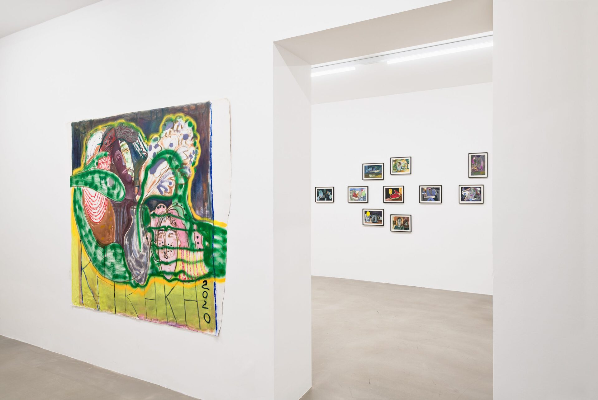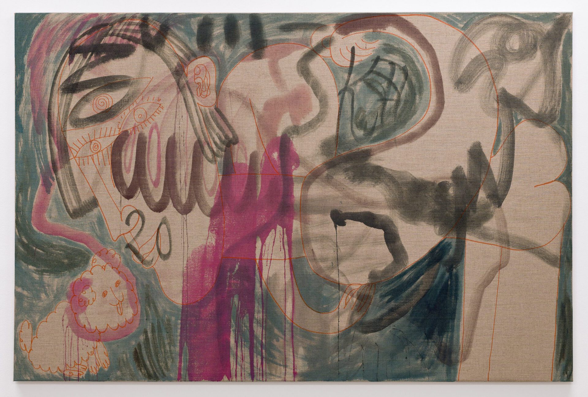 Katharina Höglinger, Hello Darling, 2020, fabric paint and marker on linen, 124 × 190 cm, © WONNERTH DEJACO and the artist 2020, photo: Peter Mochi