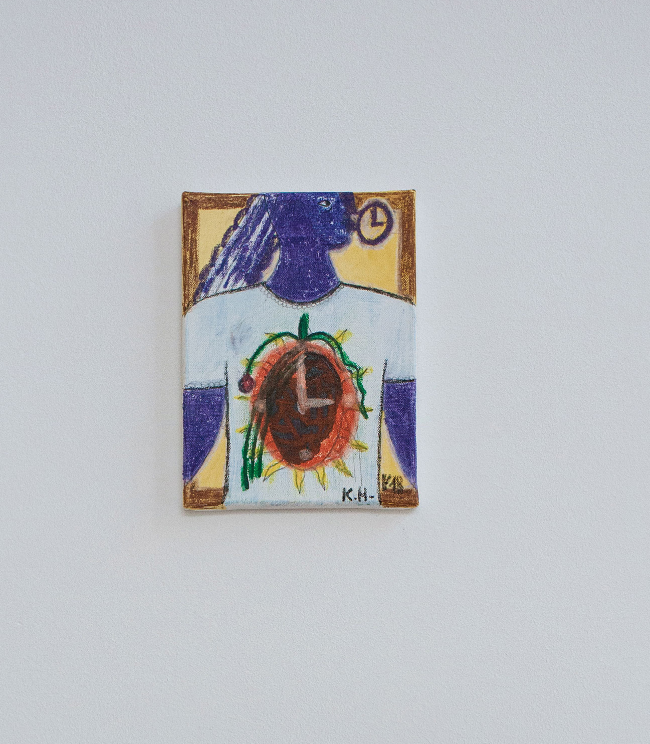 Katharina Höglinger, My heart is a clock, you think you know me. you don´t, 2018,  acrylic & oil pastel on canvas, 14 x 18cm