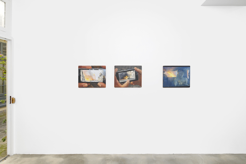 In doing so, Brambora inventories different perspectives associated with fire and whose images systematically return to us: riots, national drama, personal history, rituals. Formally, the scenes are seen through screens, and the composition sometimes allows a viewer to discern the hands that hold them. This mise en abyme is a way for Brambora to exacerbate the distance between the subject and the spectator. In such a way, the space left by the artist between the action and the emotion permits a viewer the distance necessary to question the reality of the images, the meaning they create, their causes, their consequences.
