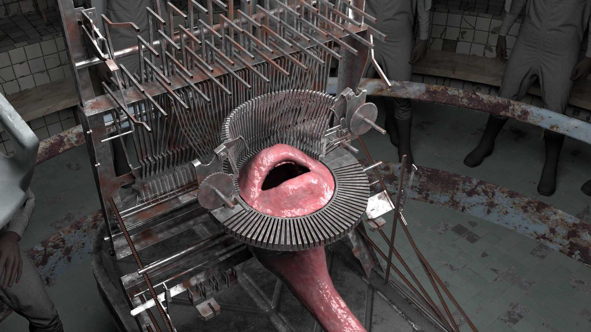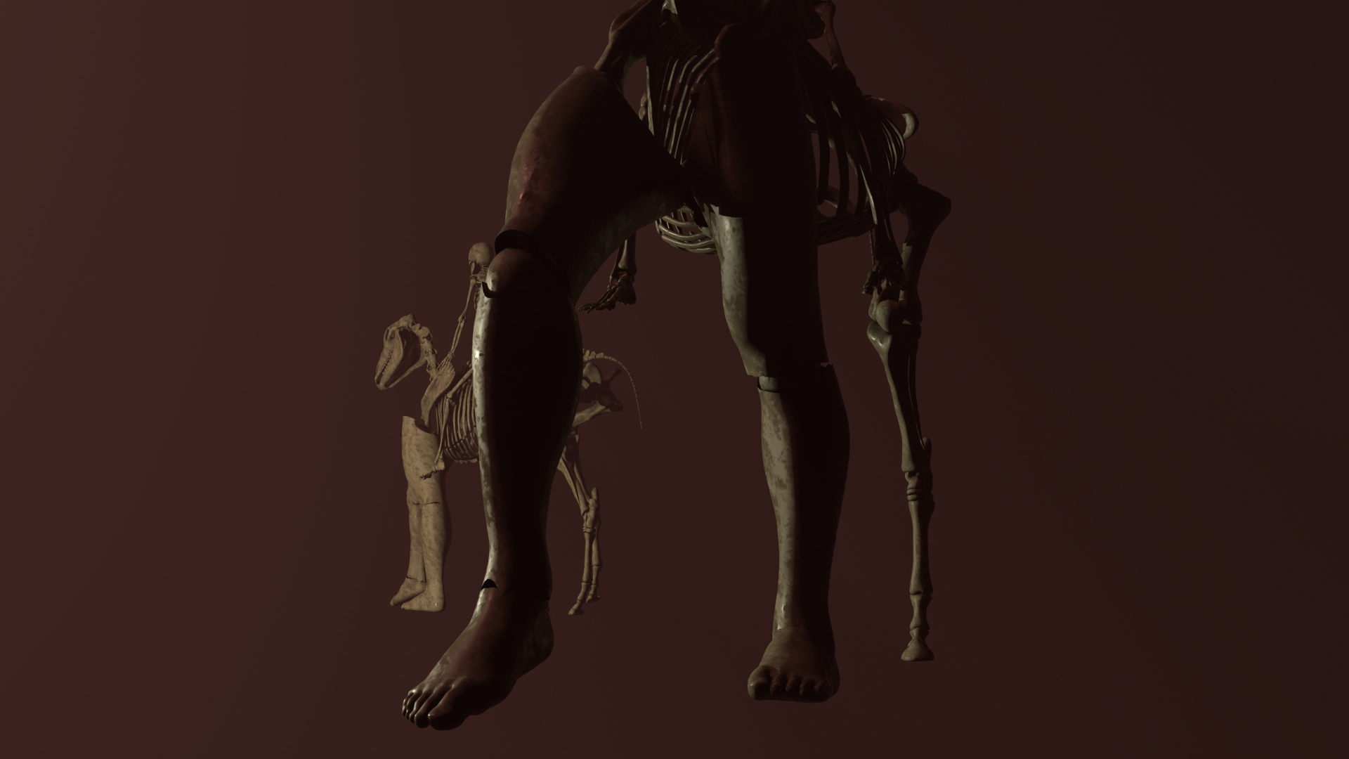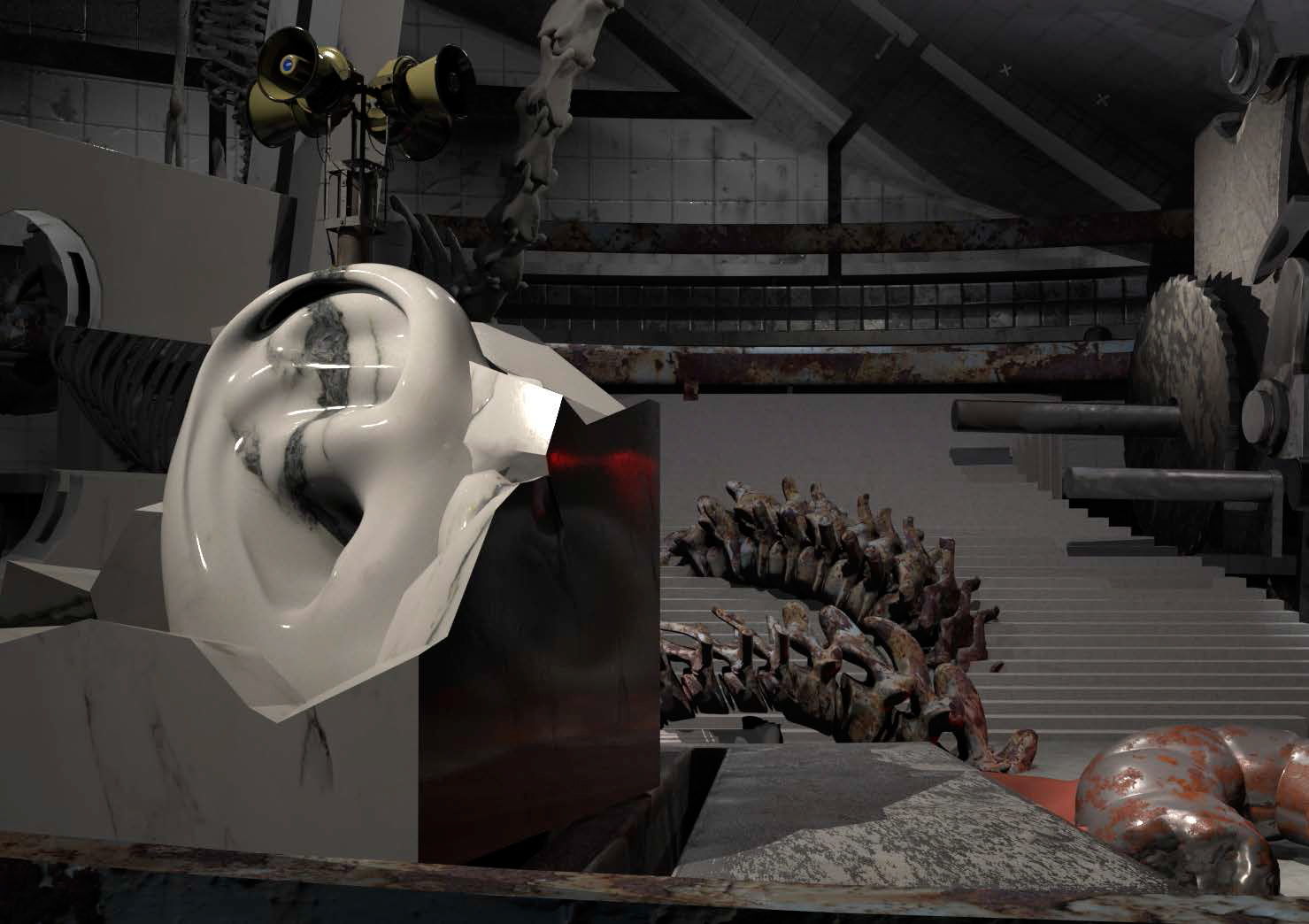 „Standard_Deviation“ ist eine Arbeit des Bruchs. In ihren ruinenhaften Orten, die einer posthumanen Welt, einer (post-)apokalyptischen Arena gleichen, ist nichts heil, weder die Räume und schon gar nicht der Körper, der vor allem in Fragmenten, als Prothesen auftaucht. Überhaupt werden die Grenzen zwischen dem Lebendigen und dem Toten, zwischen Tier, Maschine und Mensch auf brachiale Weise aufgelöst. So gleitet eine rostig-metallene Wirbelsäule wie eine Schlange durch den Boden, ein sich aus einem gekachelten Becken auftuender Schlund spuckt Knochen wie ein Vulkan. Horror, Trauma, wundes Fleisch – begleitet von einem dumpfen Soundtrack, Singen, Klagen, Flüstern, zwischendurch Momente der Stille oder sphärische Klaviertöne.