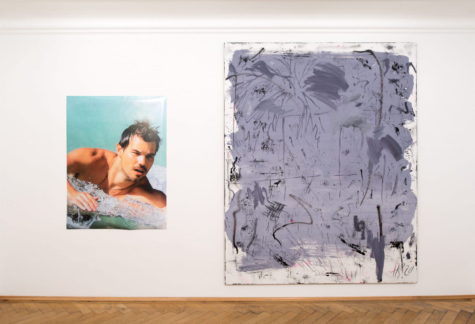 Installation view (photos by Megan Francis Sullivan, sculpture and painting by Lena Henke), photo: Sebastian Kissel, courtesy: Megan Francis Sullivan / Renke Klaproth, Courtesy SPERLING (Munich) and Galerie Emanuel Layr (Vienna)[/caption]