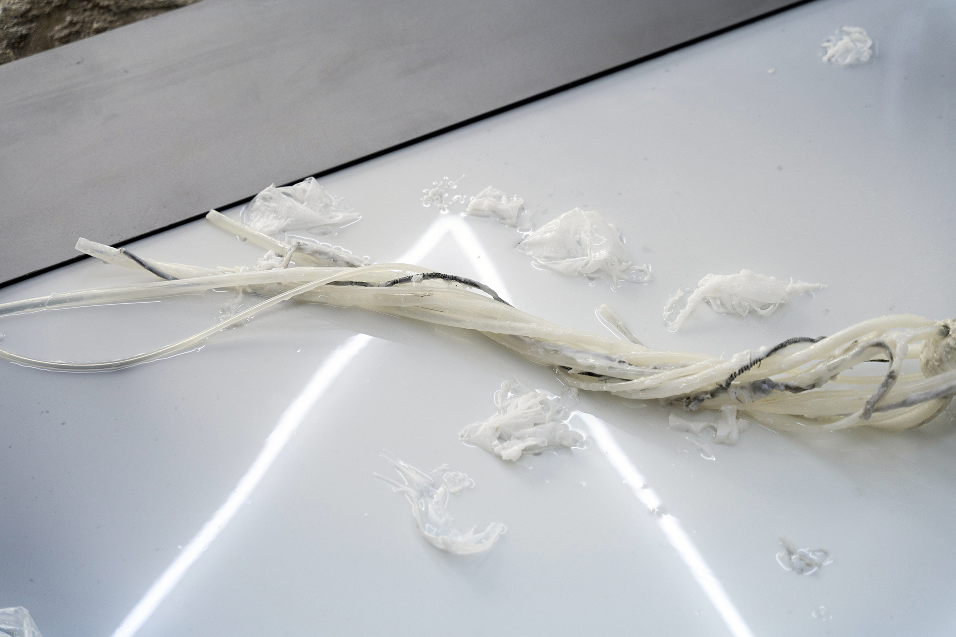 Lily Robert is pleased to present » words were never enough « a solo show by Mire Lee. From nascent stages Mire Lee has tested the limits of materials and mechanization, developing an alternative medium that escapes the standards of traditional sculpture. Employing materials such as electric motors, PVC hoses, silicone, lubricants, grease and steel rods, her practice forges a realm in which the repetition of actions performed by machines paradoxically refuses to generate the same results, with compositions that recall the fleshiness of limbs or the insides of the human body. Made possible by the support of Ministry of Culture, Sports & Tourism of Korea, Korea Arts Management Service, and the grant program Fund for Korean Art AbroadText