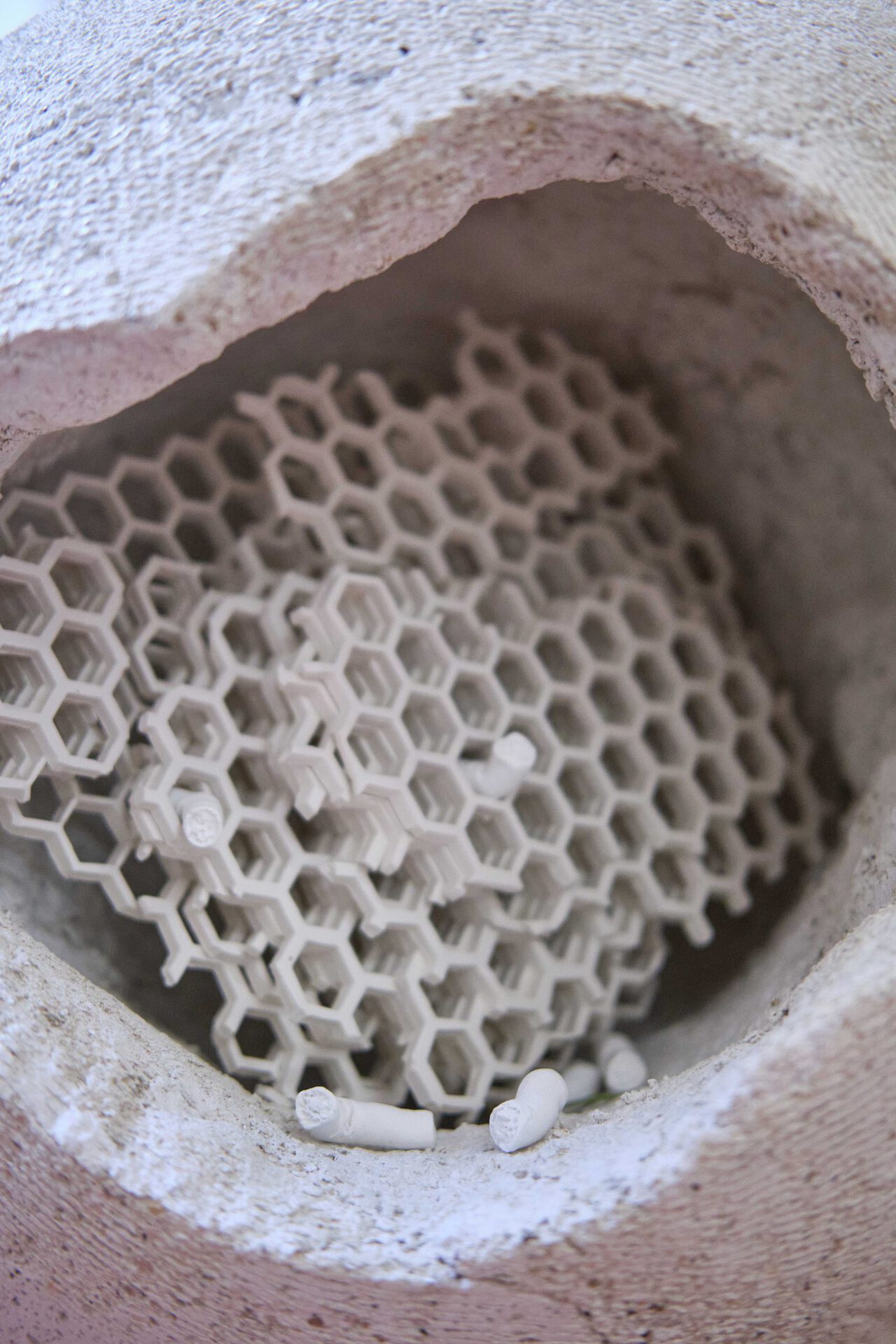 In a very abstract way, we may represent this matrix as a big veil that flies. In reality, when we have the misfortune to approach one of its mounds, it presents a completely different aspect. It has in fact at times a waxy quality and at other times even a honey-like consistency. The dangerousness of the mounds depends on these different states. The excess, the accumulation of its folds and honeycombed cavities produces a honey that is a drug for all the forgetful. They come to extract from it forgotten memories, unforgettable impressions, of lost places and times.