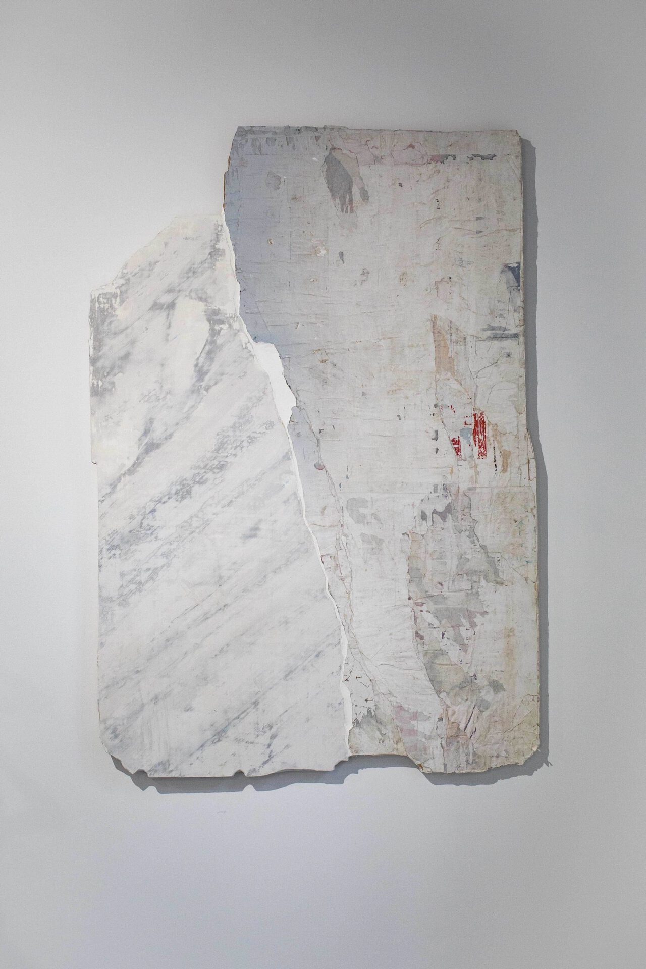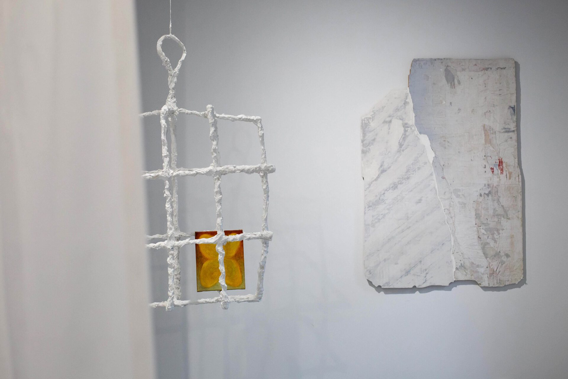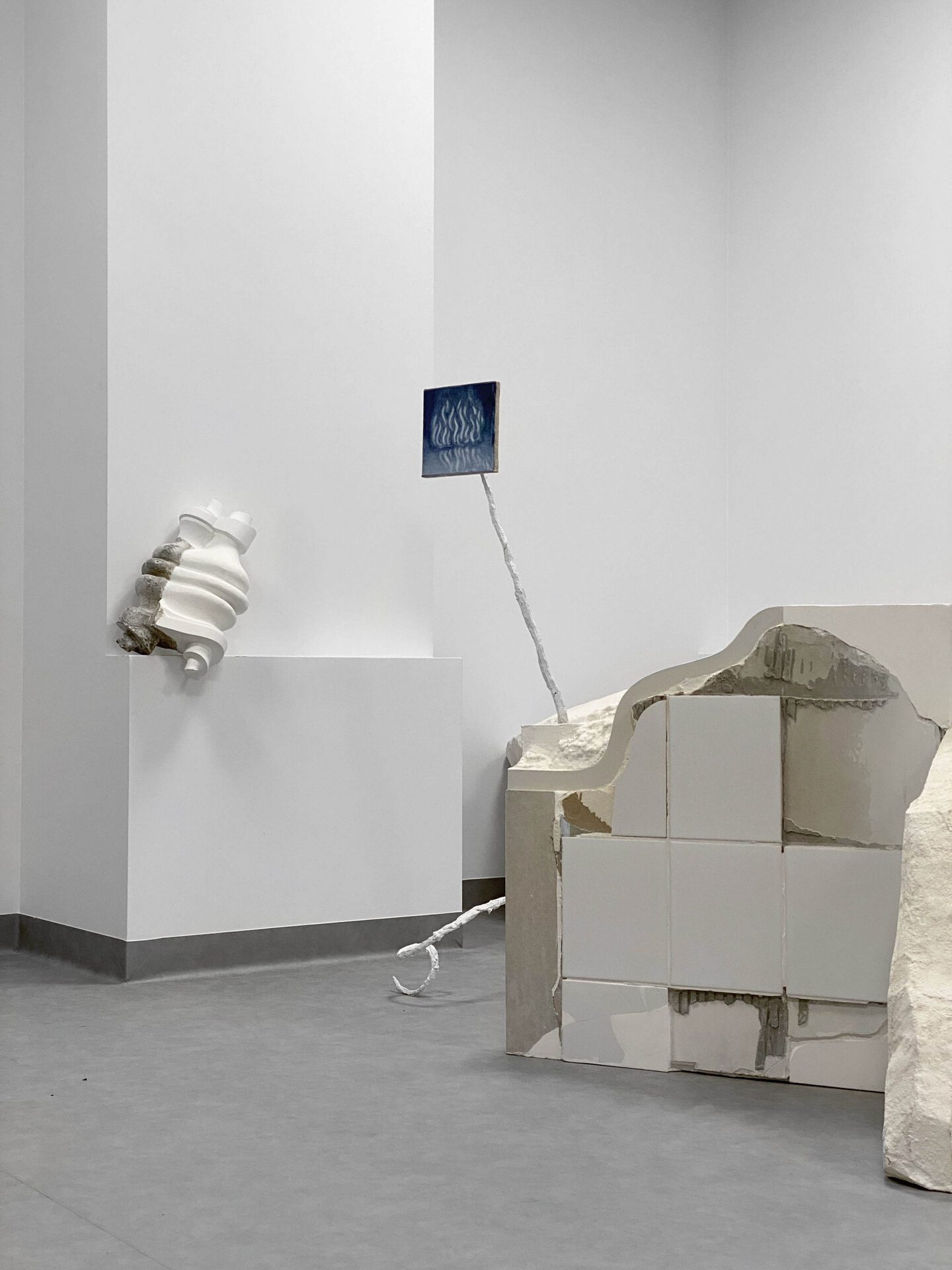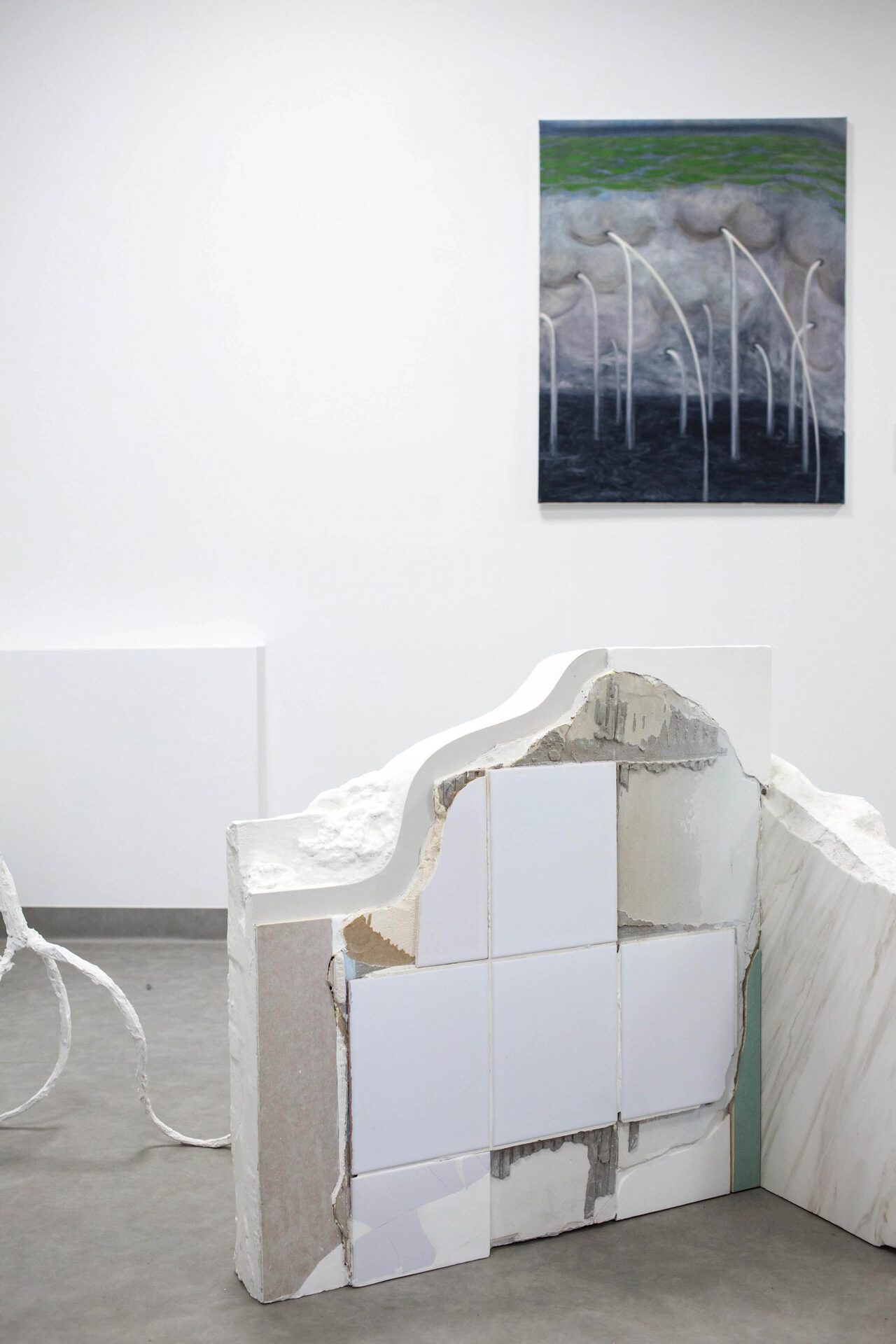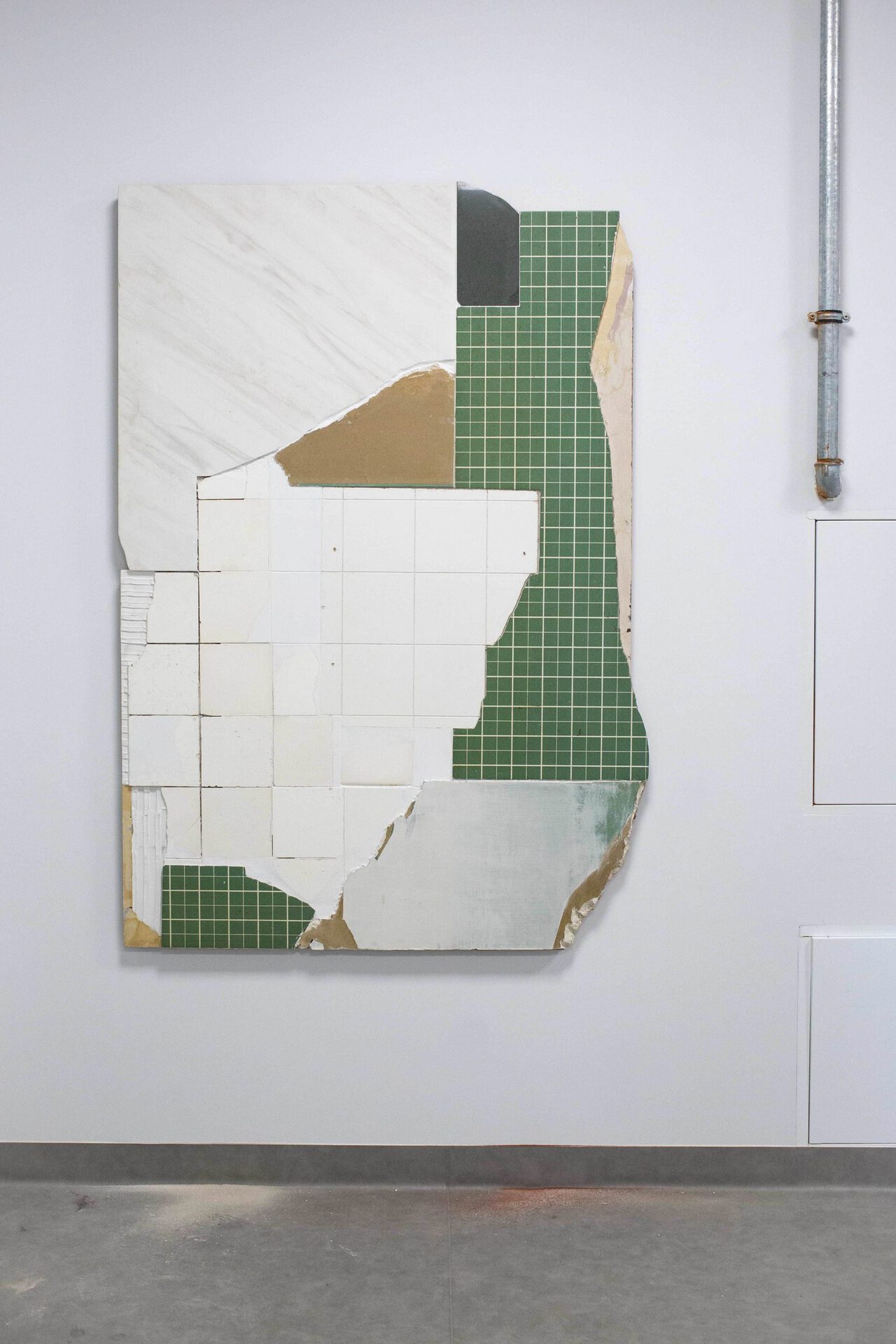 Rybkowski creates a vicious circle of representation. First, he creates imitations of materials. A very Baroque idea, if not for the fact that alongside artificial marble there are also fake tiles or PVC. He then undermines the very division into “the real thing” and “copy” by combining fragments of found materials with their representations. His decisions revolve somewhere between examining this division and denying its usefulness in a disturbing manner.