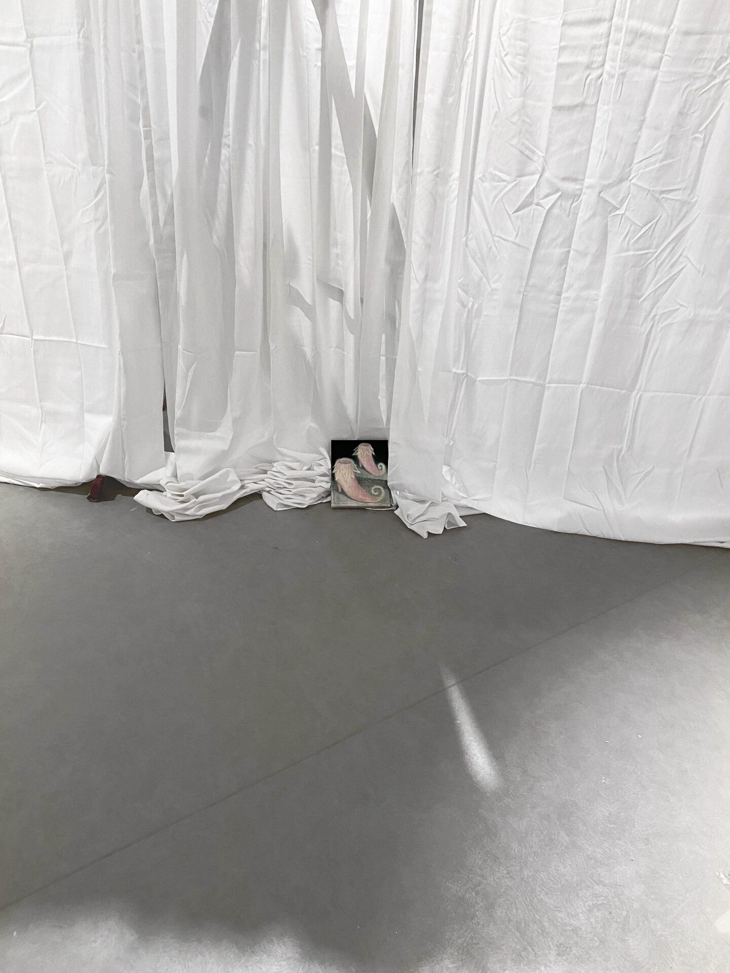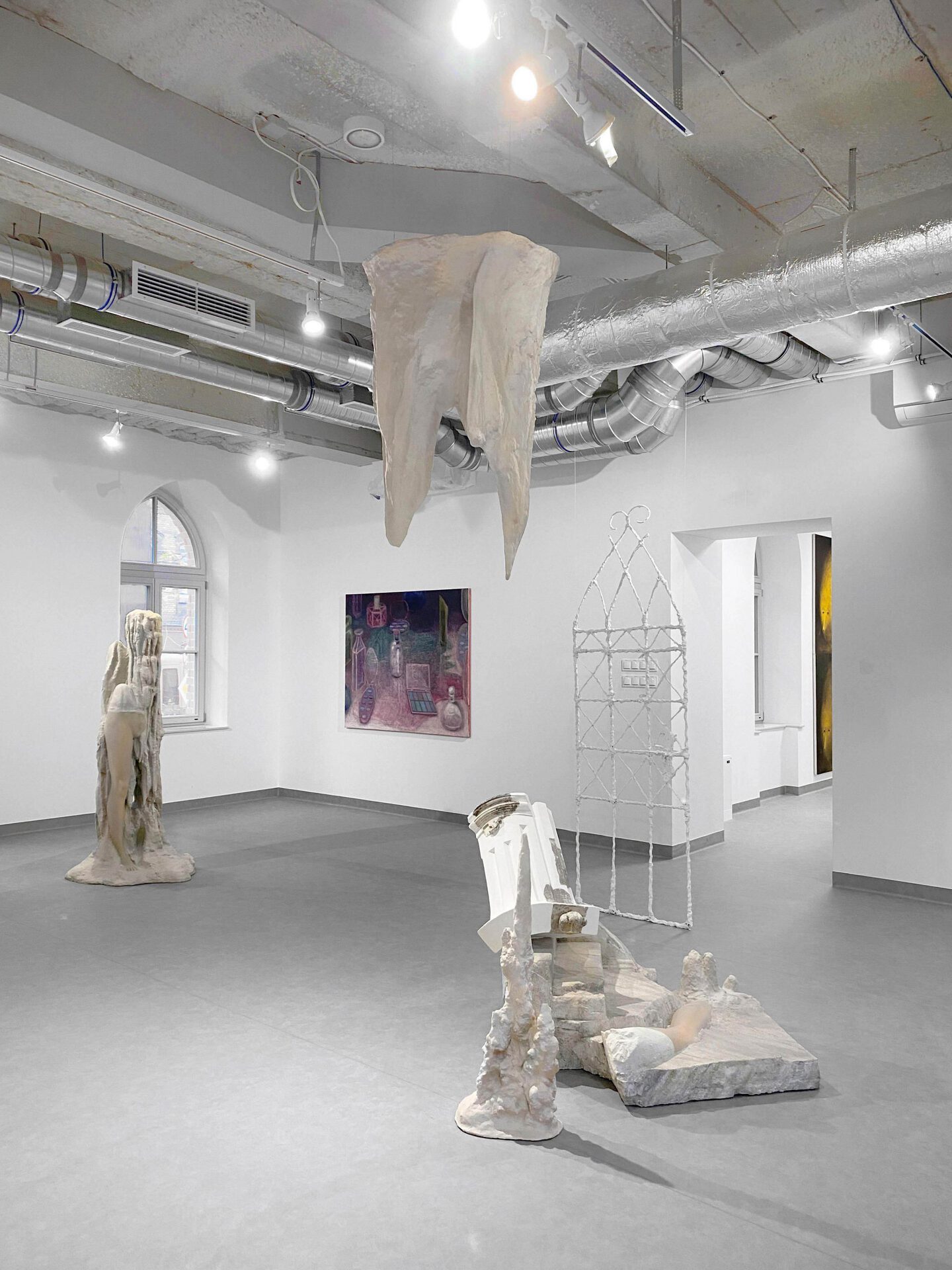 Apart from his earlier works, the exhibition also features projects from the new series Sediment Studies. It also seems to be a reconstruction – but this time of something that may happen in the future. The painting hints that it comes from beyond the Anthropocene epoch – stalactites can grow up to several thousand years. However, despite the masterful mimeticism, even this painting is exposed and suspended in a bubble of obvious illusion.