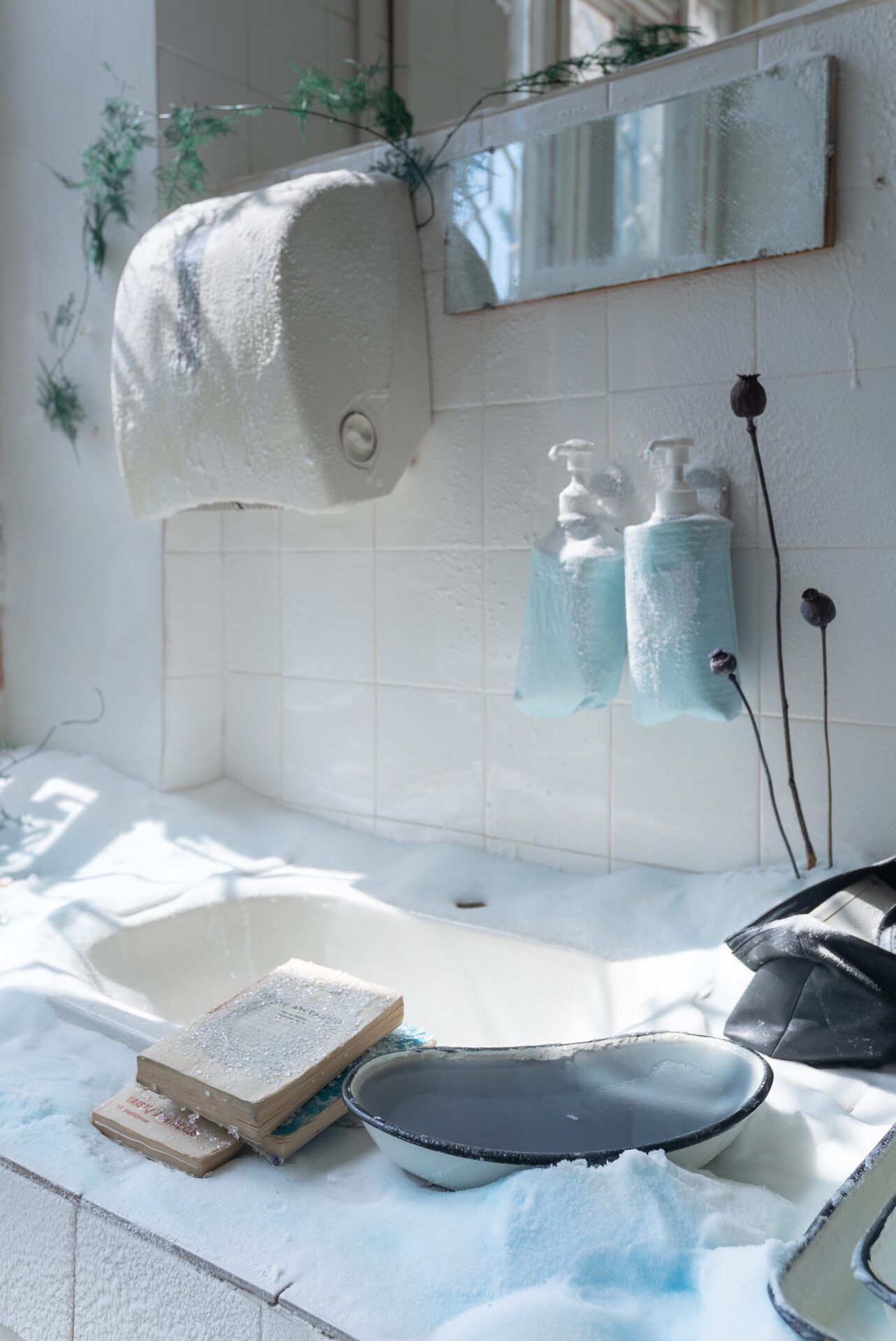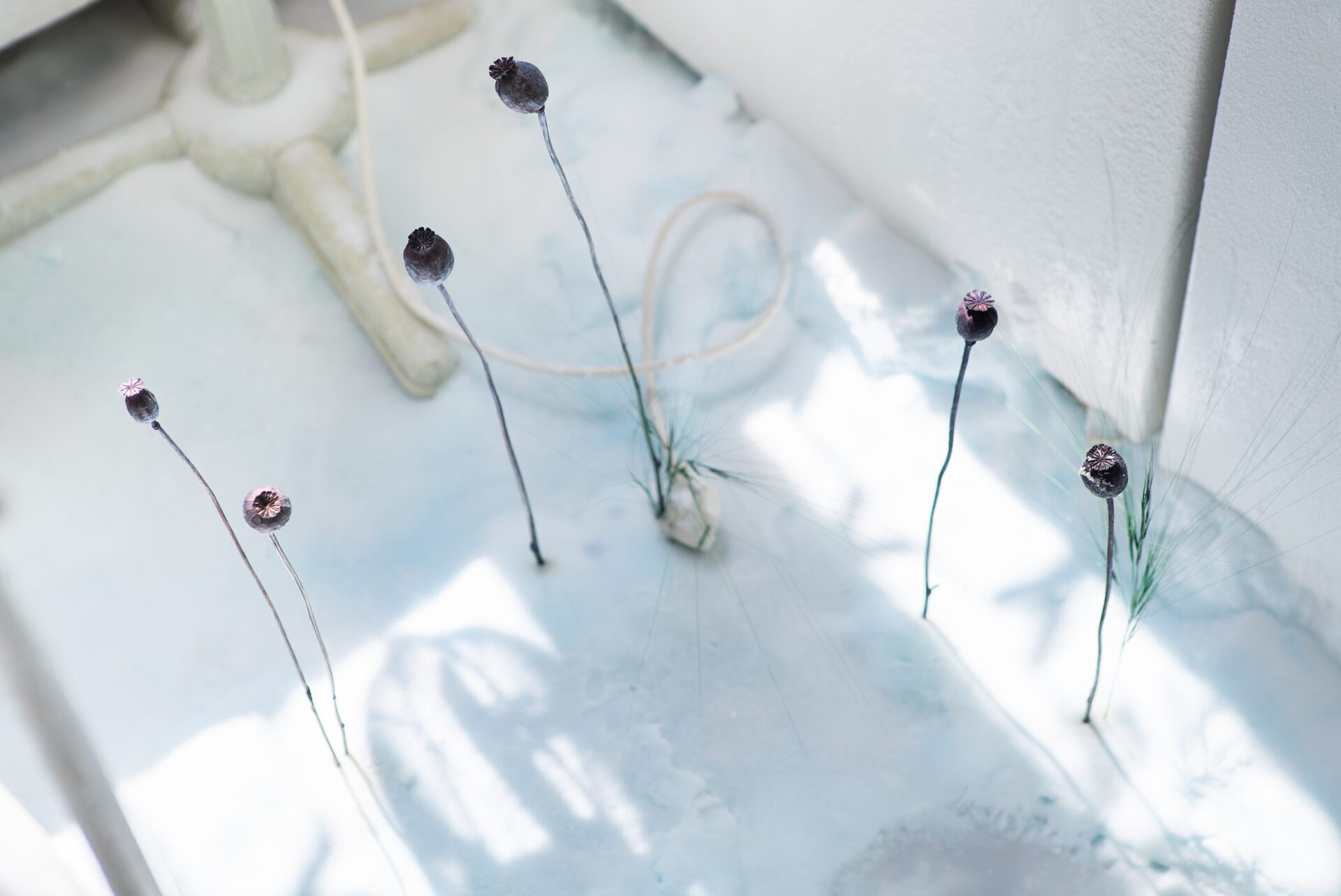 Bianca Bondi (b. 1986, Johannesburg) lives and works in Paris. Her multidisciplinary practice involves the activation or elevation of mundane objects through the use of chemical reactions, most often by salt water. The materials she works with are chosen for their potential for mutation or their intrinsic and symbolic properties. Her aim is to promote experiences beyond the visual and advocate for the life of matter with an emphasis on interconnectivity, transience and the cycles of life and death. Passionate about ecology and the occult sciences, Bondi combines the two, resulting in pluridisciplinary works of a transformative nature through which the aura of objects is key. Often site-specific, the poetic results are very much connected to the places in which they are to exist.