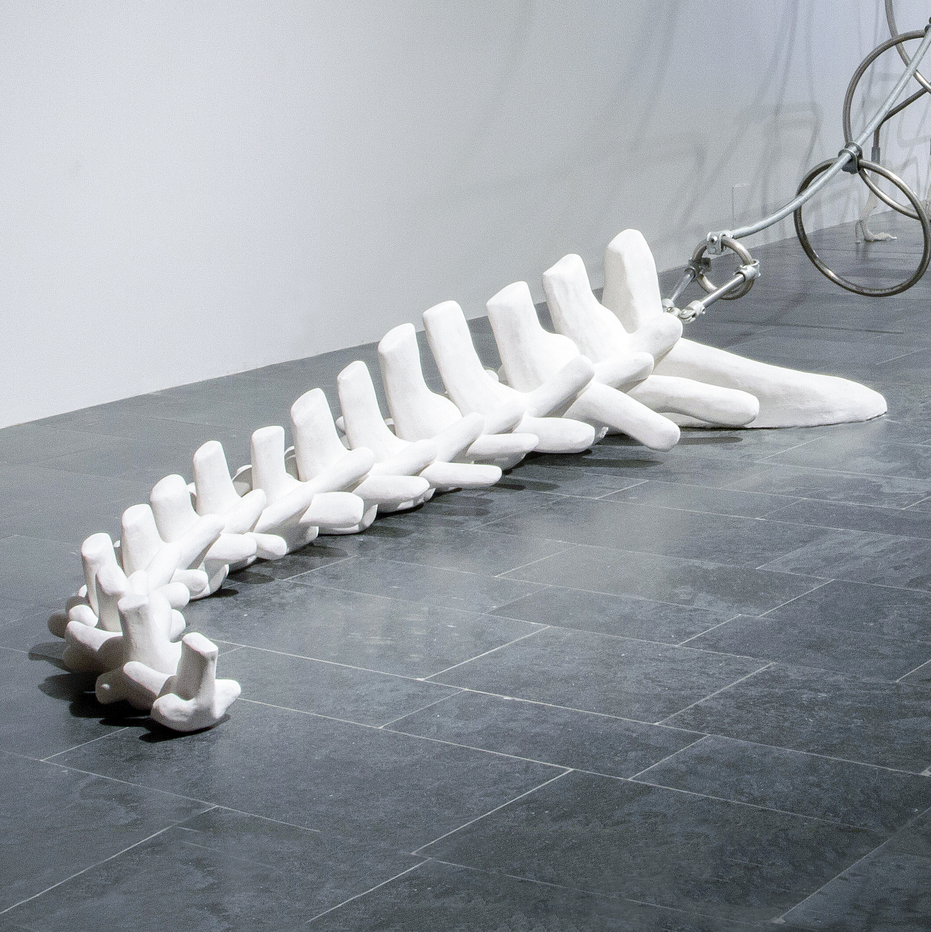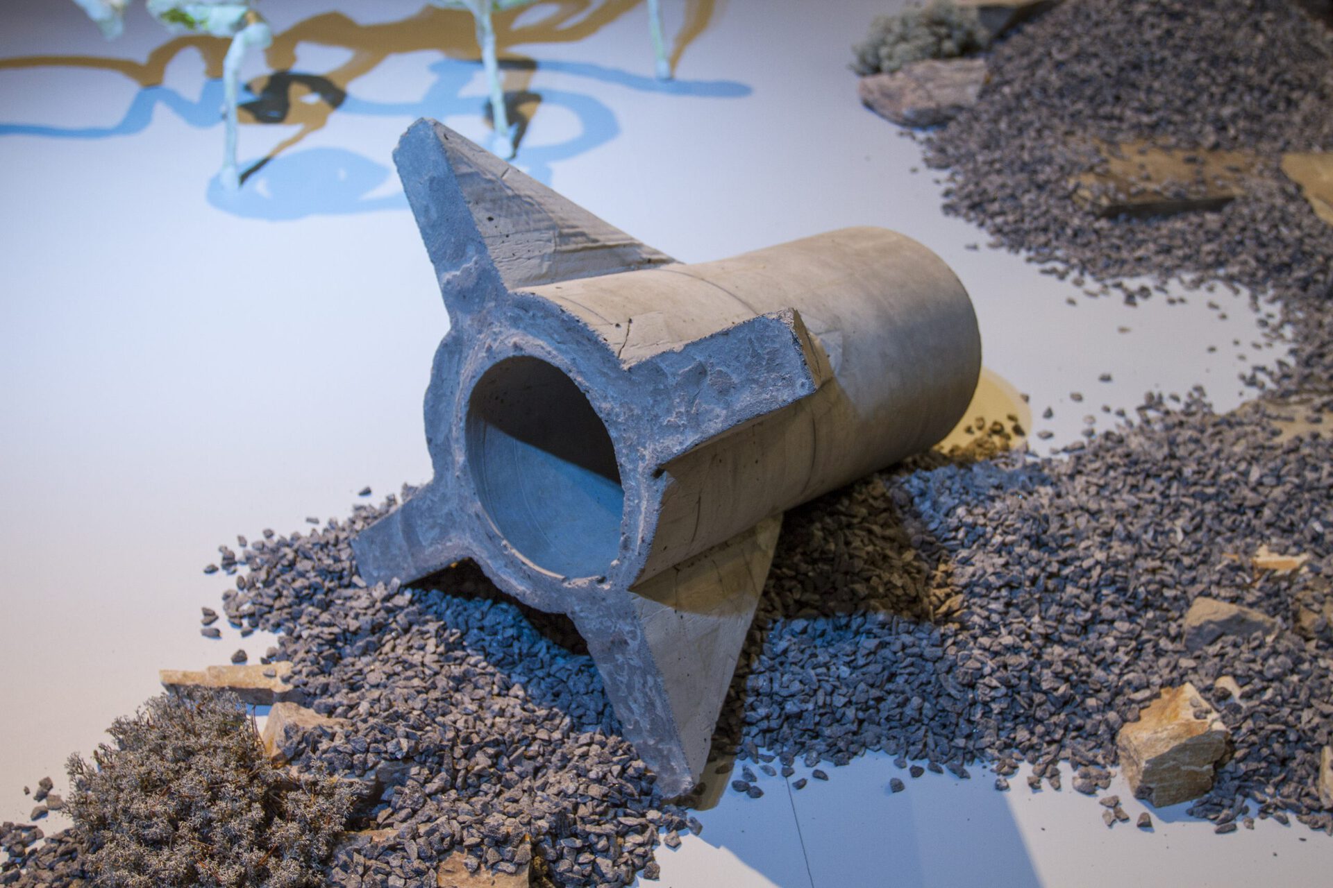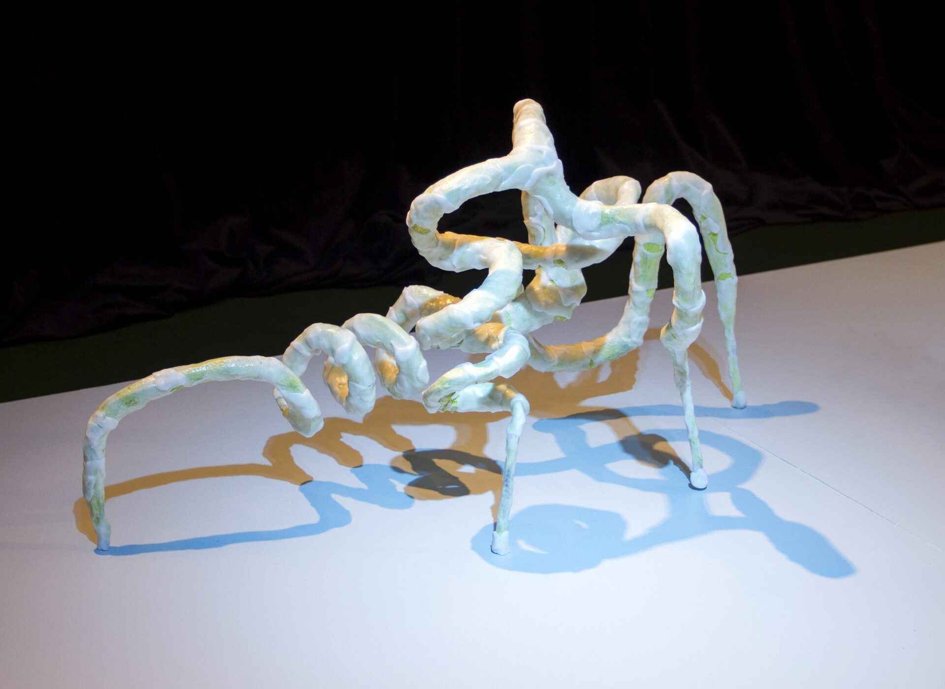 This cartesian crawler is a fabulous creature, a phantom that originates from and is generated in Crash-zone B. It can move freely over the horizontal x and the vertical y-axis; it is an agent of the in-between. The sculpture copies the dimensions of the shelters that line the road in Crash-zone B (that is discussed in Thörnqvist’s installation at Norrbotten’s museum). Cartesian Crawler’s presence stirs a number of complex and political issues related to place, cultural heritage, colonialism and acceleration. The freewheeling exponential growth of our time, whereby we live in constant oscillation between utopia and dystopia, resemble classical and religious notions of history as steering towards inevitable catastrophe and extinction. Perhaps the crawling and clambering will pave the way for a different reality altogether.