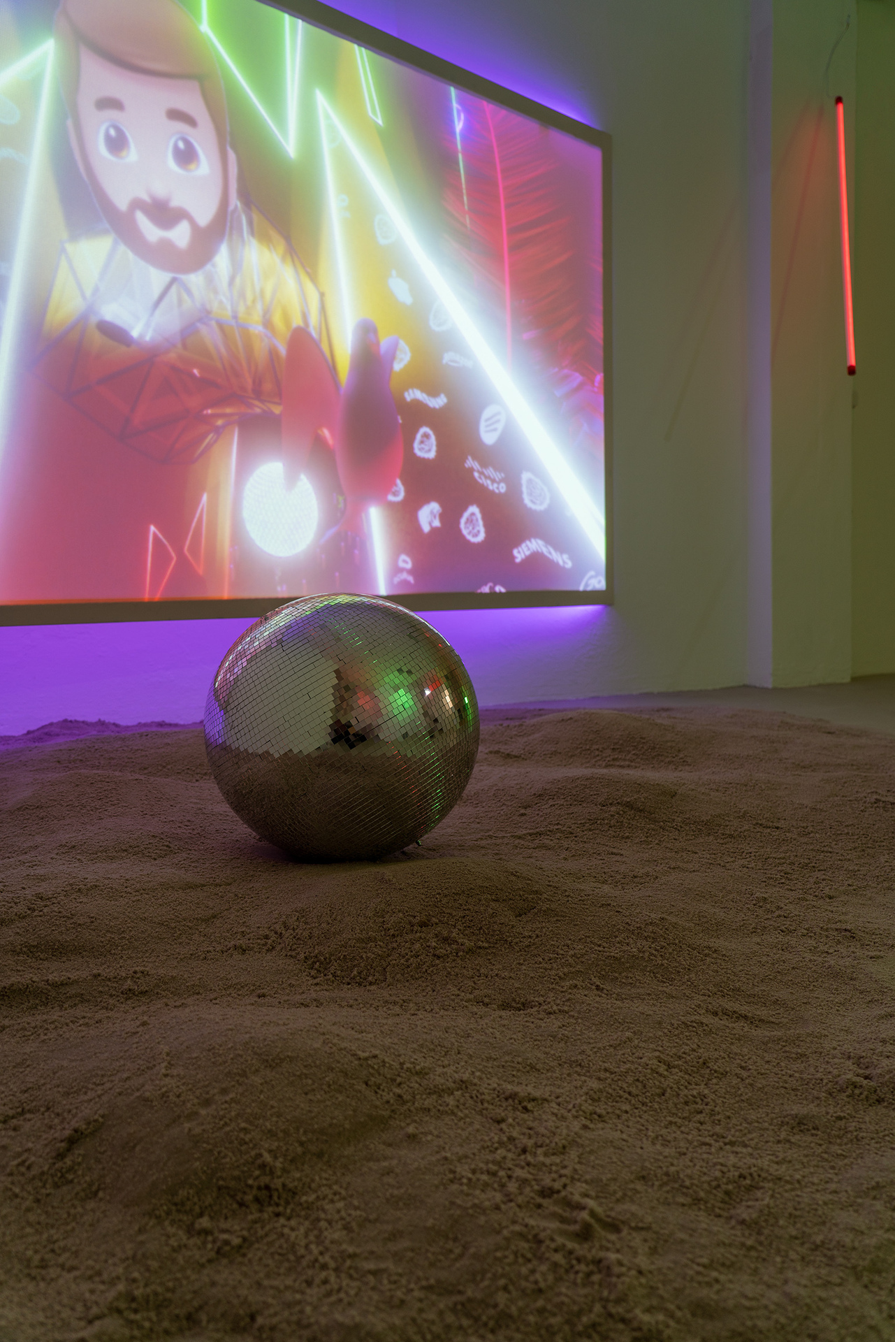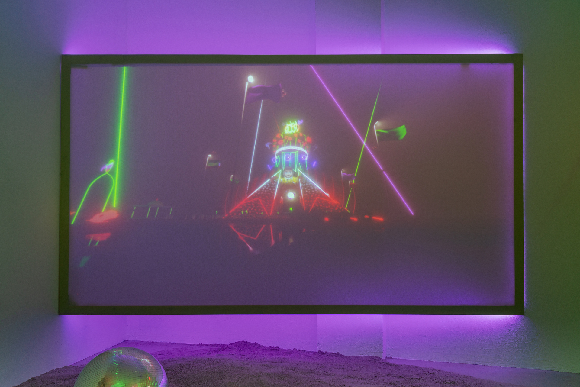 Bijan Moosavi's work Disco Islam (2020) paints a picture of Iran as a commercial clip. In the 20-minute video full of vaporwave aesthetics, CGI, live-action and music he takes us through various political, historical and cultural topics and opens up a mind game about what it would look like if countries wanted to become trends. Where might that lead? What are the visions? The answer is presented in start-up-speak. A party - a club that solves all problems, if only enough is invested, if this region is connected to the European market. With this simplification, he shows the absurdities of Western problem-solving strategies: capitalism would make of everything better.