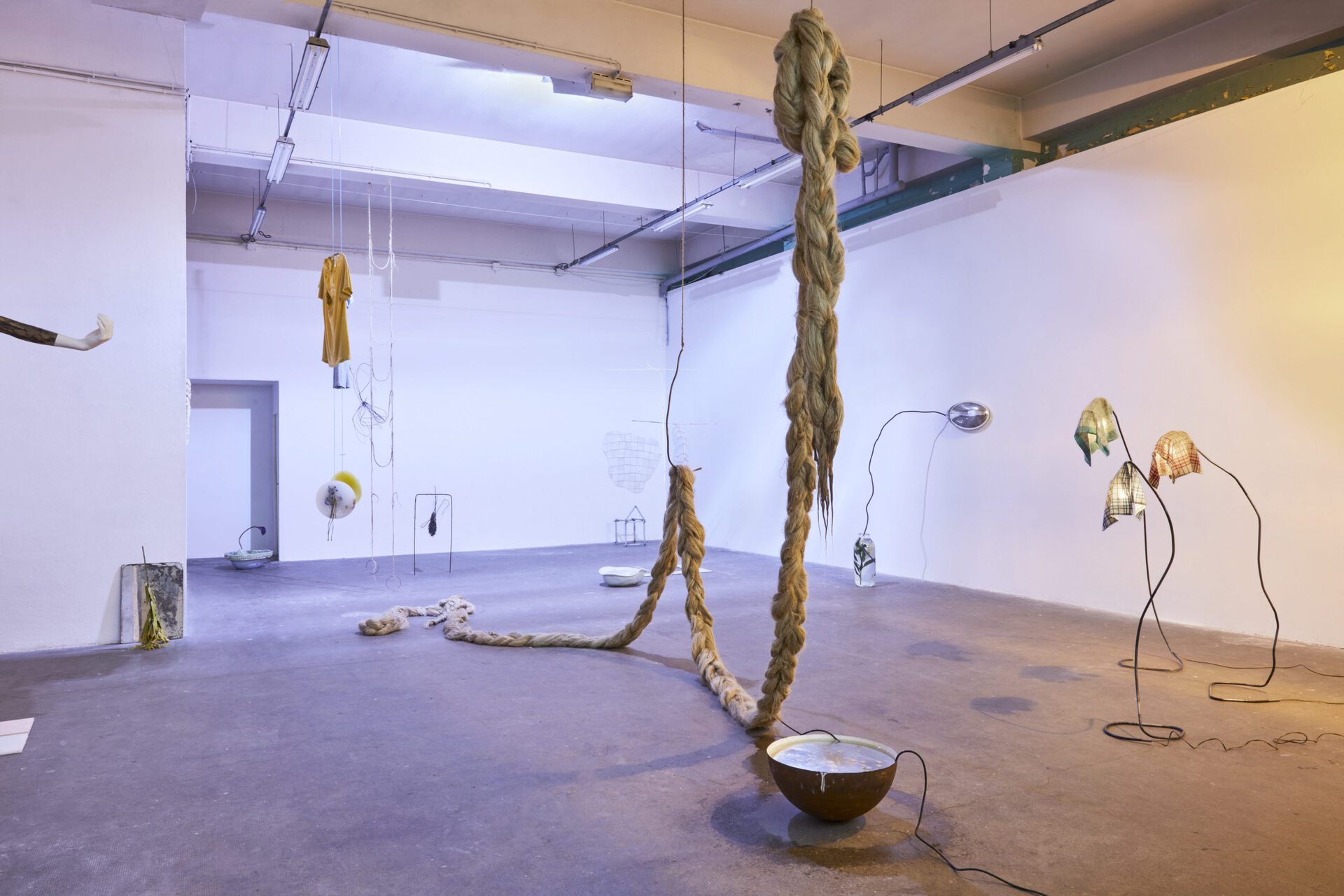"Blue hour Dark lakes" is a personal show by French-Polish artist Alicia Zaton, co-founder of DOC ! in Paris. For Alicia Zaton, shape is a material which reacts to the present, while also bound to a memory and consciousness of its past. She calls forth our memories of what is foreign within us and opens up the possibility of parallel time lines. She invites for this show two friends and artists, Constantin Kyriakopoulos and Maya de Mondragon to collaborate on installations and sculptures. The show is accompanied by a song and poem by Tatiana Karl Pez written for the occasion.Text
