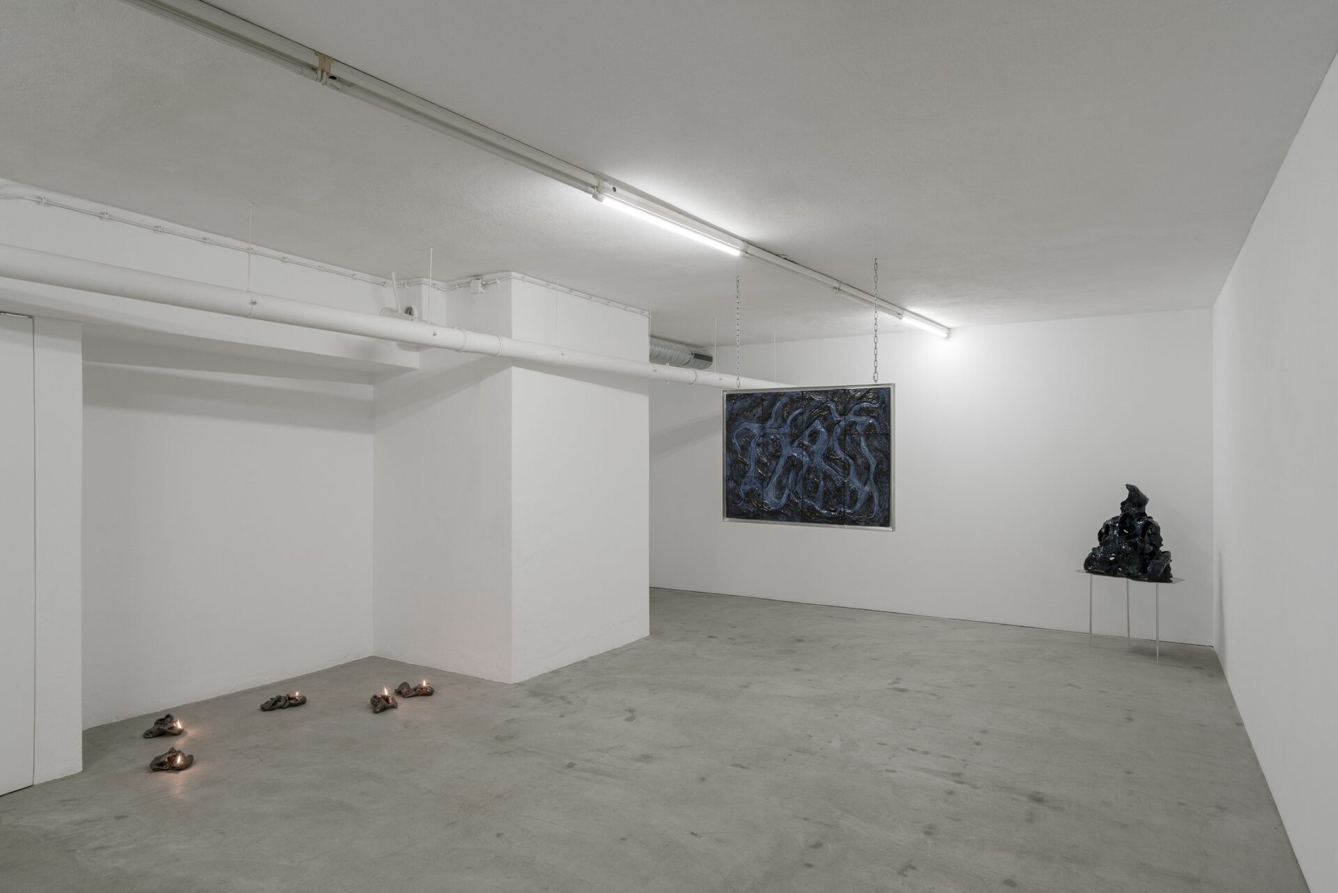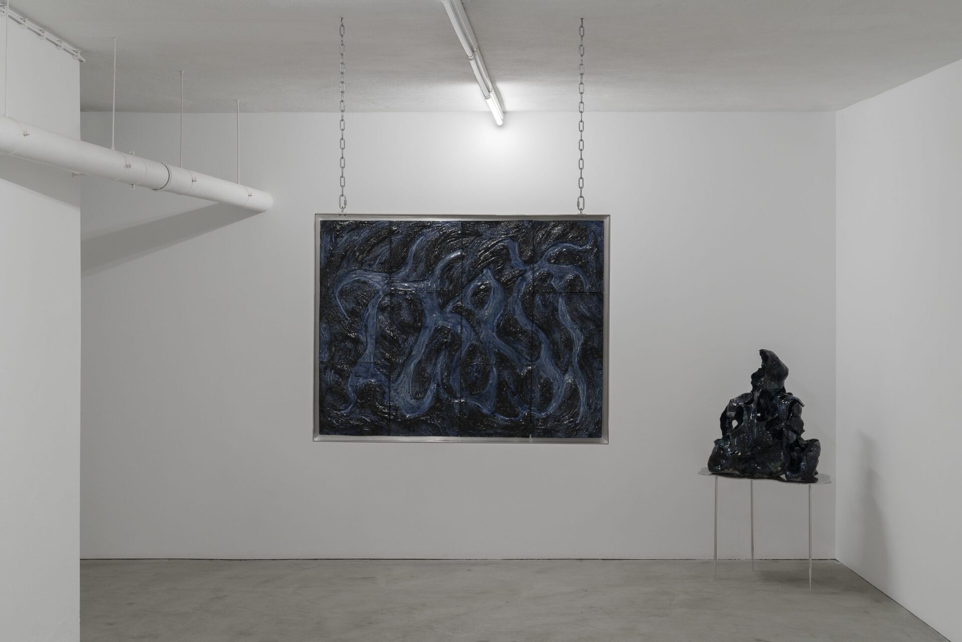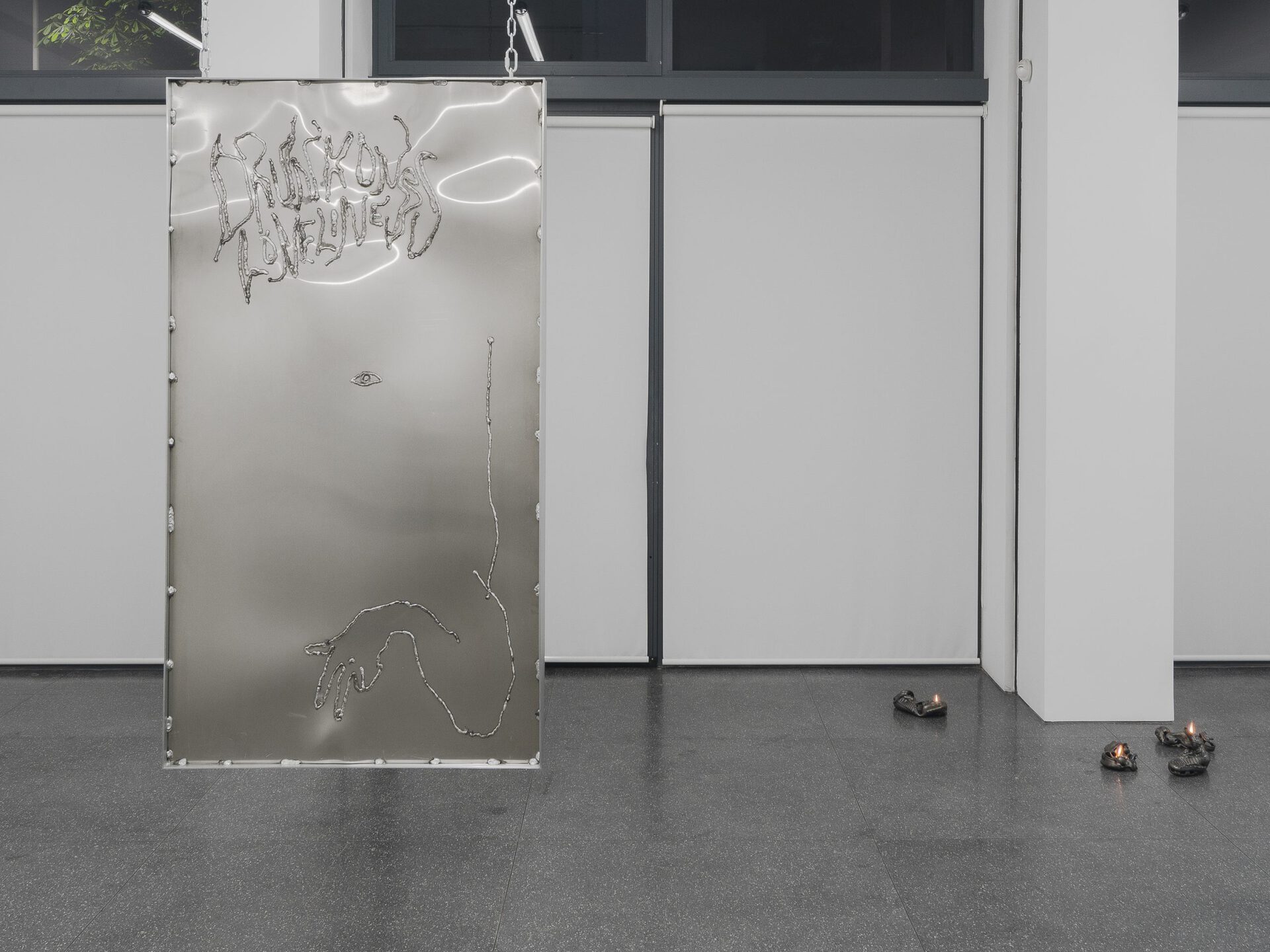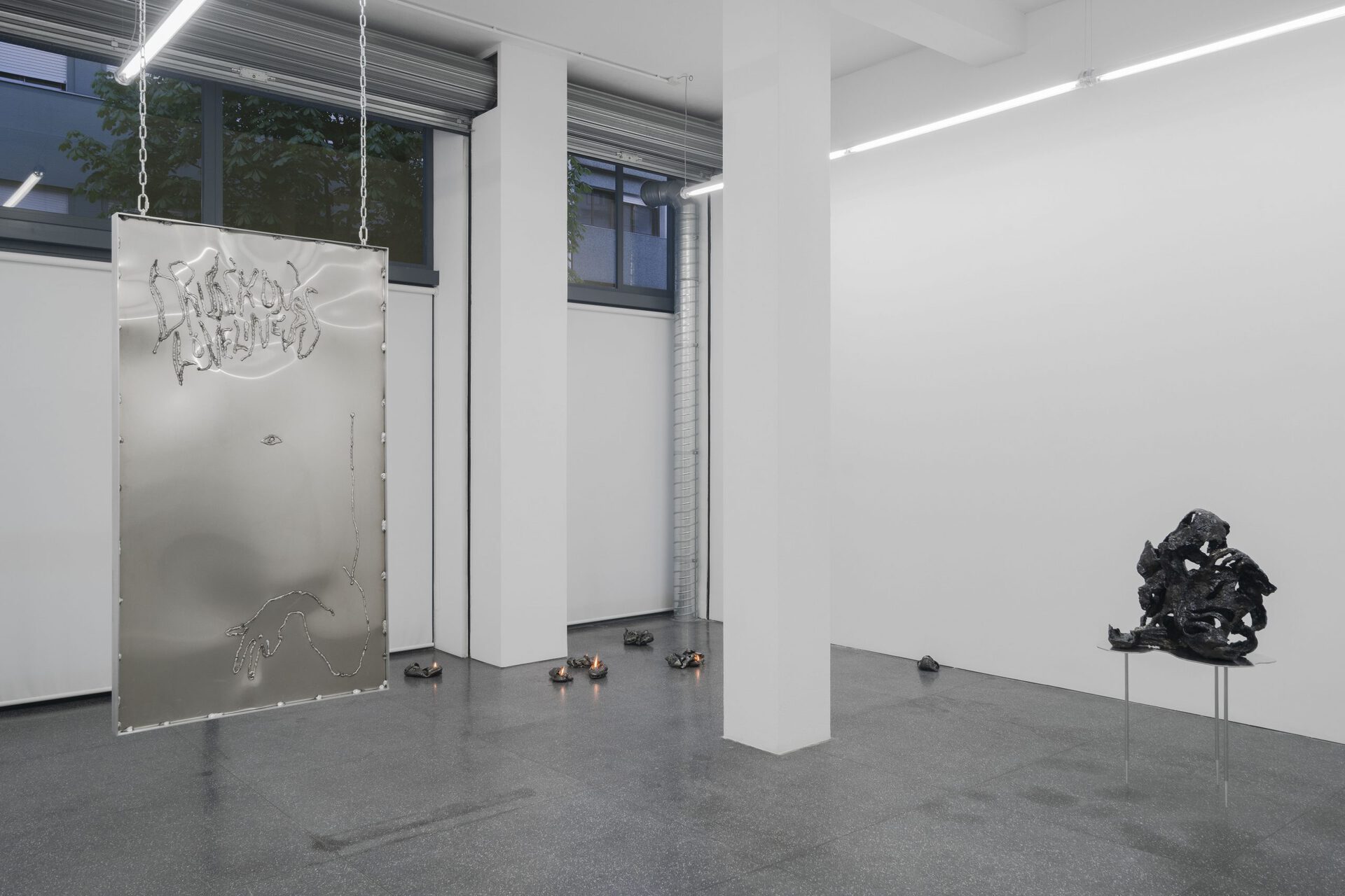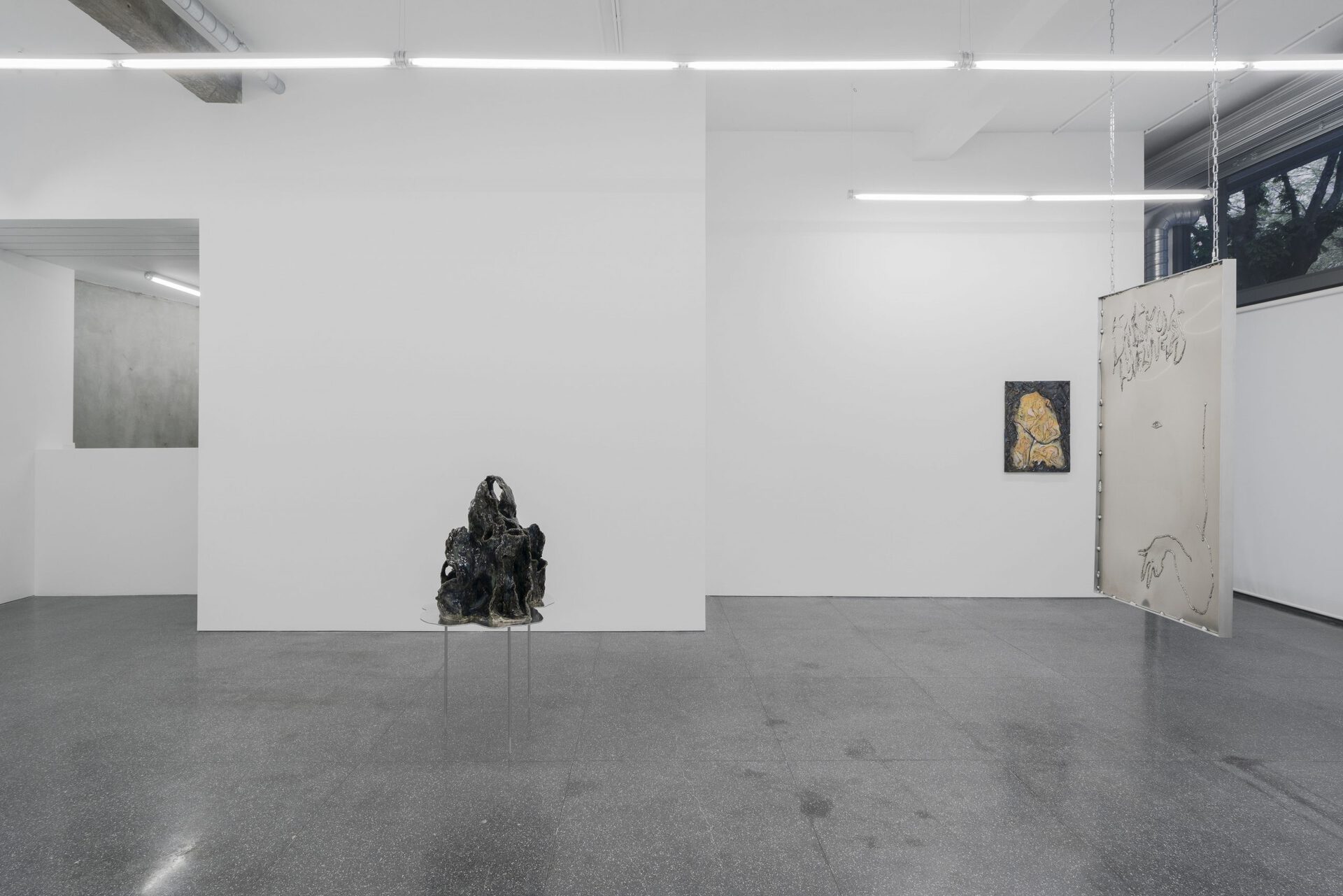 Burned against the rear fender, Monika Grabuschnigg’s first solo show in Portugal, continues her investigations into bodily and cerebral desire; into the ravaging force of fire and intensifying heat across the planet; into what the inexorable melding of cognition and code means for what it is to be conscious.