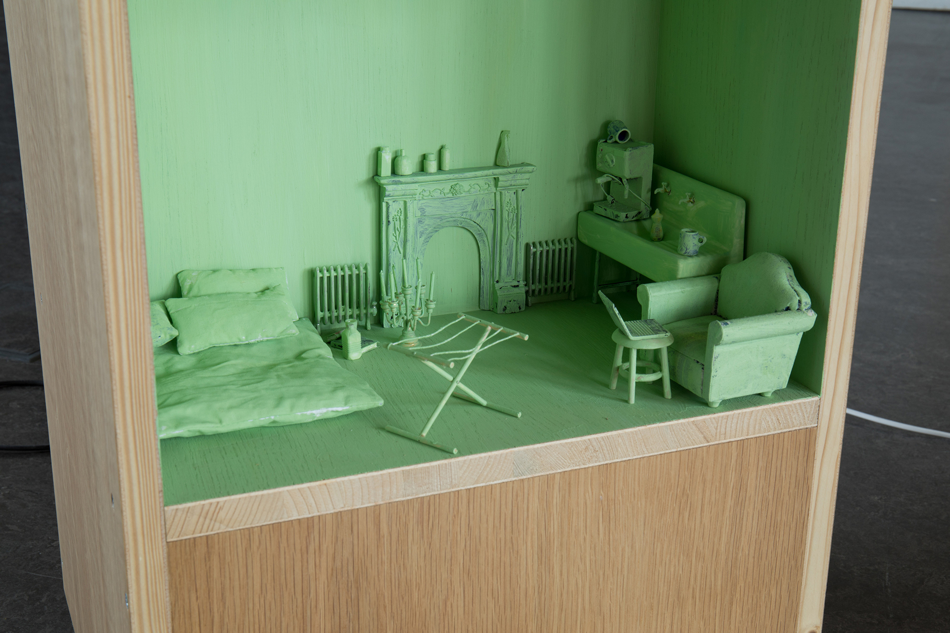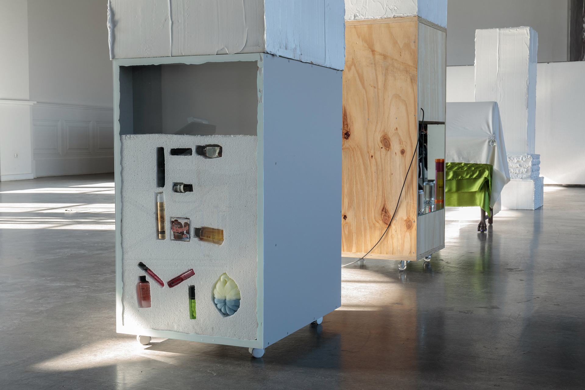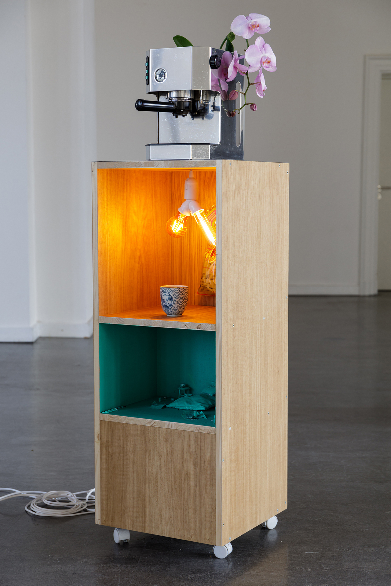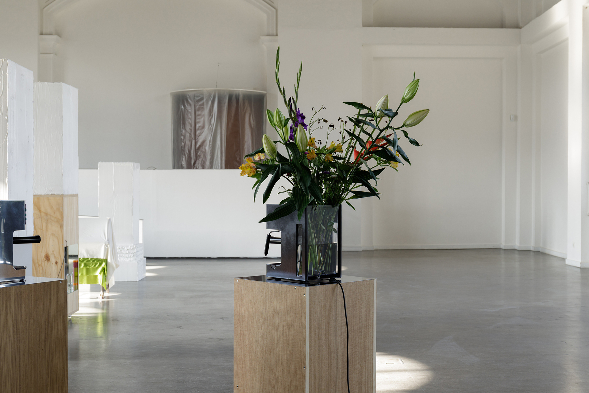 The exhibition deals with the paradoxes, hovering around the spheres of consumer goods, desire for individuality, and projected role models. Her drawing on Vietnamese Buddhism directs attention towards the seemingly insurmountable gap, laying between the belief in the accumulation of goods and the understanding of life as a condition leading from birth to death. The exhibition consists of two groups of sculptures and a video, working with a seemingly private everyday aesthetic of trivial self-stylization.Text