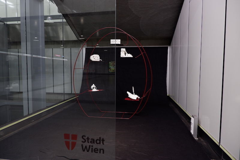 For her special project presented by Marcello Farabegoli at Vienna Art Week 2020, Natalia Gurova created a site-specific installation for the Red Carpet showroom Altes Landgut (Old Manor), which is situated in the U1 subway station with the same name. Gurova is a native of Belarus and studied journalism in Moscow, where she was active before moving to Vienna in 2014. She worked for BBC and wrote about social and political topics, human rights, literature and the arts. Her artistic practice consists of creating objects which trigger certain behavior patterns in visitors and make them aware of social processes.