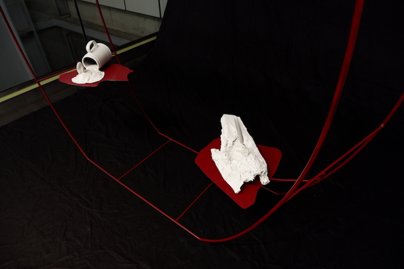 Gurova’s installation tries to tackle a history of different forms of boredom, such as spleen, melancholia or the black humor (l’humeur noire), which Louis XIV exerted when letting only certain counts sit down at dinner parties, while others had to endure a standing reception that made them get bored after a while. At the same time, excessive tea parties became a spleen that created drug-like exuberance in 17th century England. The Russian version of melancholia can be found in the 1859 novel Oblomov, in which a nobleman experiences fatigue and has to find techniques such as his daily afternoon nap to come to terms with an abundance of time. A non-conformist, he even denied social gatherings and preferred idling around the whole day.