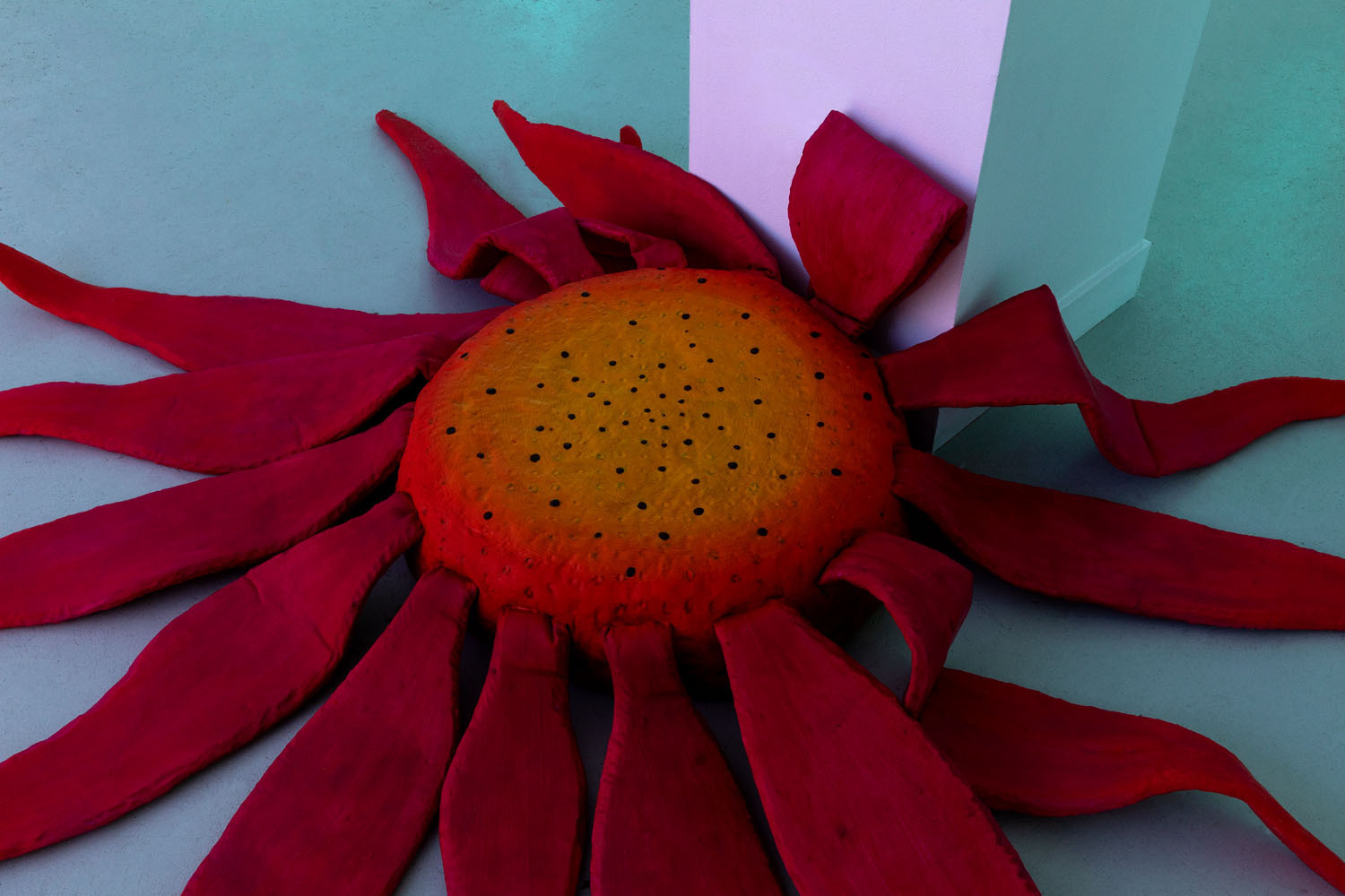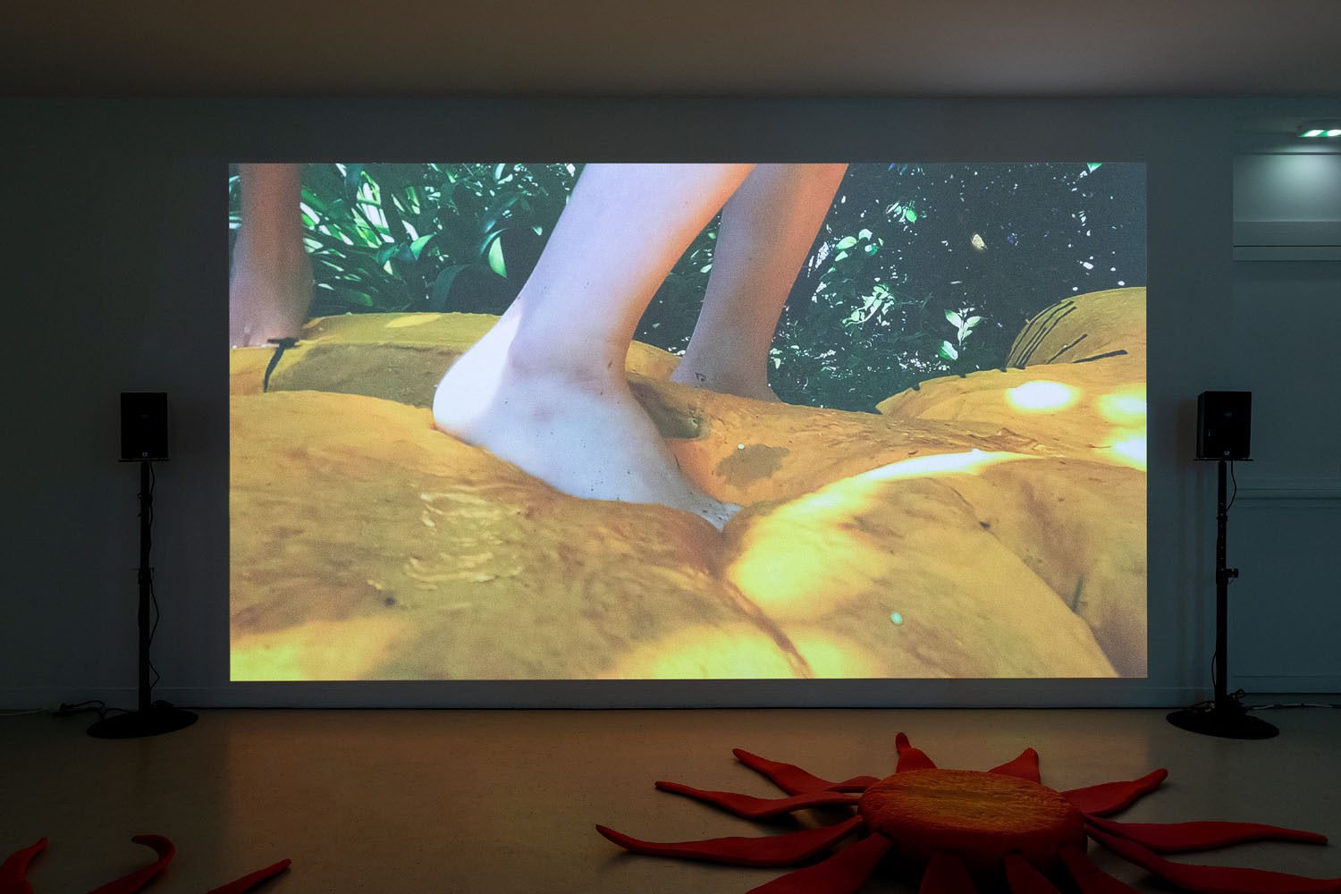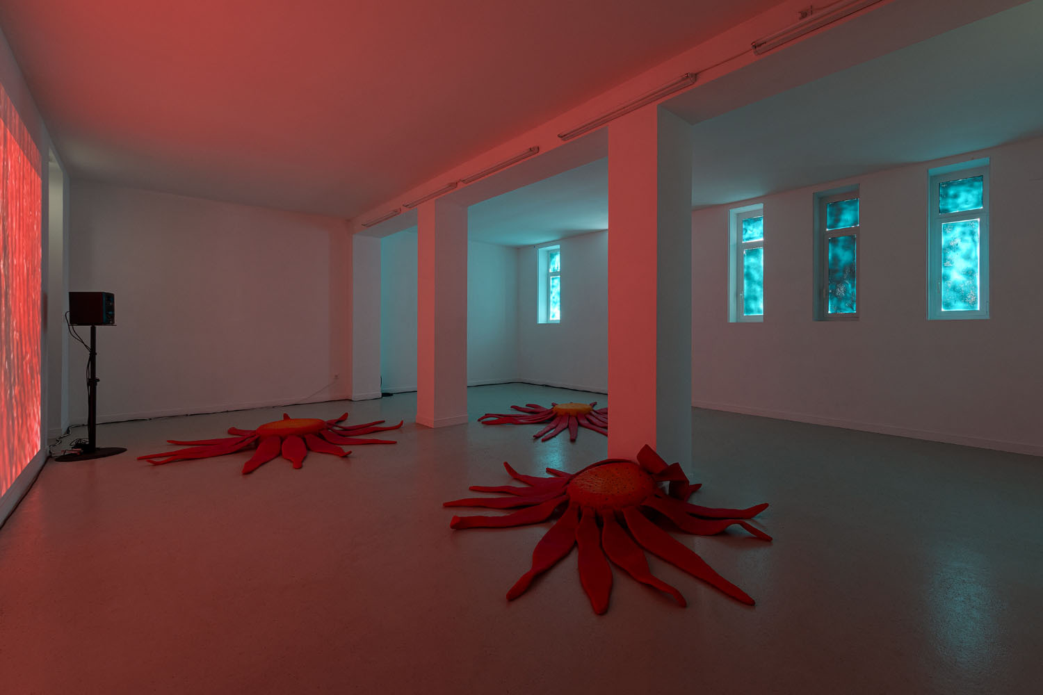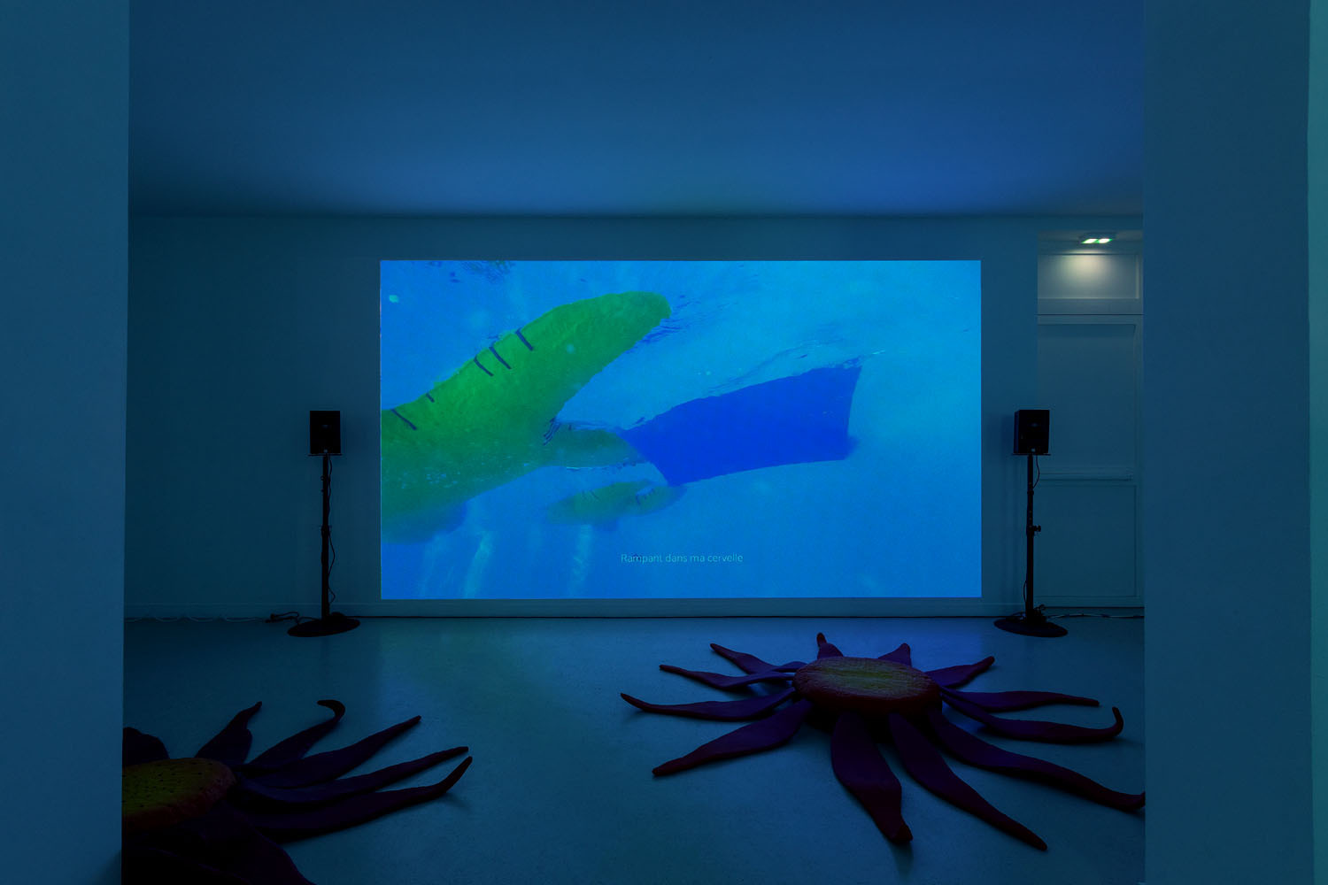 Its effigy, the open mouth, characterizes Agony, who is prey to a silent scream in the film SUGAR FREE, the first three chapters of which are being screened at Les Bains-Douches. This odyssey shows the ecological devastation inflicted on planet earth that is caused by a kind of engulfing blob, HD Steak, born of genetic manipulations originating in synthetic meat. Beneath the regular stripes of industrial post-animal meat, the character Agony takes shape : a donut with an anthropomorphic shape saved from the disasters of a meat deluge thanks to their plastic packaging, which proves especially resistant. HD Steak is the seminal character in this 2D animated story and since 2013 has reccured in the artist’s work, but today it is ceding that position to another entity, Agony. This newcomer springs from crayon drawings that have been extended to include sculptures in a range of sizes that are made from matress foam, covered with natural latex. Then, they are manipulated in front of a greenscreen and animated on computor. In their design and realization, the films are long-term projects, reflecting the time Malgat has spent experimenting in the studio and living with these objects, whose uses transcend their mere display in the usual white cube space.