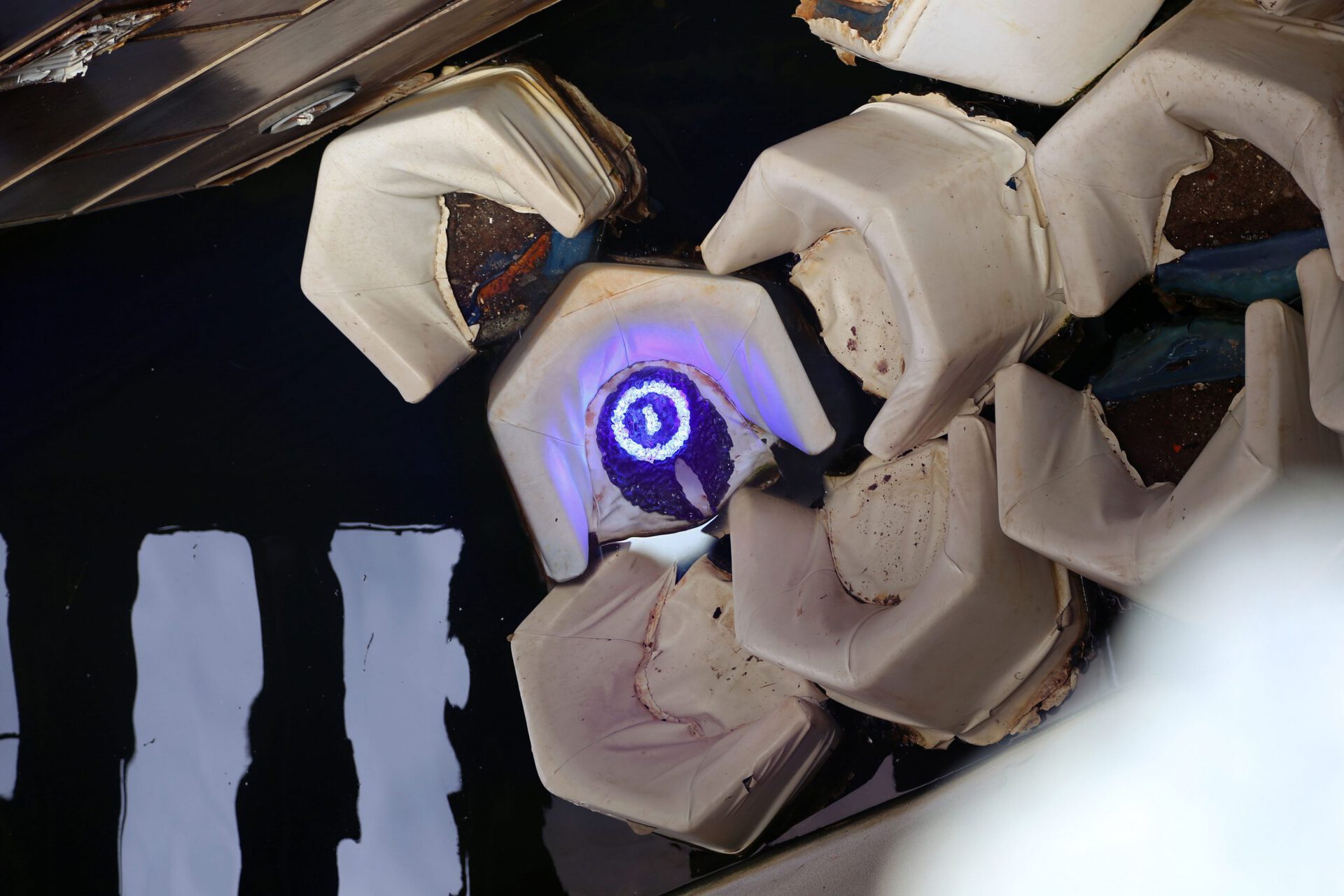 Who then has the right to claim for themselves this illuminating power? Who stands outside of black lake’s opaque waters – intact, dry, and objective? We are always too sure in our attempts to gain mastery over an object of knowledge and to preach that knowledge further. But especially in the fast-shifting world of what we perceive as present, entangled and stretched across endless networks of physical-digital bodies and objects, it is perhaps obvious now more than ever that there is no isolated island from which to watch the sinking boat. Rob Coley writes that in the 21st century we face “the need to grasp climatic scale and temporality, which nonetheless elude cognition, and the need to contest the computational infrastructure of capitalism, which nonetheless passes into opacity in accordance with its integration into everyday life.” We thus are and always have been embroidered in geological and algorithmic forces beyond our rational, cognitive and physical recognition. (Haven’t Erewhon’s machines been using our senses to see and hear for all that time?). The highly problematic supposition of an achievable distance from which we could reflect on the world crumbles under the onslaught of the unknown, which doesn’t crawl only from the Outside but resides in the very core of thought – “the real is opaque, an immanent blackness that humanist philosophy has forgotten or foreclosed in its decision to bring to light a World”.