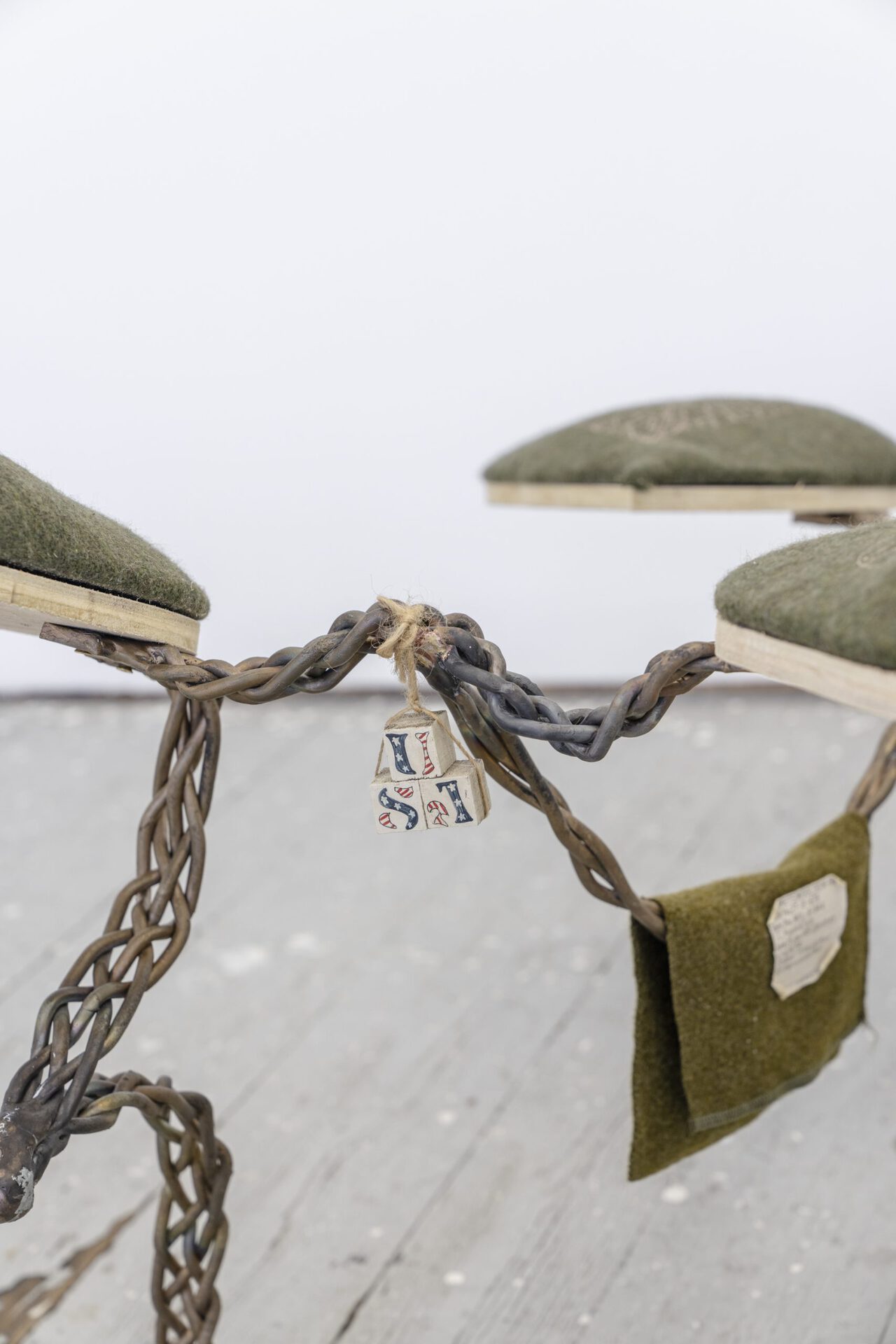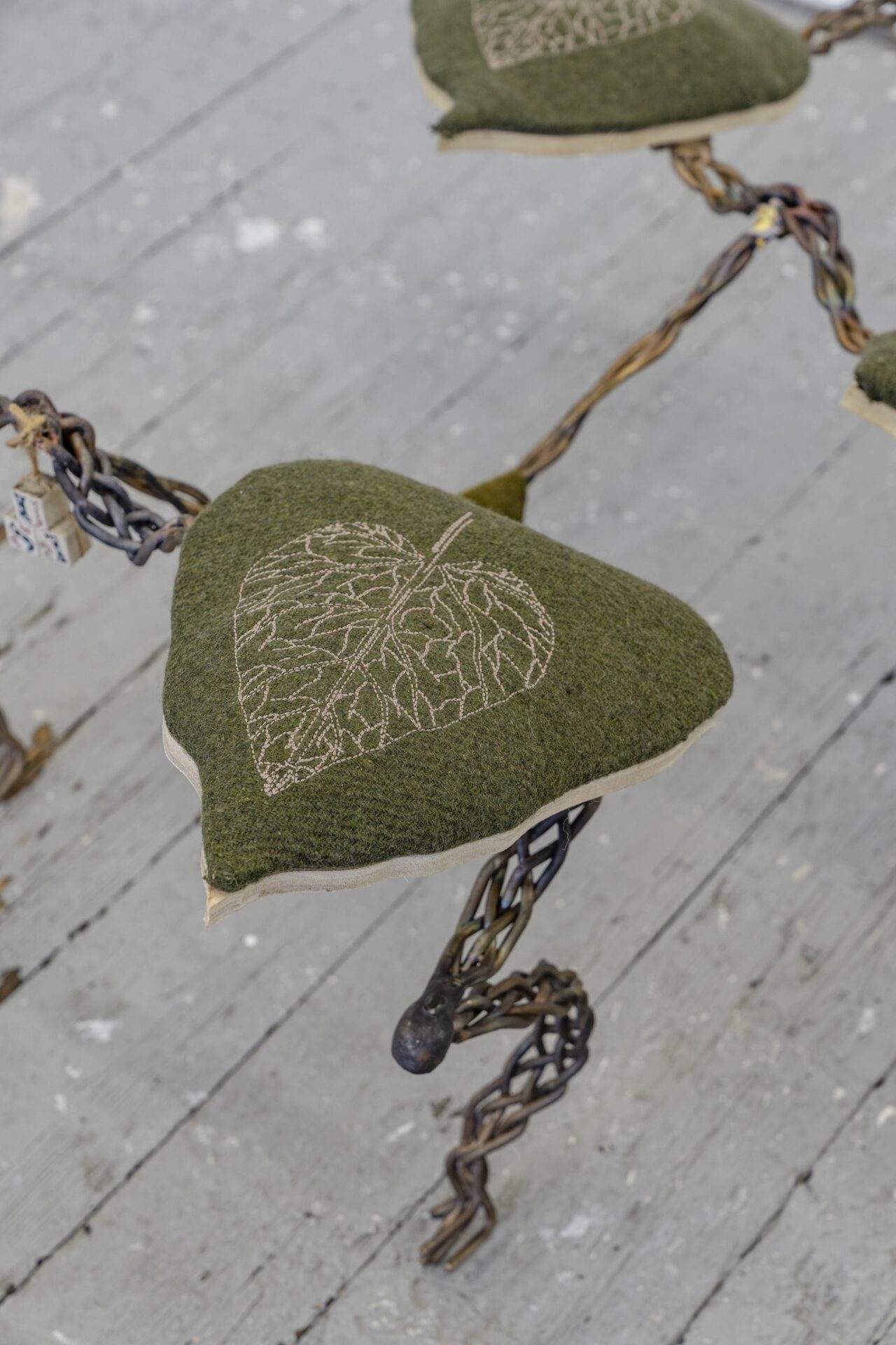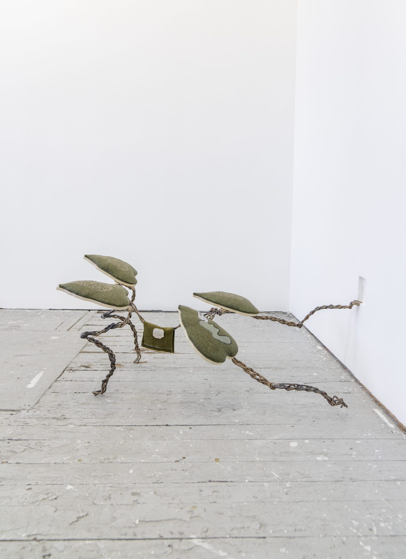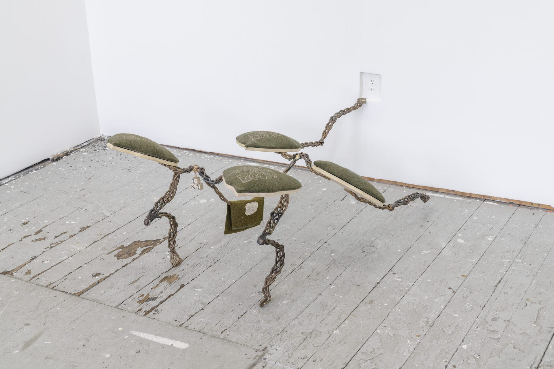 Artist Brittni Harvey’s “robot dogs” seem to have faces, and the ability to make familiar and reassuring dog movements—such as bowing and stretching toward us, moving slowly and purposefully. Their plush wool and metal body parts invite stroking, touching, and wonder. Also, uncertain smiles, and questions: Are these sculptures functional or decorative? Are they fun toys, or serious art? Will flesh and blood dogs accept these intruders into their territory? Will they adapt to them as humans do? Will we all recognize and affirm this new “machine in the art garden” as one of us? We wonder: “Do robot dogs call for robot human owners?” “Will they invade and capture and captivate us, just as real dogs have?”