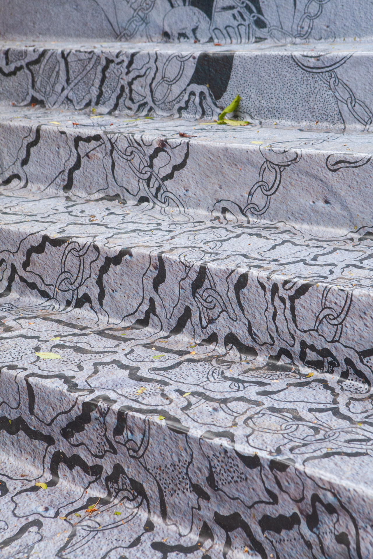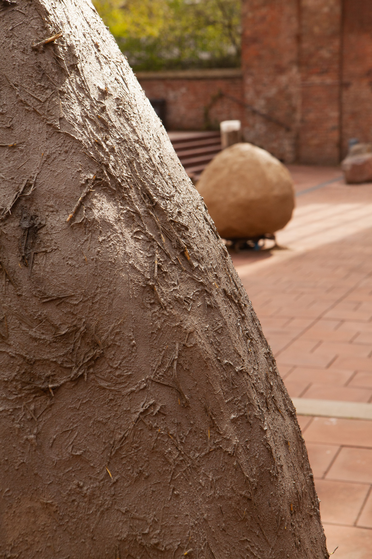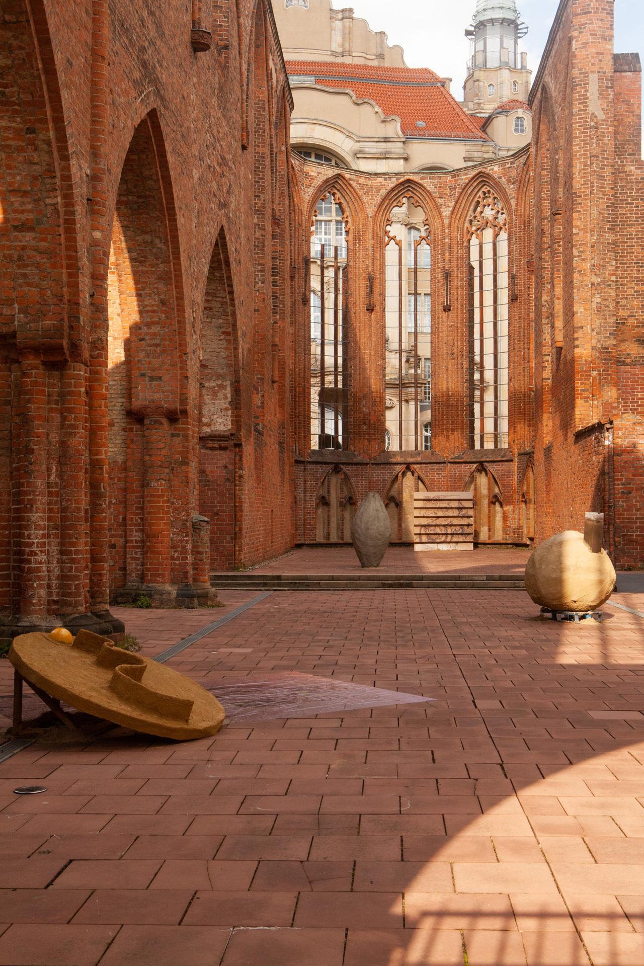 Much like an astrolabe, the exhibition explores three worlds: our physical reality,the domain of the internet and its underworld - thedark web. Built byhard-working ants and populated by avatars with visions of violence and fetish, this cosmos formed from mud and literally stamped out of the ground of the monastery ruins is forever on the brink of collapse.Text