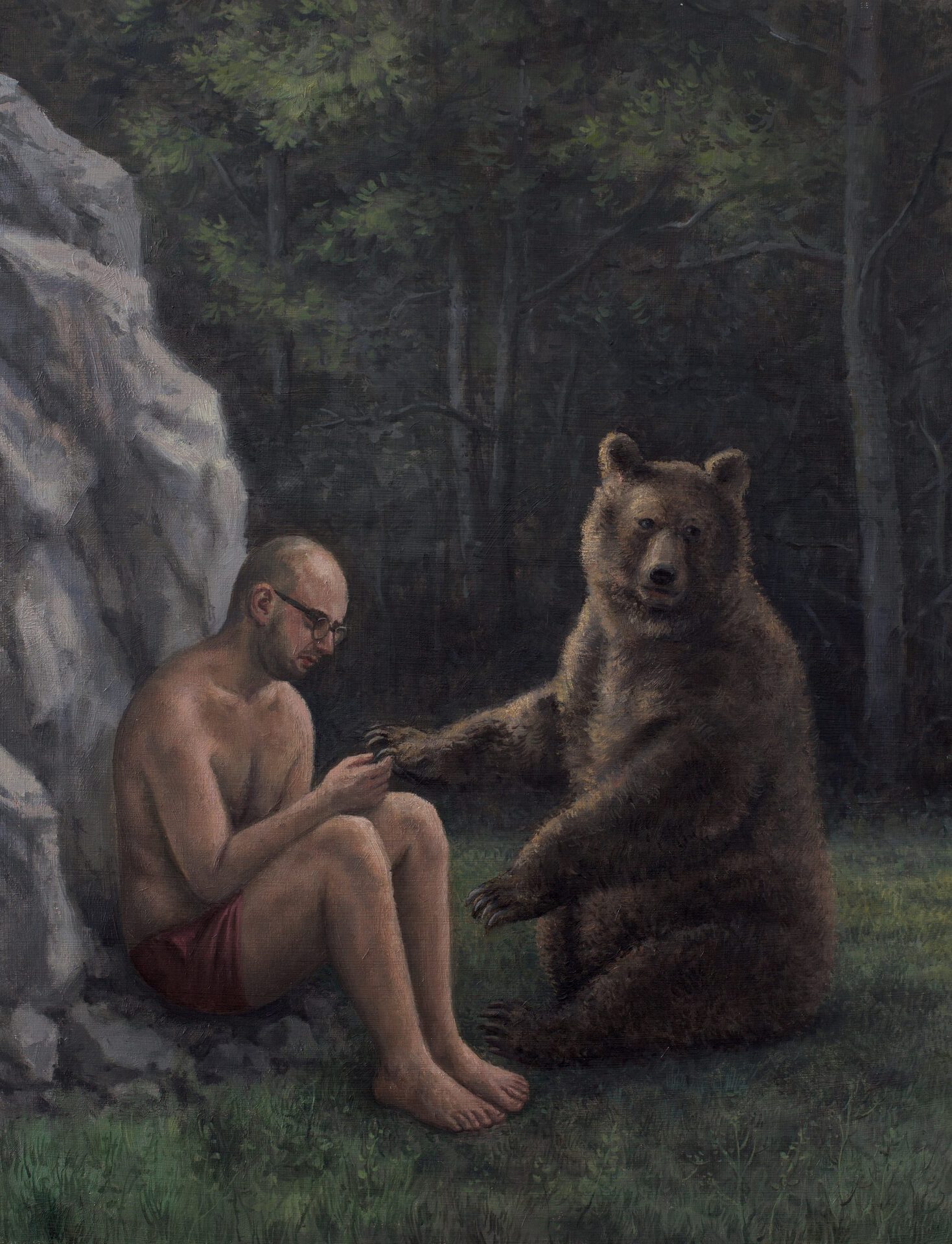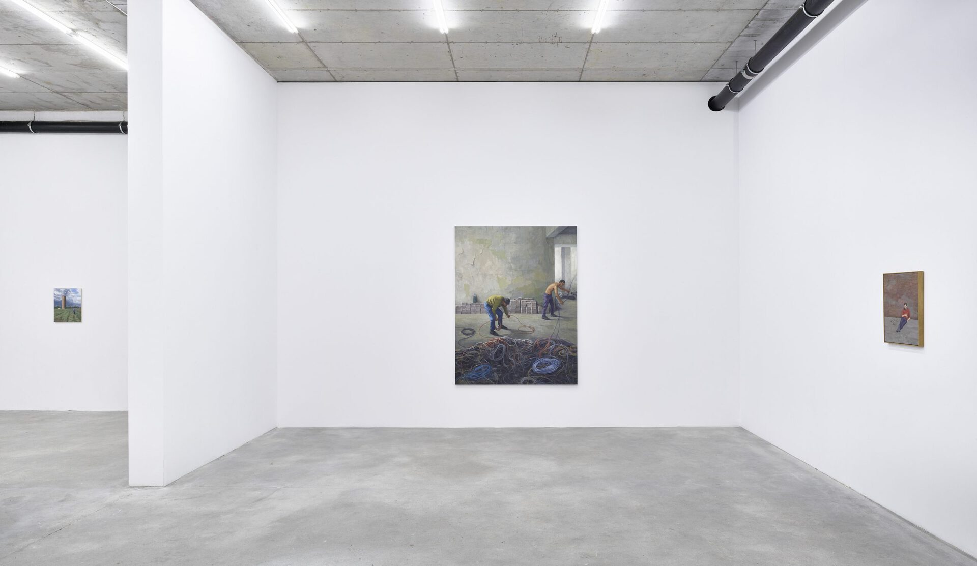 The rhythm of life of the figures in Şerban Savu’s paintings is marked by work and rest, though it does sometimes happen that their lives are devoid of structure. Then the gap is filled by waiting for a meeting that never arrives. Or it could be that the (almost exclusively male) figures in the works by this Romanian artist have given up waiting for anything. They have closed up in their internal problems, they are indifferent to politics or the ongoing modernization of the country that has caused their misery. If they do work, it is without conviction, not of their own initiative, they are hired by foreign capital. They fall asleep in the sun. The weather is generally fine, like in paintings of the Quattrocento, and if the sky is clouded over, it is to reflect a mental state, emotions, melancholy, or regret. Over the past few years, Şerban has departed from realism, conceived both as a reflection of reality and as social relations. His new pictures are more uncanny and filled with references to art history. They are filled with unusual encounters between fascinating people and creatures. There is a bear with a thorn in its paw, fraternal horses, and trusting sparrows. Ancient and Christian traditions, recollections of the Carpathian inhabitants from the times of Nicolae Ceaușescu, experiences of labour immigrants, and the incomprehension of our anxieties and needs we all share in Central Europe all merge to make up the mythology of this land lost on the outskirts of the Roman Empire. Şerban Savu is one of the most important Romanian artists born in the 1970s. His works belong to the collection of the Museum of Modern Art in Warsaw. This is his third exhibition for our gallery.Text