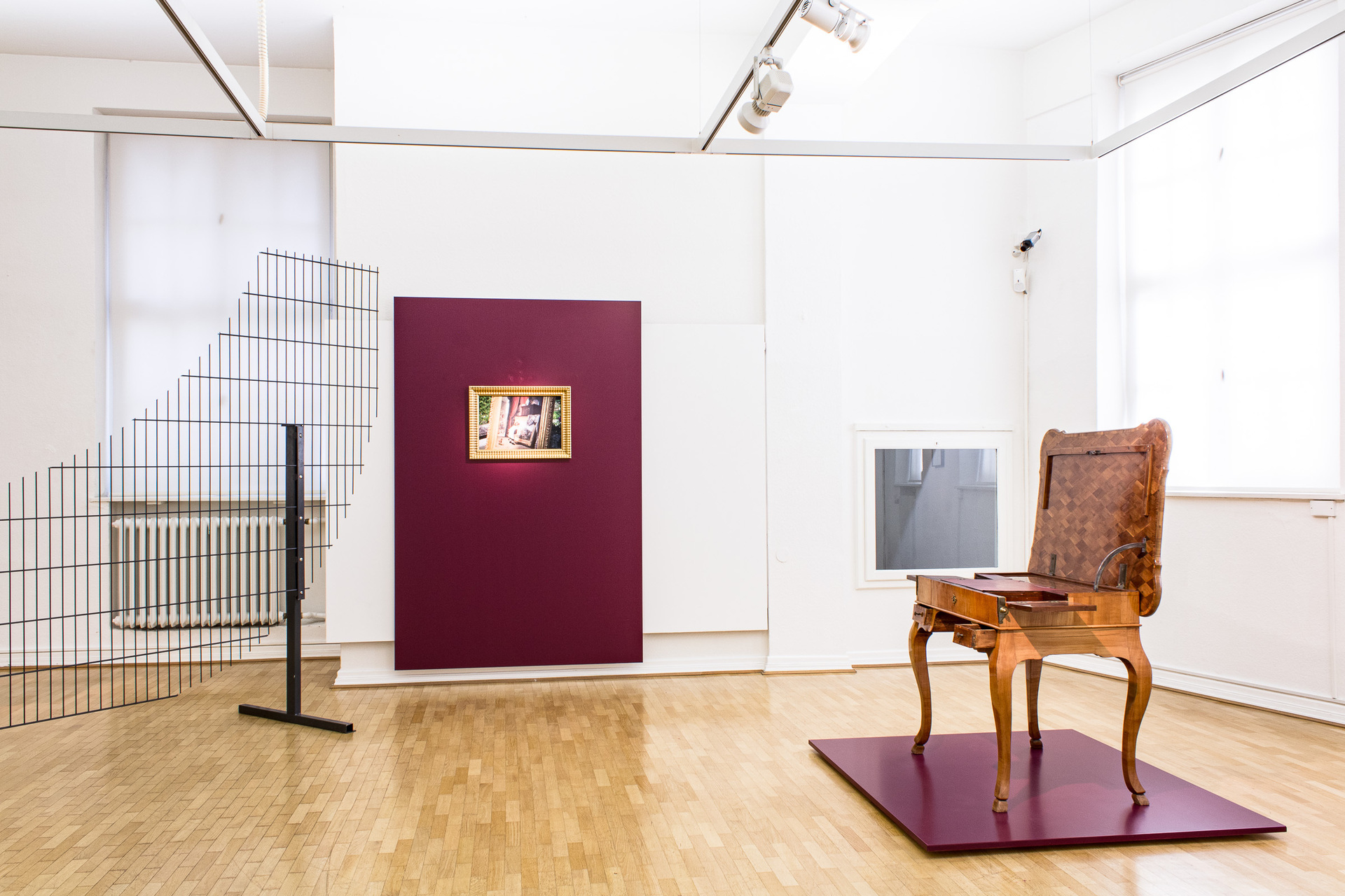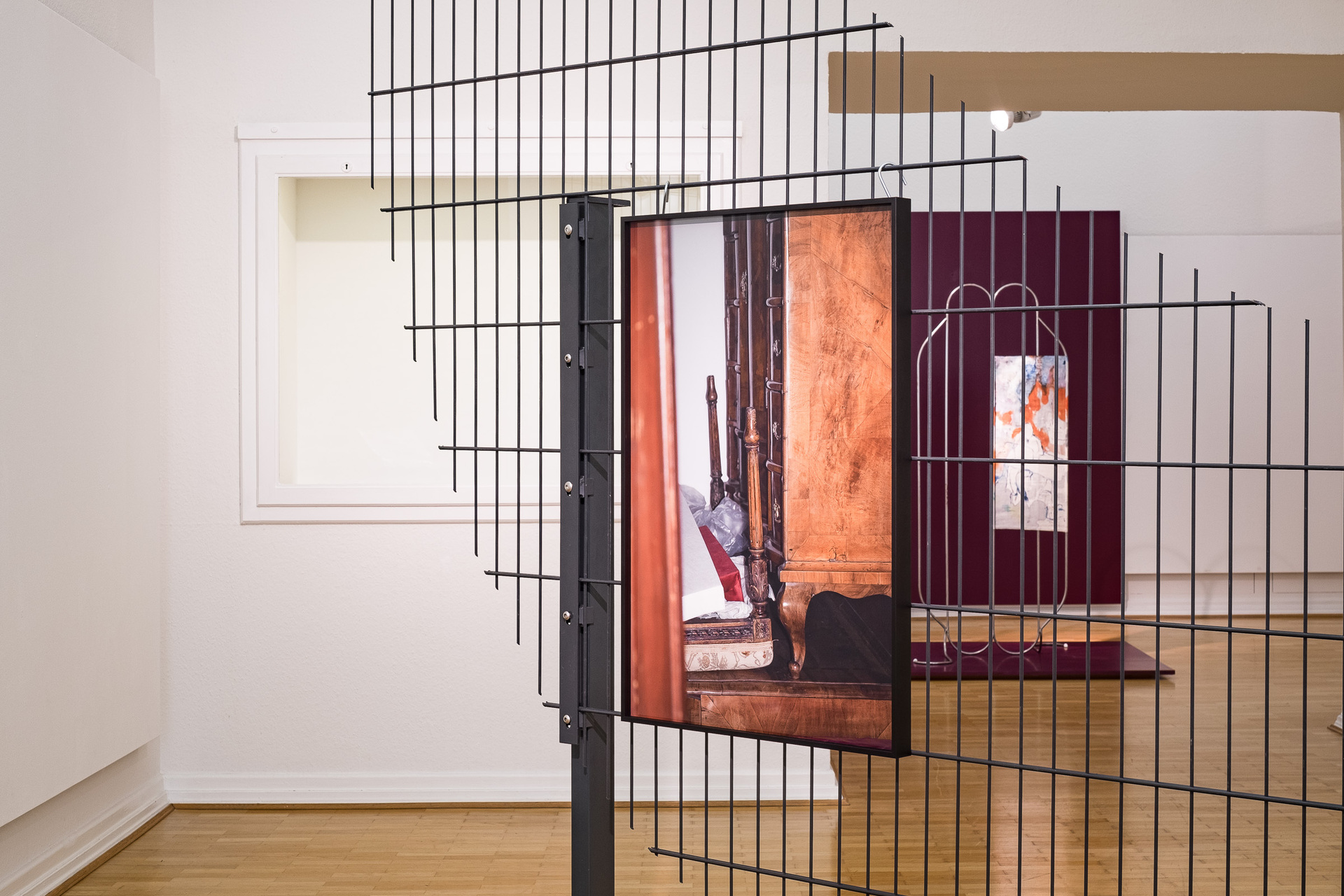 VERWANDLUNGSMÖBEL is an interplay of the three artists Elmar Hermann, Ani Schulze, Christoph Westermeier, who deal with Roentgen's design impulse from the 18th century in the 21st century. In addition to a piece of transforming furniture by Roentgen, the exhibition also presents archive materials by Roentgen researcher Dietrich Fabians to the public for the first time. Further objects from the depot, such as a picture clock from the 19th century and a chandelier from the historicist period, are integrated into the installation. Hermann, Schulze and Westermeier have juxtaposed these objects and materials with their own works, which thematically expand the mind game of the transformation furniture: Elmar Hermann uses commercially available metal fence elements, such as those used in gardens or urban spaces, to create sculptures that derive their form from the human diaphragm. In the exhibition, these function as room dividers and partly as displays of the other works. Ani Schulze navigates the idea of mobility and narration using the inlays on Roentgen's furniture to create self-portraits. These thematise digital working conditions, temporality and mythology. Christoph Westermeier has taken a photographic look at the museum's depot and collection history and shows his works as installations in the exhibition. For example, they hang on Hermann's sculptures or stand on chair elements.