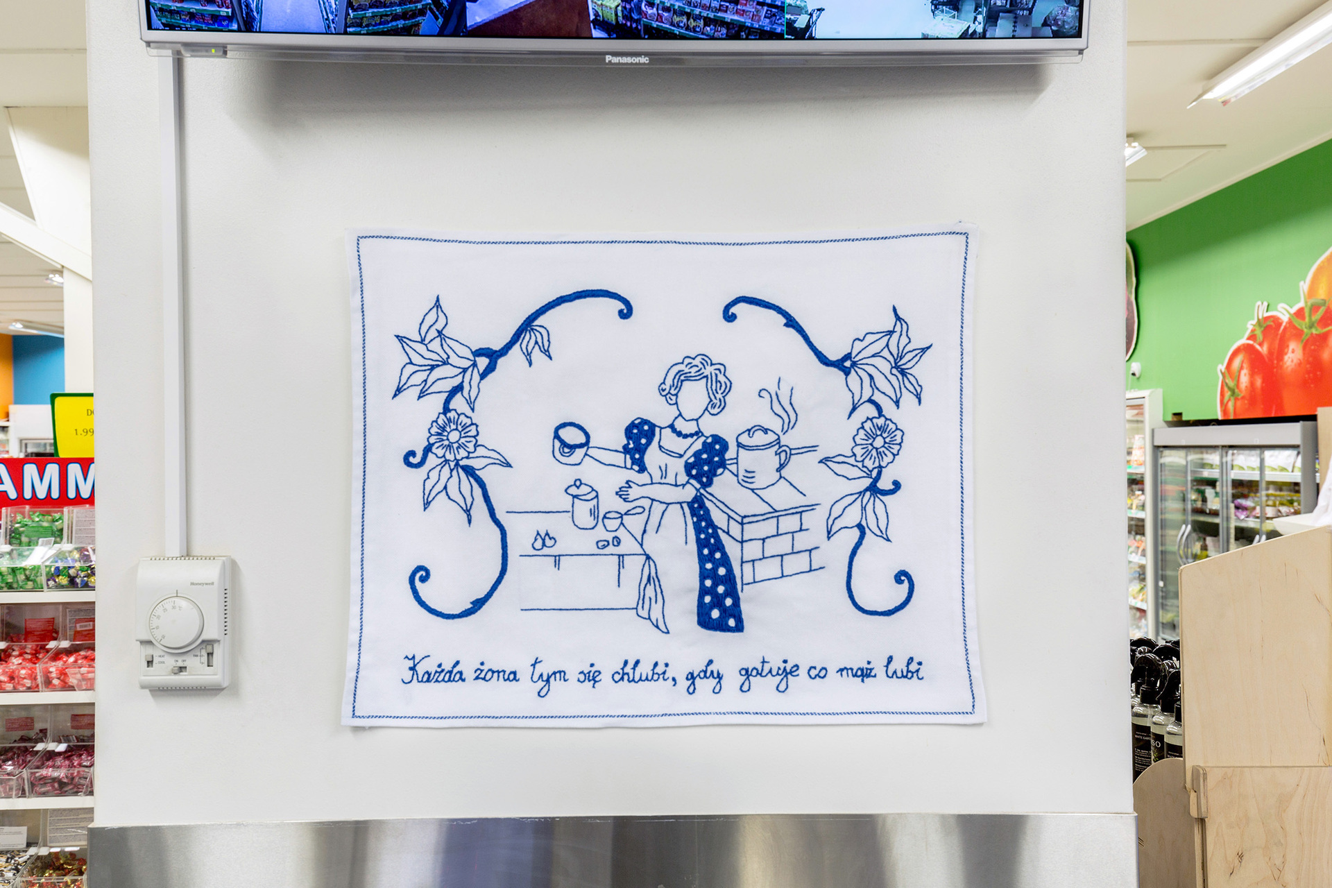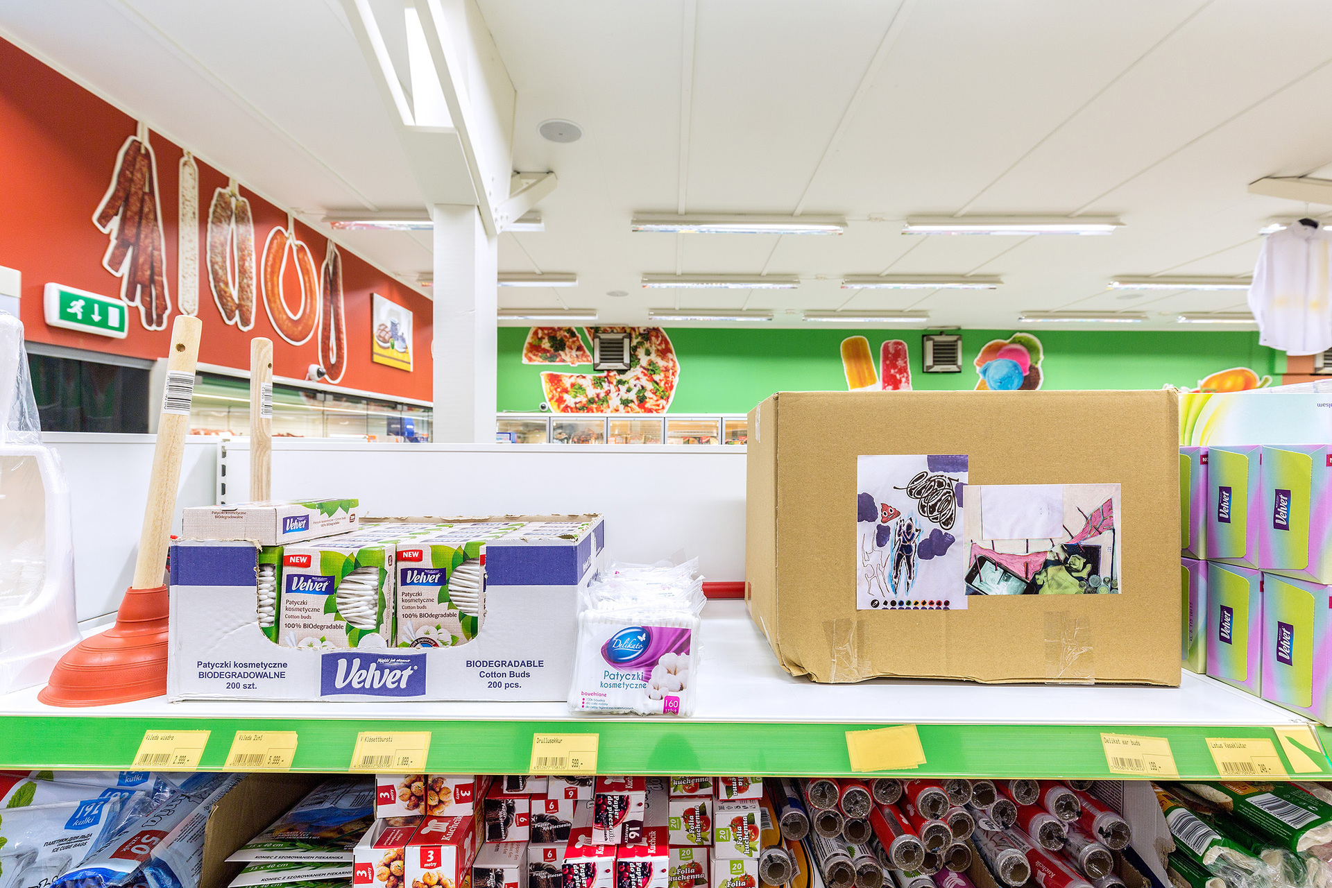 Flaviu Cacoveanu, Lukas Bury, Vitalii Shupliak and Weronika Balcerak work with different media and take on diverse angles on the theme of migration and globalism, depicting the complexity of the themes and creating a dynamic journey for visitors and customers of the supermarket.