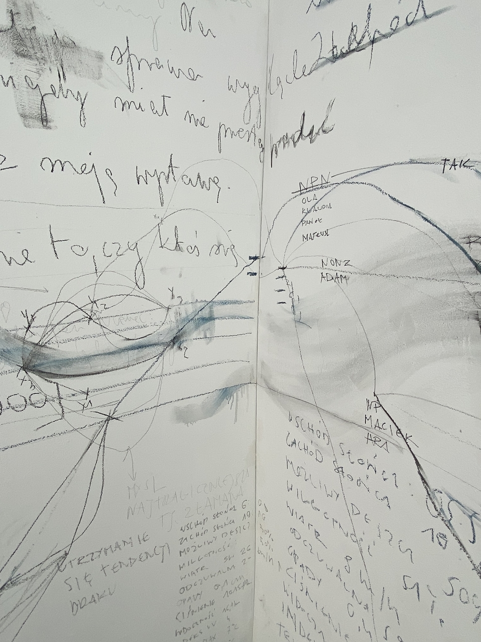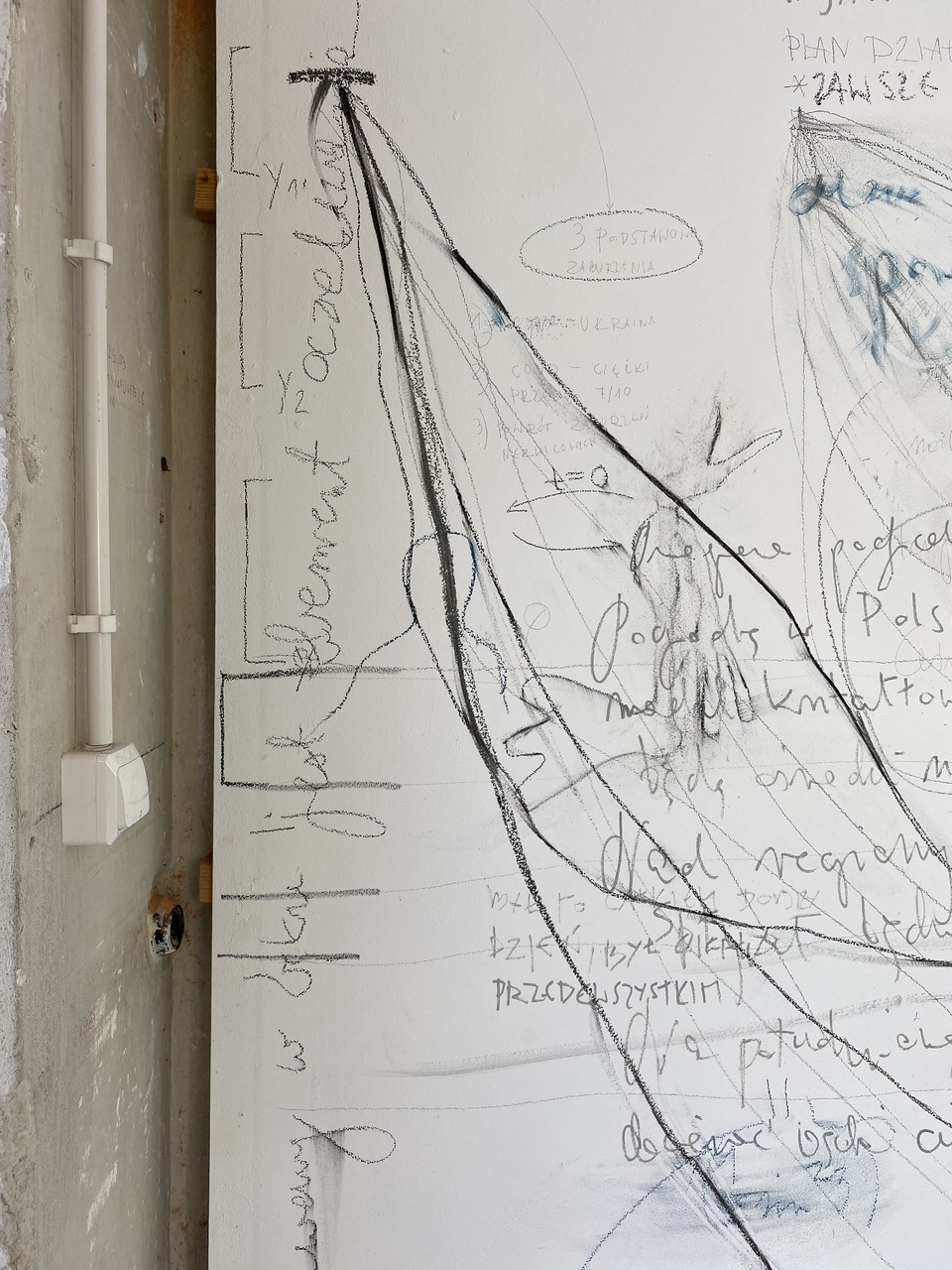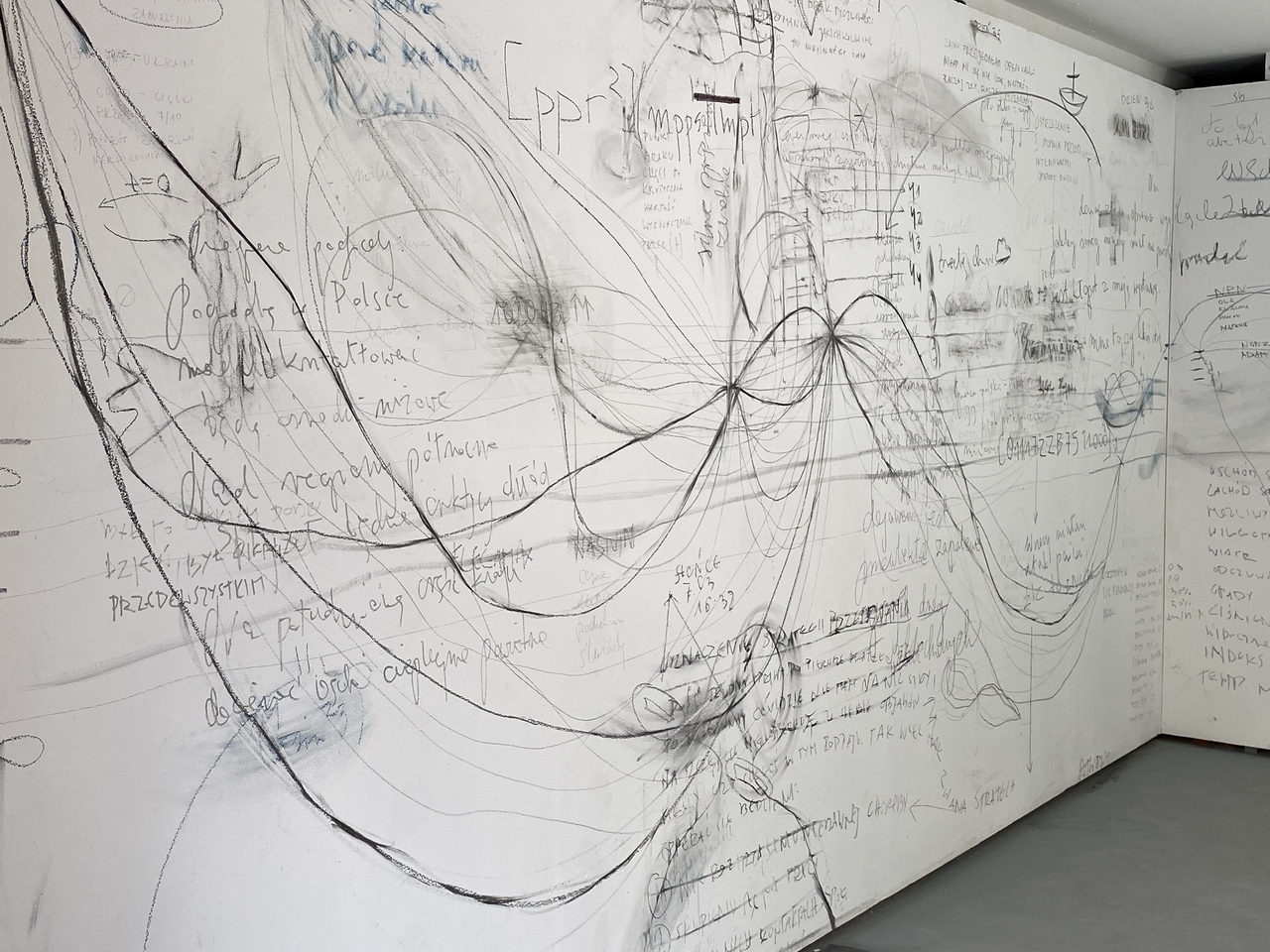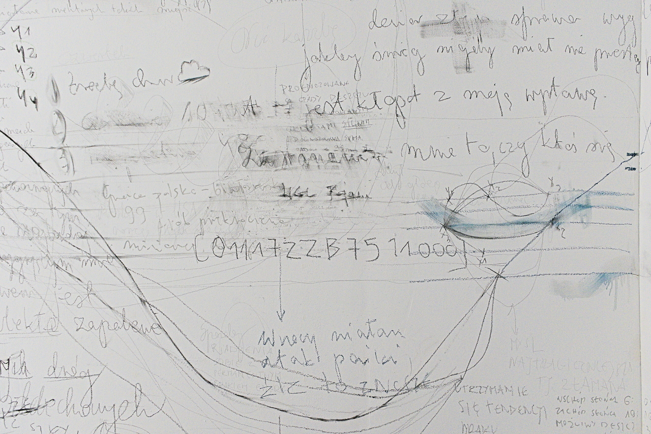 The components of FEEDBACK occur in two parts: a series of wall drawings and a sculpture with human breast milk.