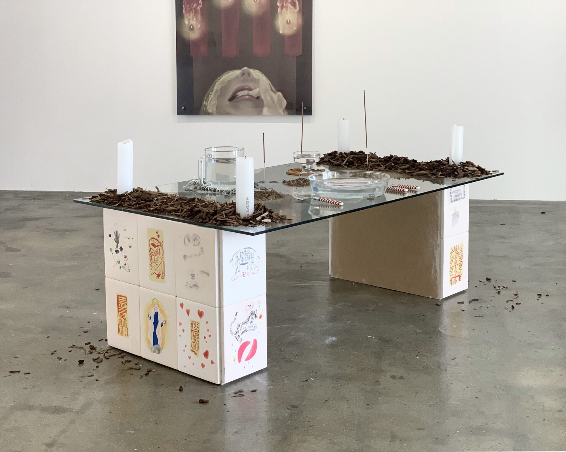 She buys the stability of being in god by consuming religious products. She also said when she feels a hole in her heart, the desire for deity-or spiritual products-may be a 'final touch' that she sends to God or pass to her from god. Would it be our self-portrait that wanting stability or confidence in the face of anxiety? Do you also desire this touch?