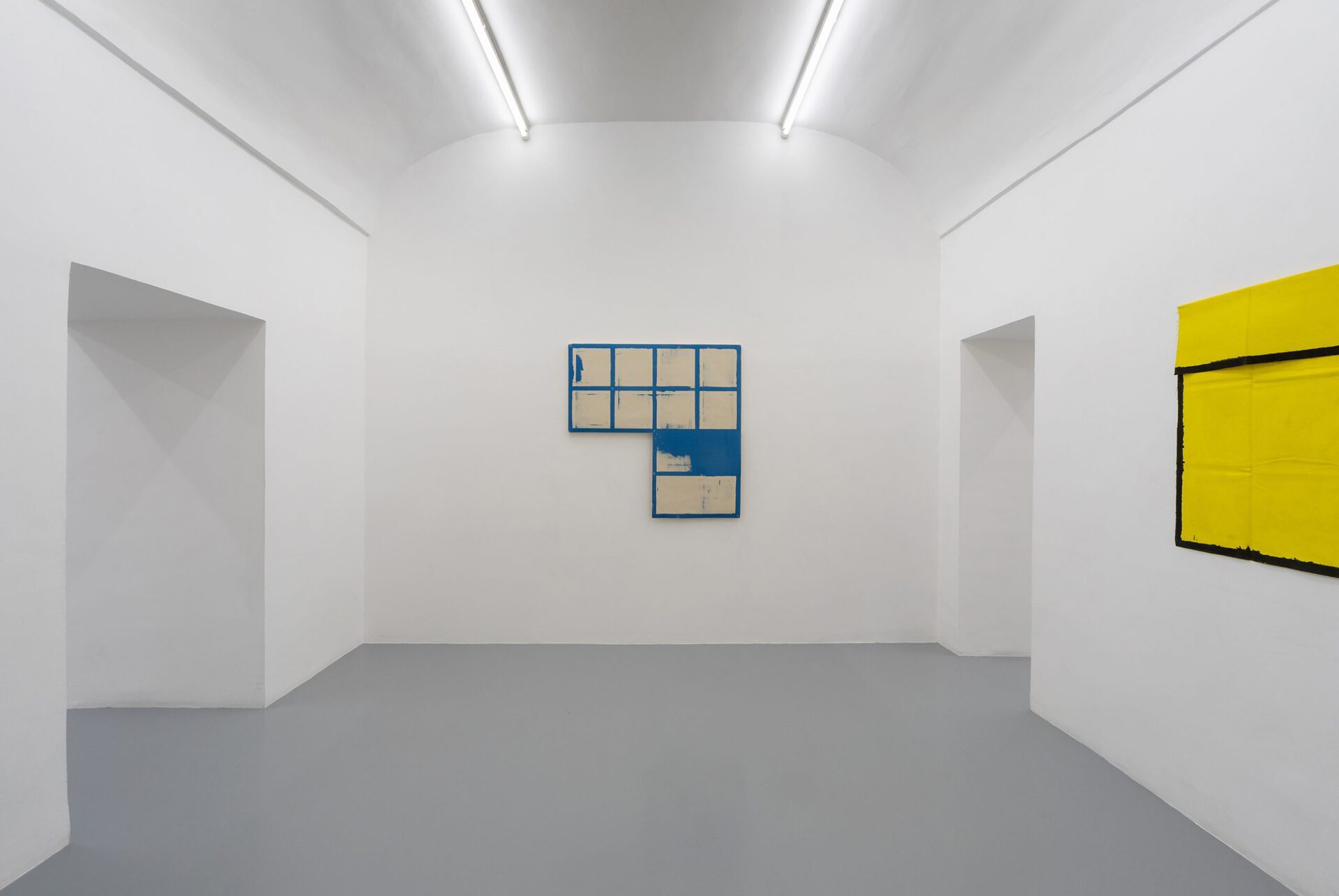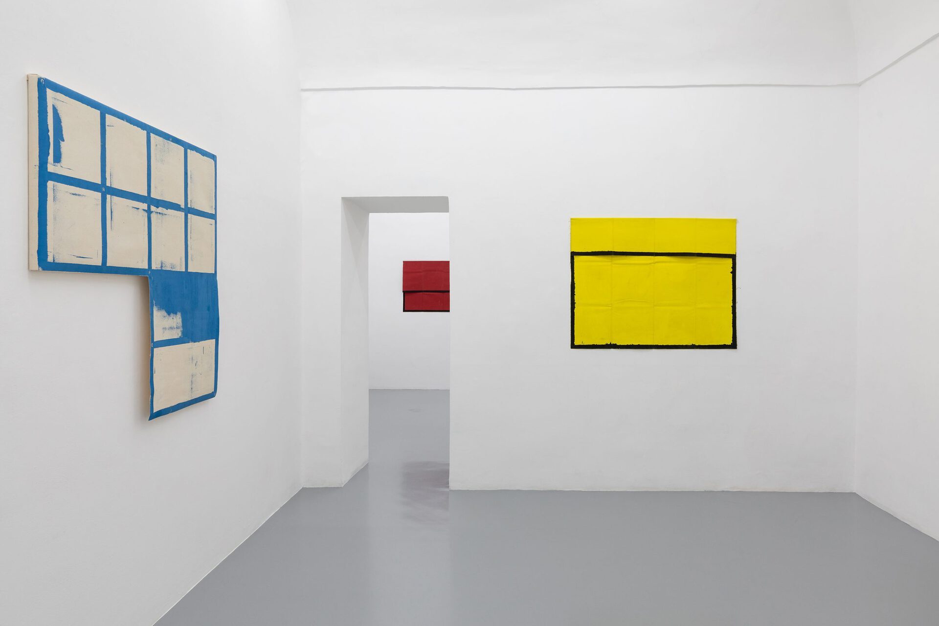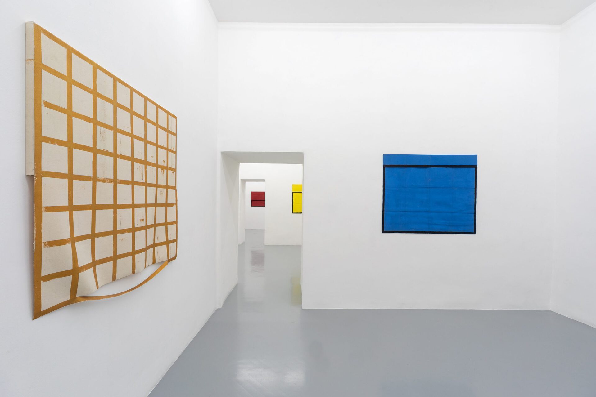 Through three iconic works of the 70s and through others of more recent creation, Tra stanze, tre mesi (Three rooms, three months) insists on the grid system, although now with a completely different perspective. His desecrated grid, now left wide open, seems to originate from a careful study of Piet Mondrian’s compositions, from which he ignores the search for a formal and spiritual perfect equilibrium. In this case the artist’s attention focuses instead on the function of the colors in Mondrian’s work and on the inevitable and irrational fascination that they create on the spectator.