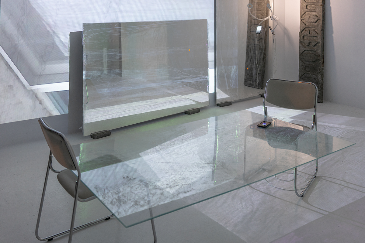 When you think about two geographical places does it have to be here or there? Does it have to be duality in order for there to be space in between? Gaps of the In Between is an occurrence by the artist collective DIS-PLAY with Carlotta Drinkewitz, Delia Jürgens, Tarik Kentouche, Sarafina McLeod and Diego Rios Salvador. DIS-PLAY is a format that, in exchange with international artists, removes the boundaries between virtual and physical space as well as the separation between exhibition practice, curation, archiving and the creation of art. It understands the emergence of art and culture as collective memory and also addresses the dissolution of authorship.Text