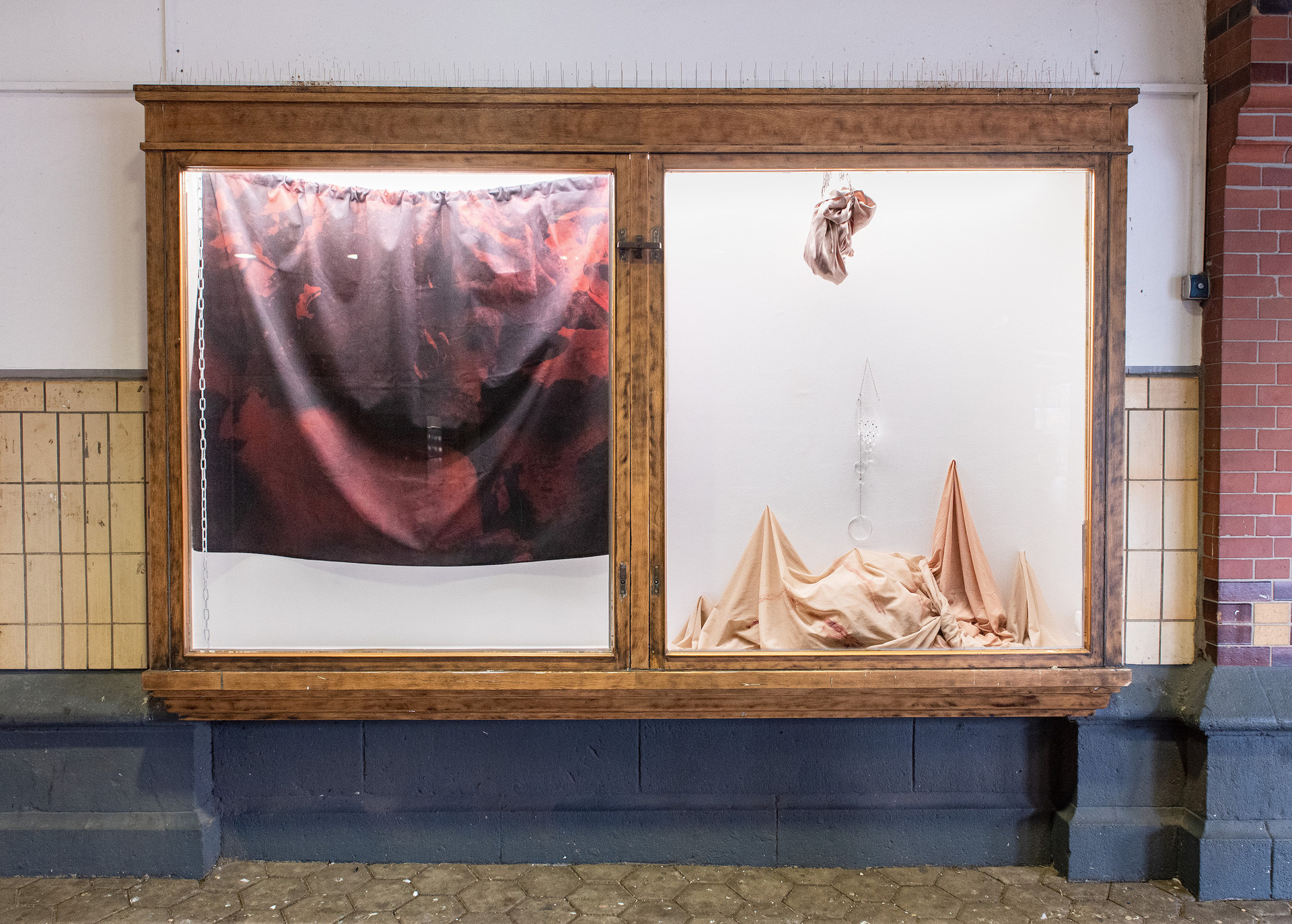 The exhibition by Rosh Zeeba is the third in a series curated by Cake&Cash, displayed in the showcases of the Kunstverein Harburger Bahnhof. The title of their work Opulent Silence describes an important constant for Zeeba's practice: bringing together what primarily does not belong together. In the two-fold video work, tiny figures based on Persian miniatures perform recurring sequences of movements. The choreographies are interwoven in continuous video loops to form mantras whose meanings remain open.