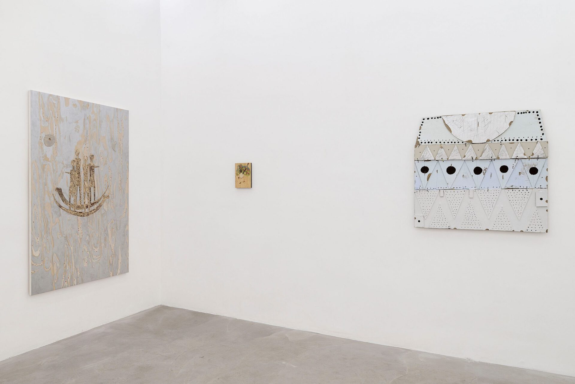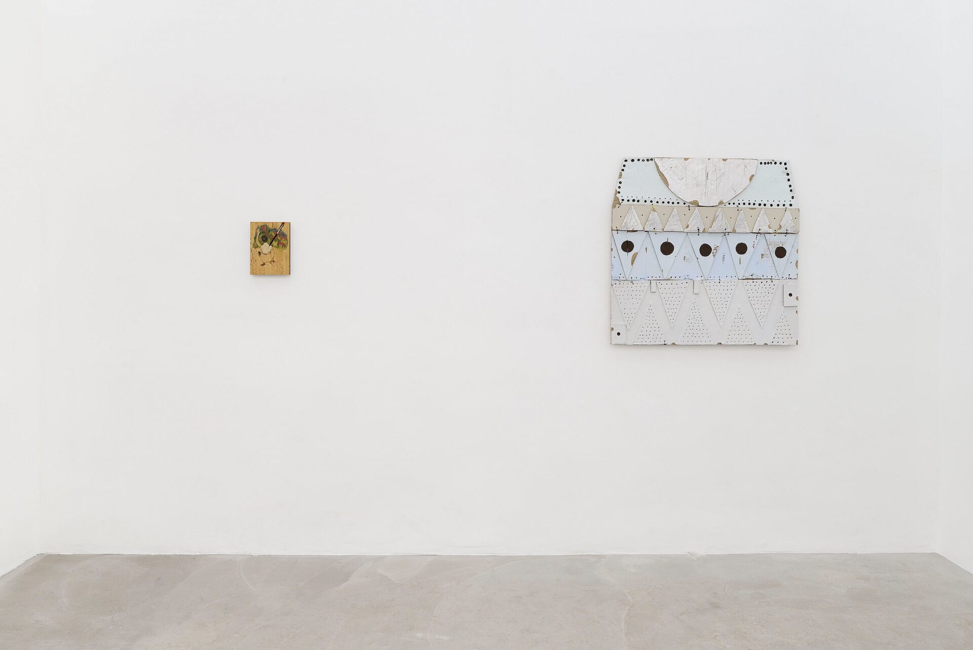 Cardboard has many layers. Not only can one paint on it, but you can use every groove, every tear, every slit. You can build and deconstruct meanings between its layers. What makes the first layer complicated is that we don't know what is underneath, but holes, tears and slits are ways to access the layer underneath. Shadi Yasrebi transfers the essence of Iranian-Islamic architecture, made of domes and arches, under which you can feel safe, onto her cardboard sculptures. The carved shapes and colour of Cold Trip and Orange Afternoon, 2022, brings back to those architectural forms. Gaining access to one's deepest and most private layers means that you have gained access to one's personal space or 'architecture'.