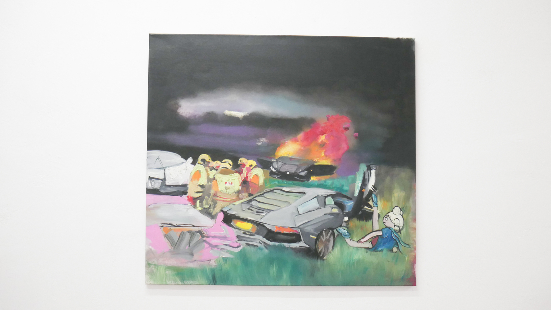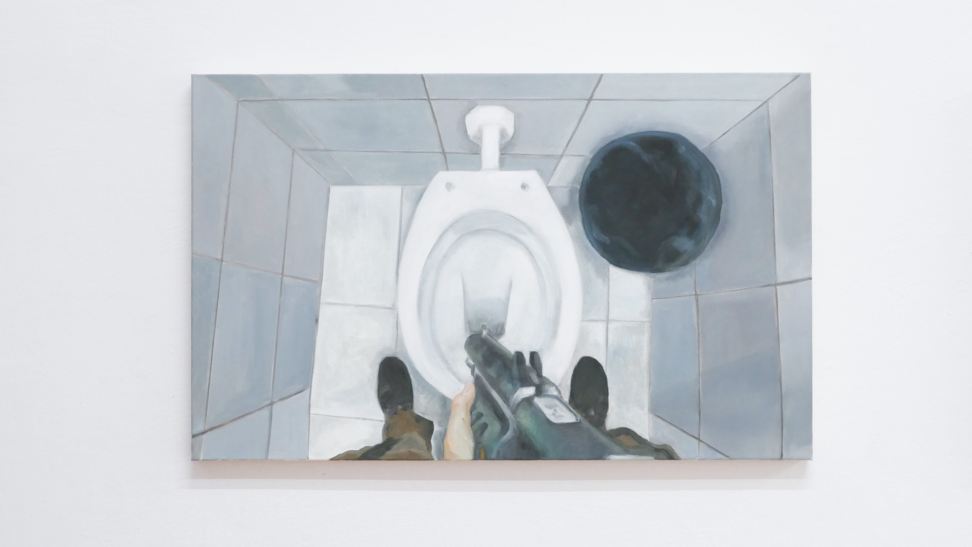 The surroundings, personal truths, the political senses, art world functions and confrontations with them — are some of Flaviu Cacoveanu’s approaches into his artistic practice, which he develops carefully — in a form of simple symbols or words, causing no harm but soft awareness. As I approach Simone Fillippo’s paintings I feel a higher ambiguous effect. Maybe this near-continual uncertainty we encounter maintain a thick atmosphere of surprise, desire and mourning. At least we can embrace escapism in video-gaming — as it provides peculiar environmental experience and differing senses of time.